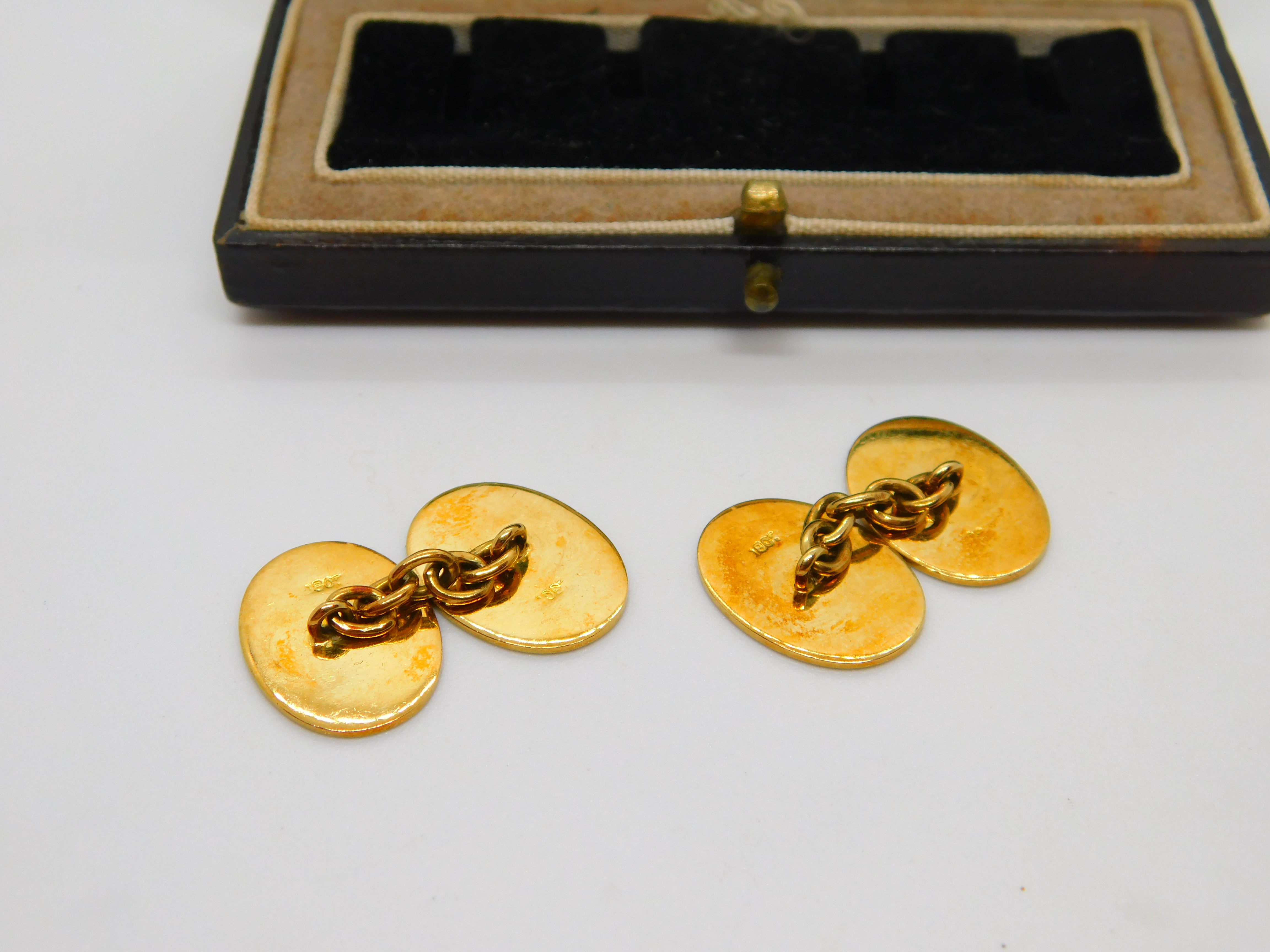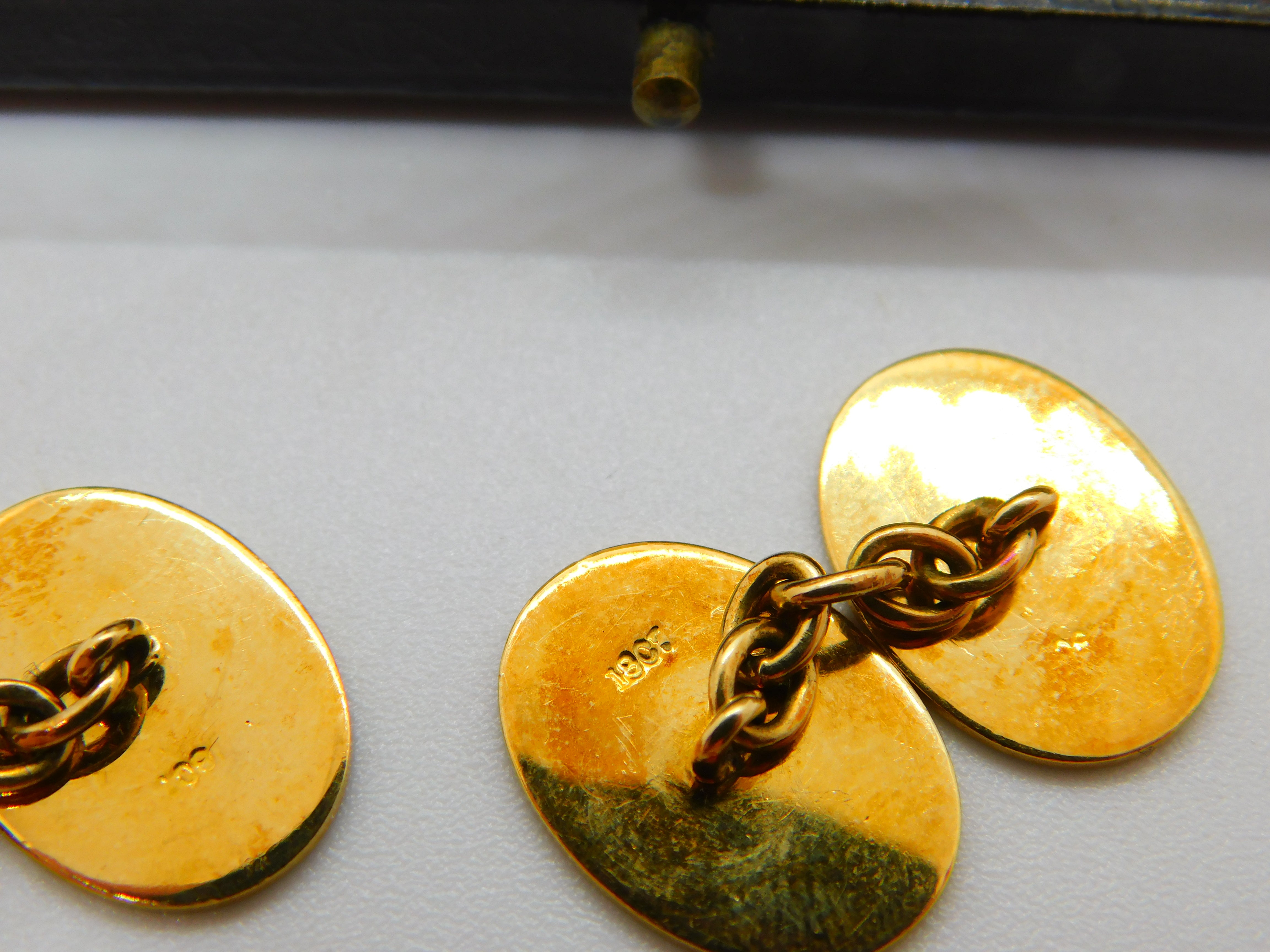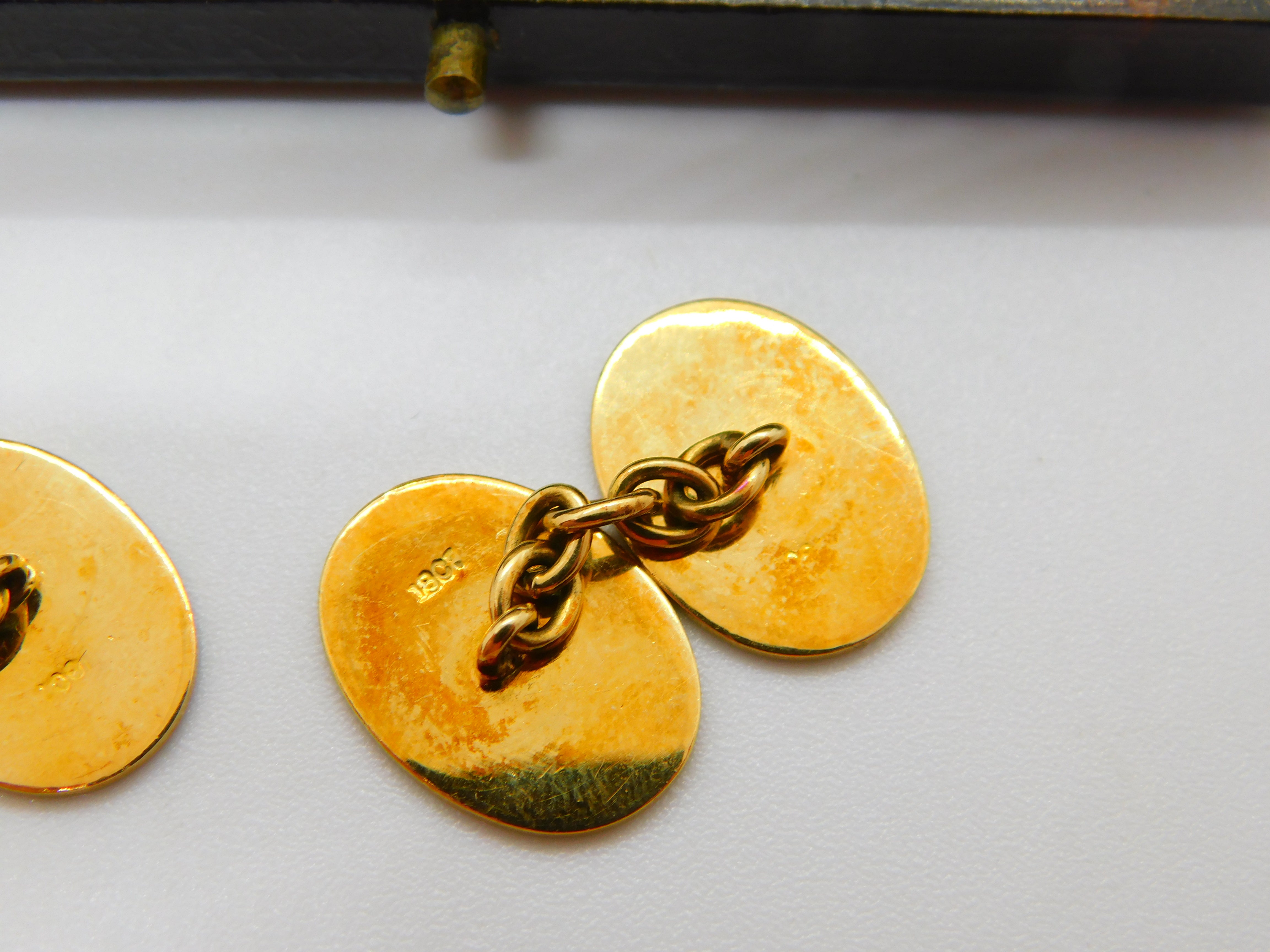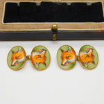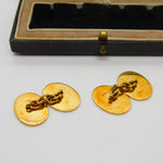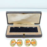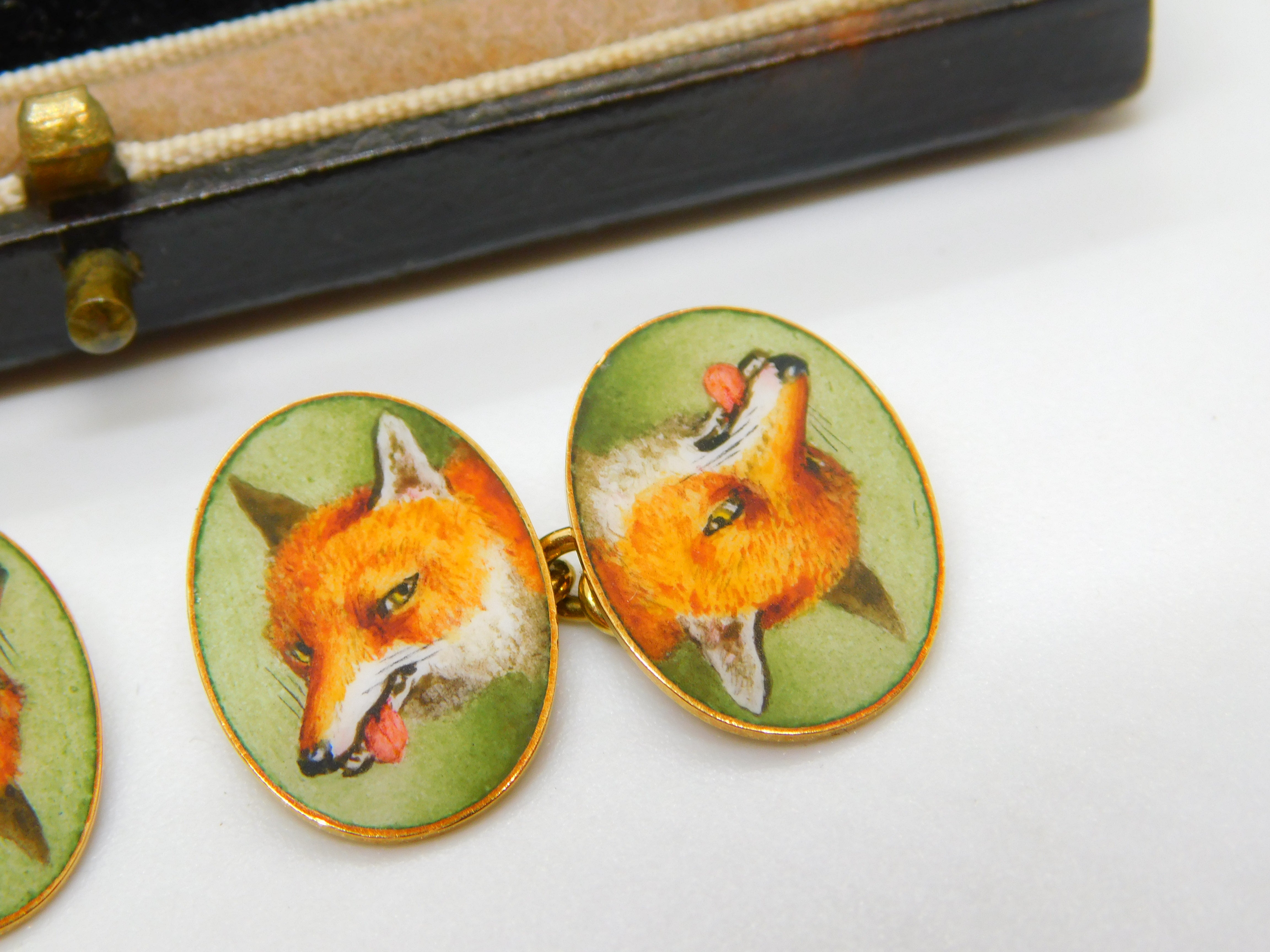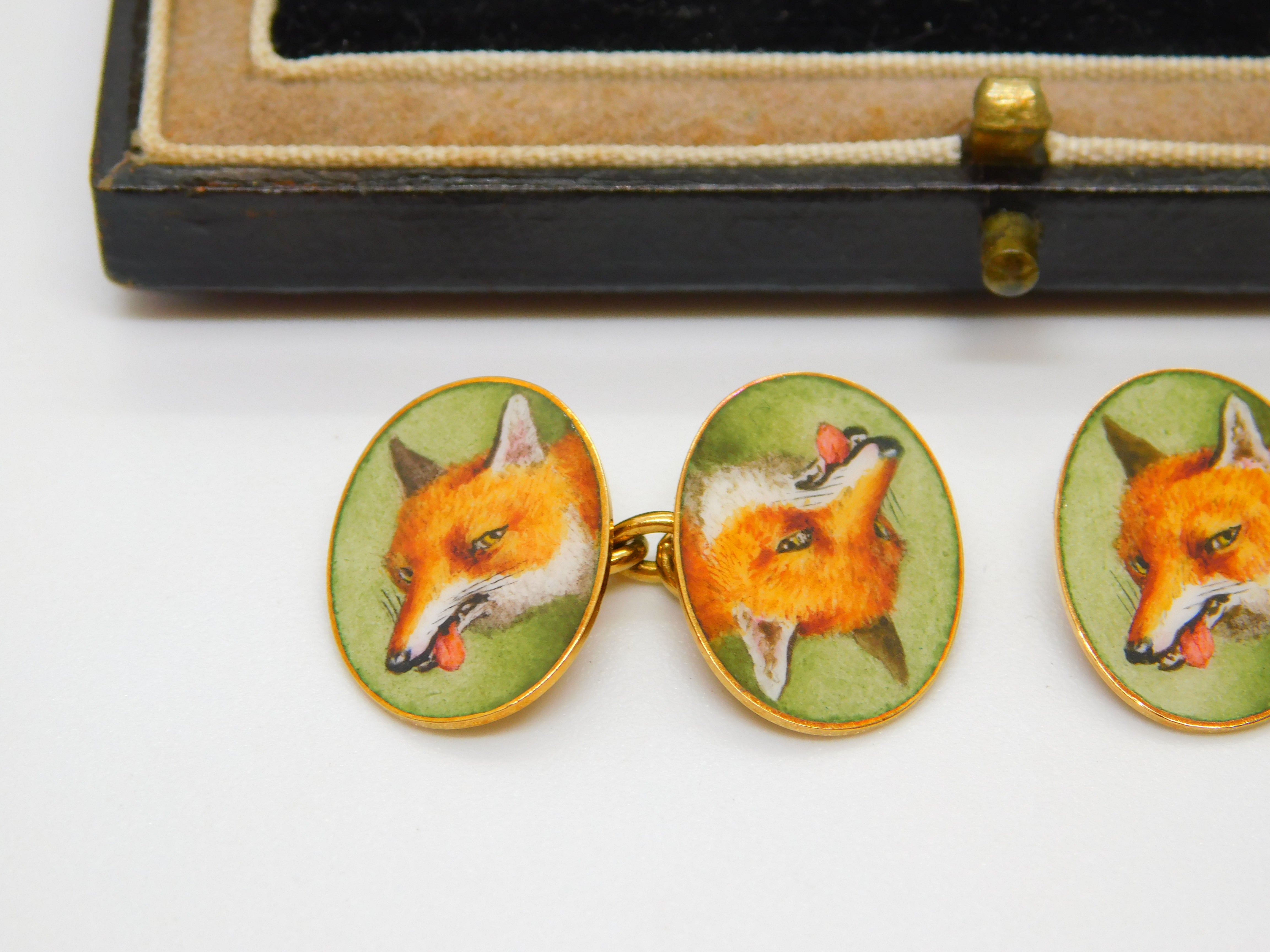 Victorian Boxed 18ct Yellow Gold & Enamel Fox Mask Gents Cufflinks Antique c1880