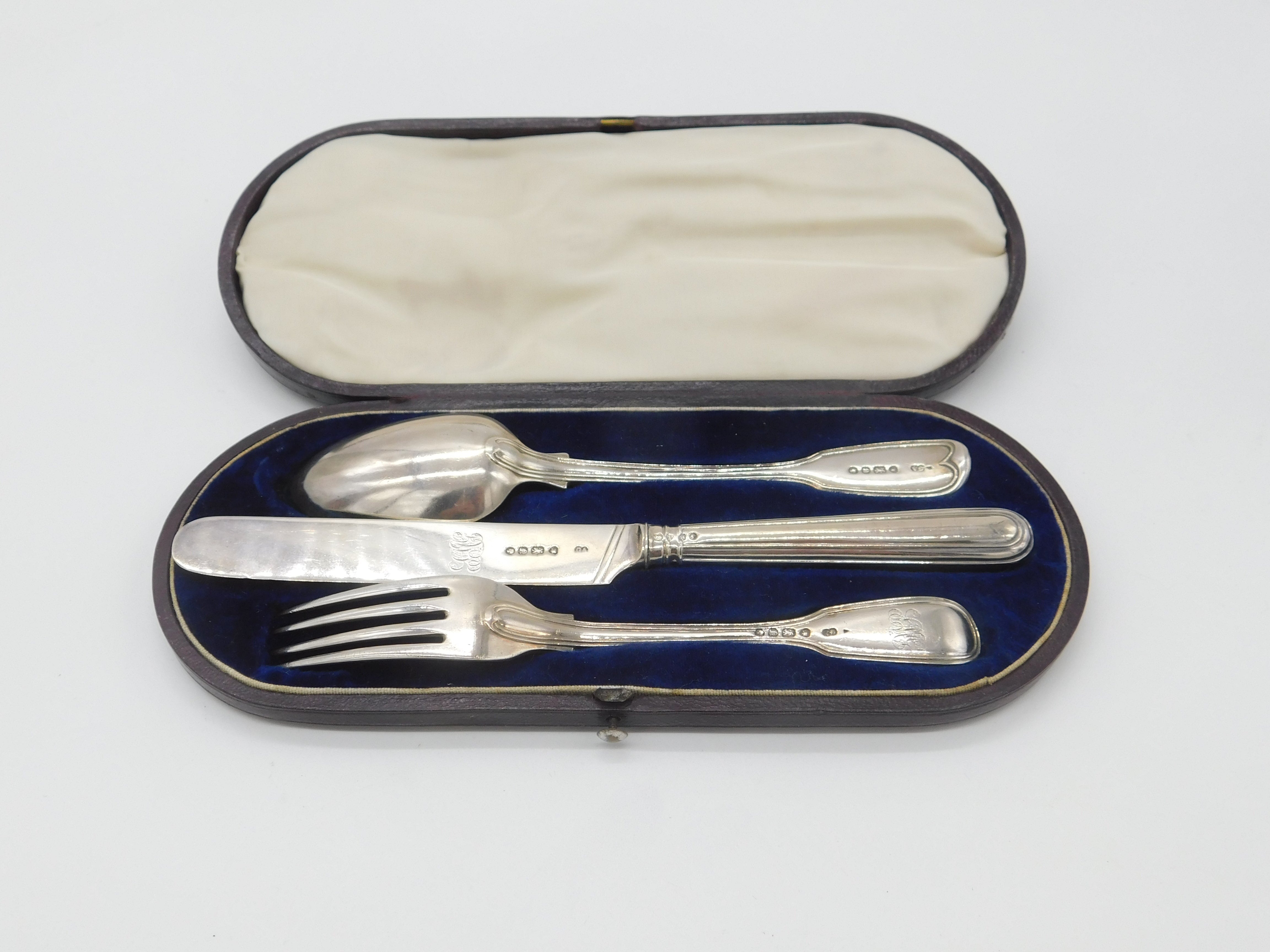 Victorian Boxed Sterling Silver Christening Cutlery Set Antique 1848 London