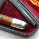 Victorian Boxed Wooden Sterling Silver Mounted Pipe Set 1890 London Antique