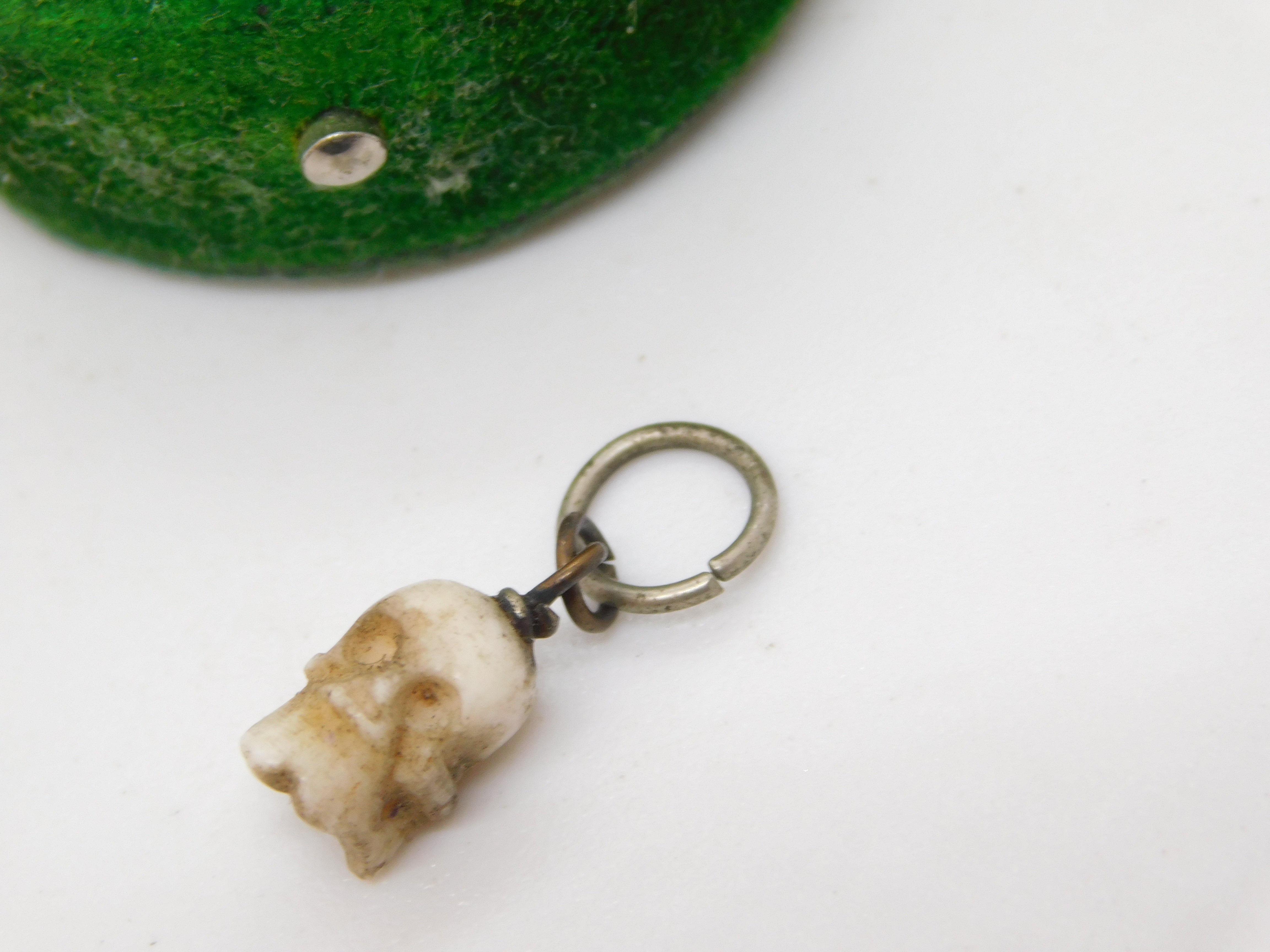 Victorian Carved Glass Small Memento Mori Skull Mourning Charm Antique c1860