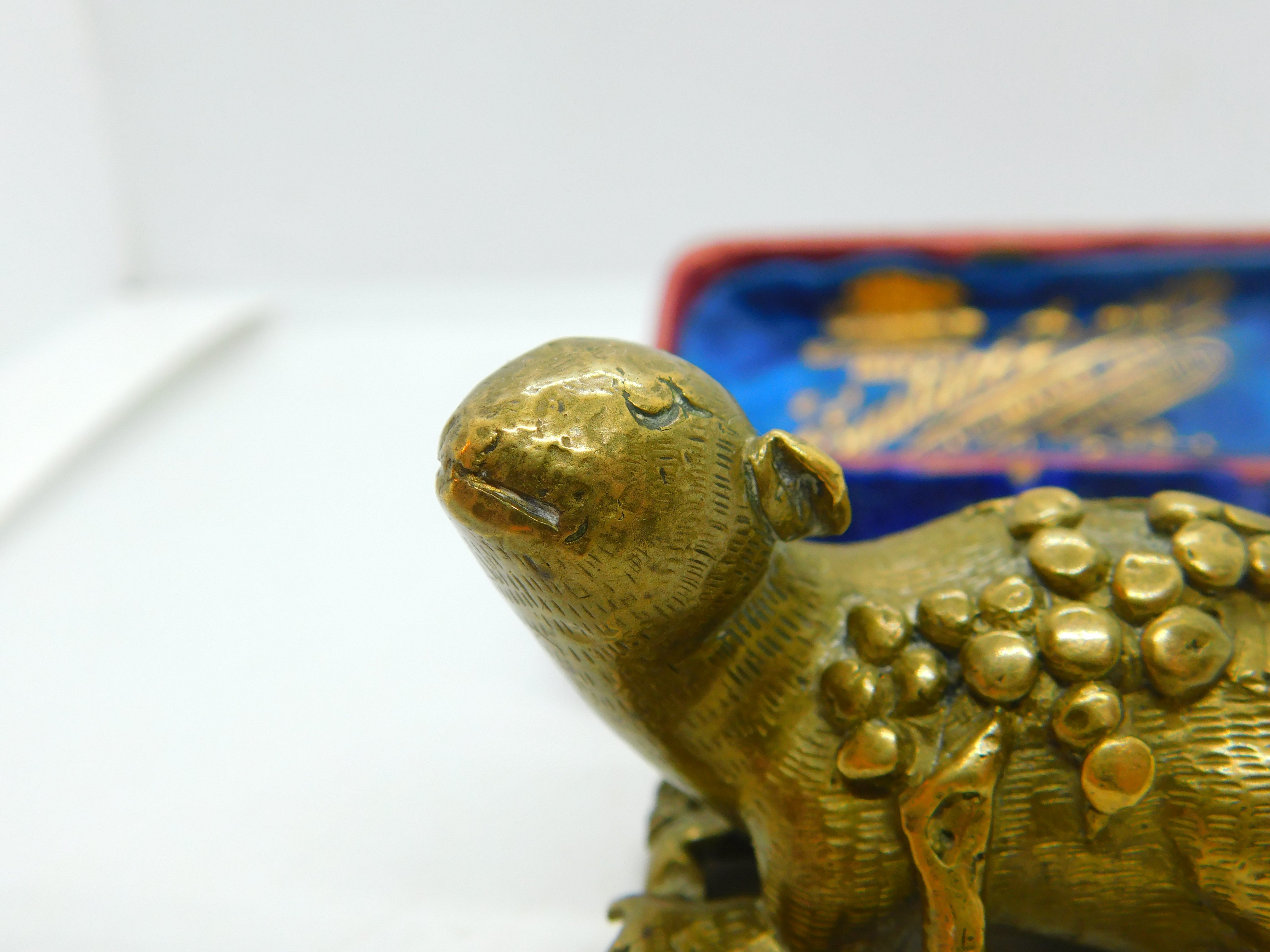 Victorian Chinese Cast Brass Otter Sculpture With Prunus Antique c1860