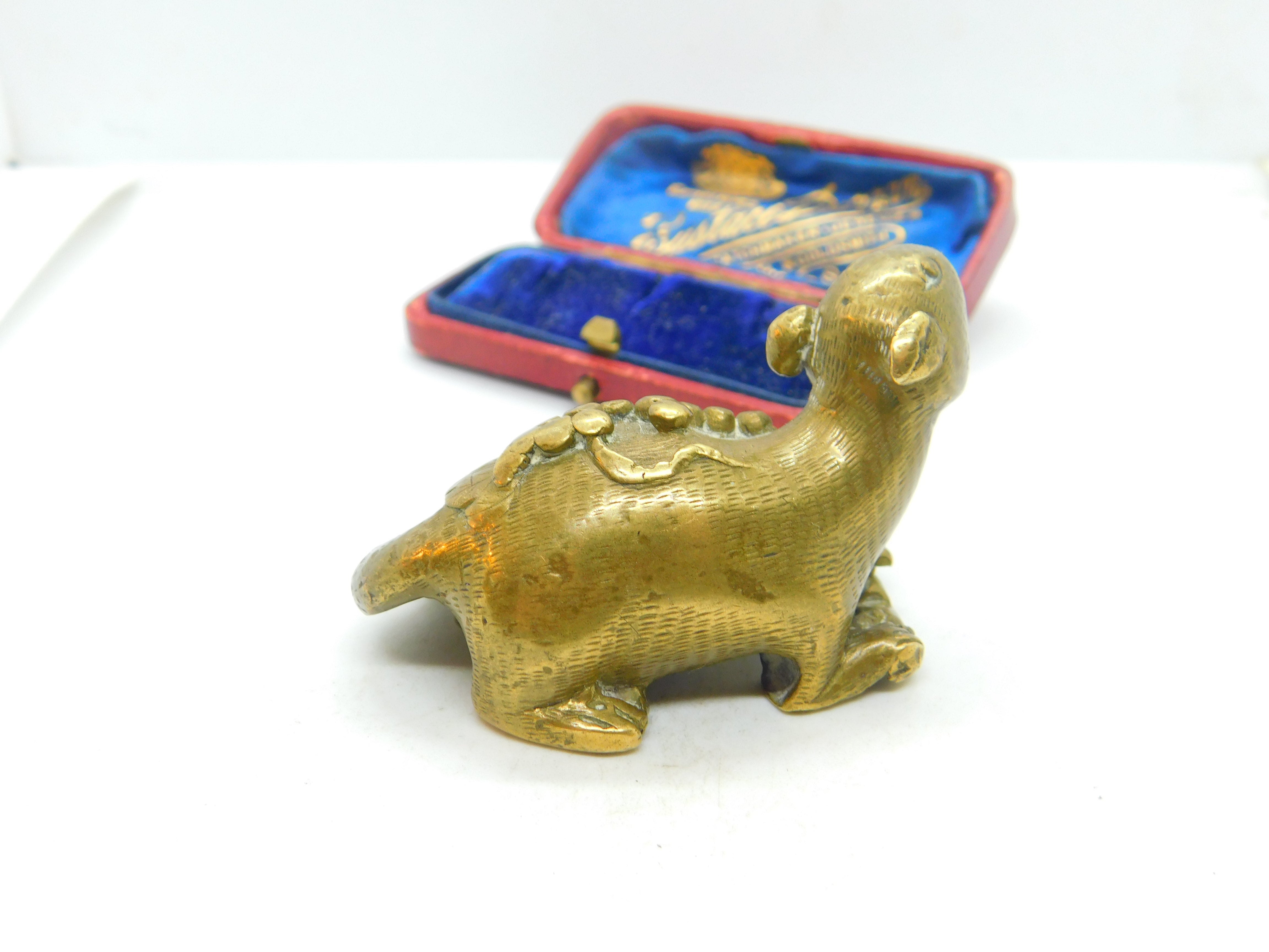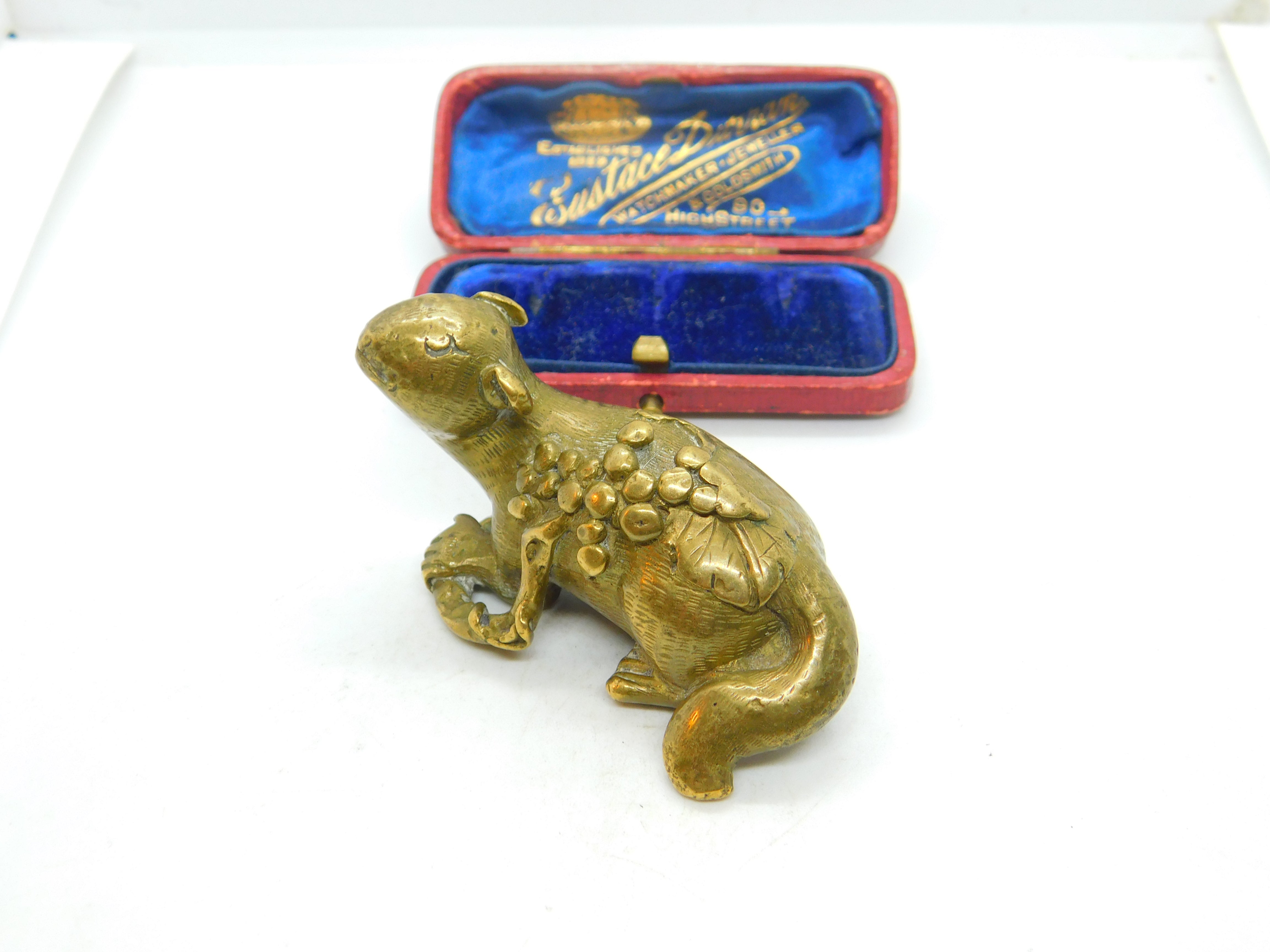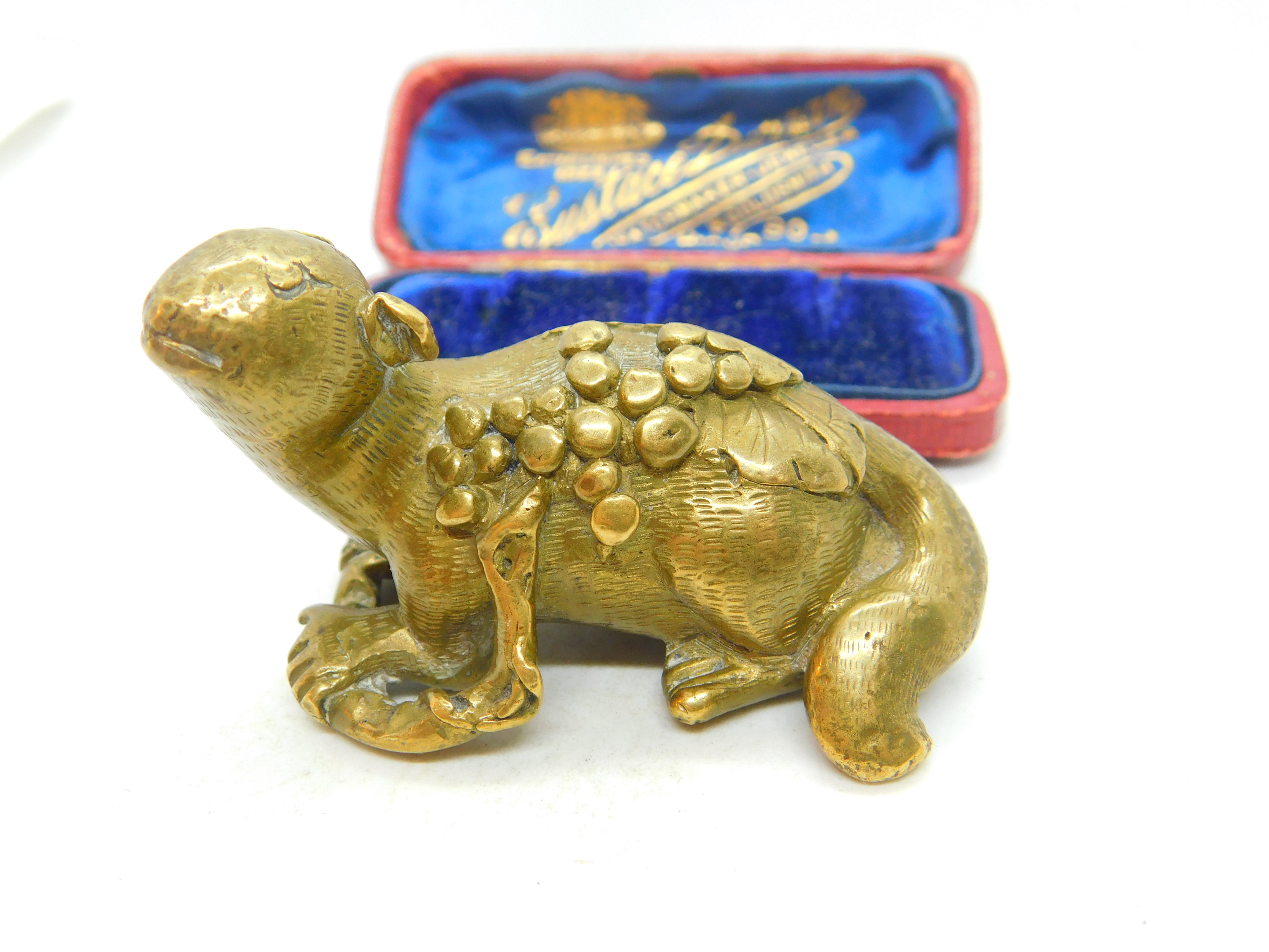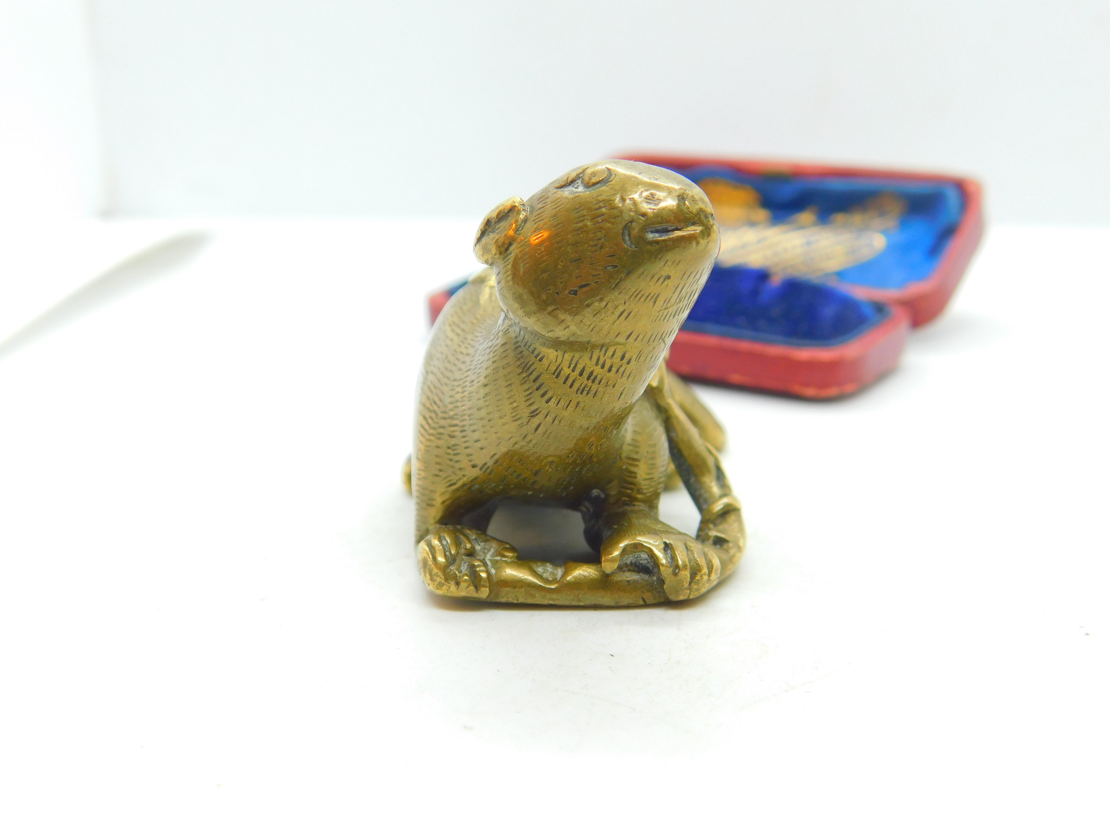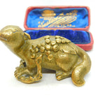 Details: A fantastic and wonderfully designed antique Victorian cast brass Chinese sculpture of a water otter with a prune sprig to the front c1860. In Chinese culture, the otter symbolizes joy, playfulness, and family unity. The otter's lively and social nature is associated with happiness and good fortune. Folklore depicts otters as diligent parents, emphasizing the importance of familial bonds. The otter is a positive symbol, representing harmony and the joy of companionship.This is a wonderful item that would make a perfect gift or addition to any collection. The BOX pictured is for PRESENTATION ONLY and is NOT included in the listings but used to frame the pictures unless specifically stated otherwise.