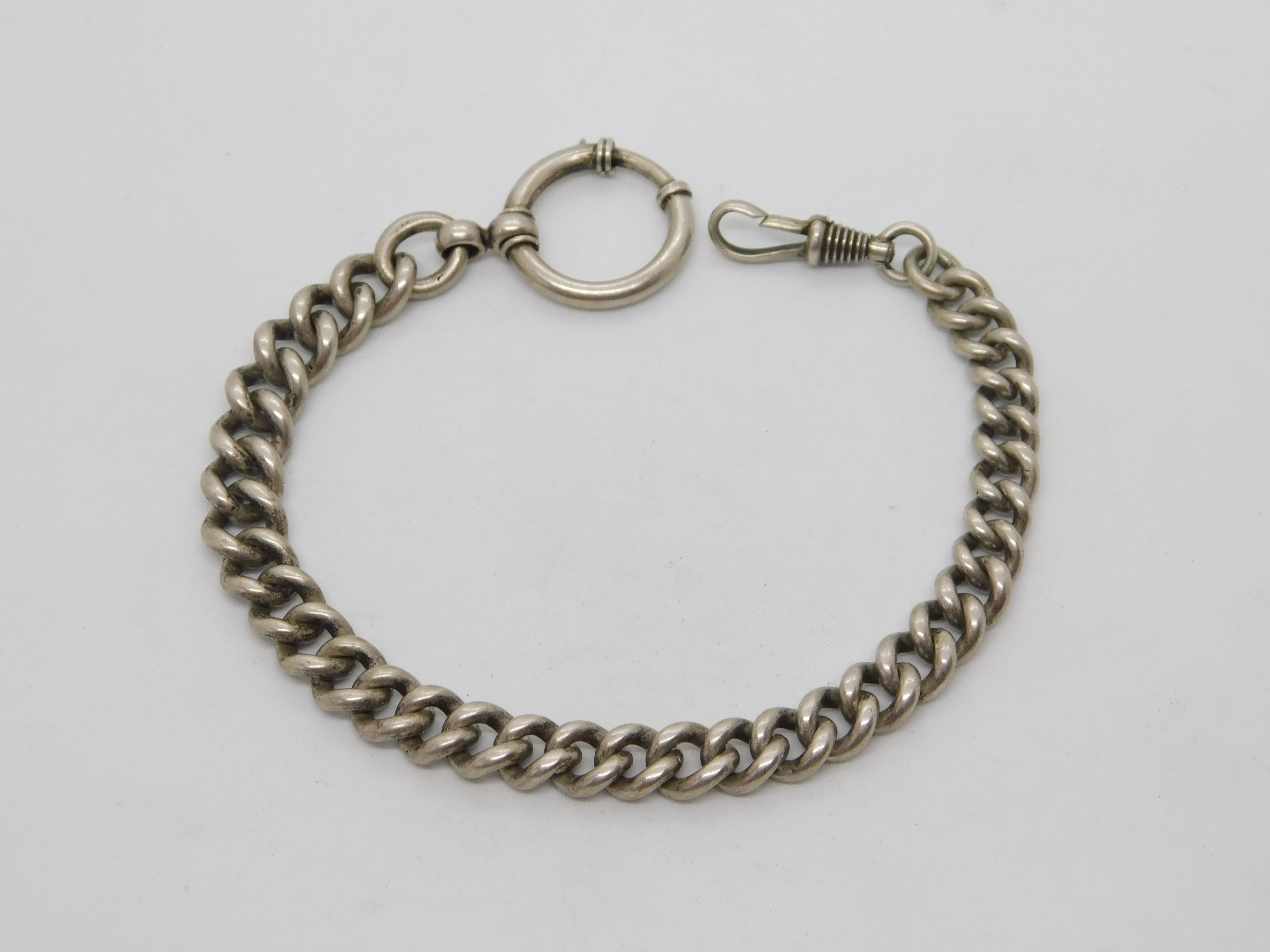 Victorian Chunky .800 Silver Graduating Watch Chain Bracelet c1900 Antique