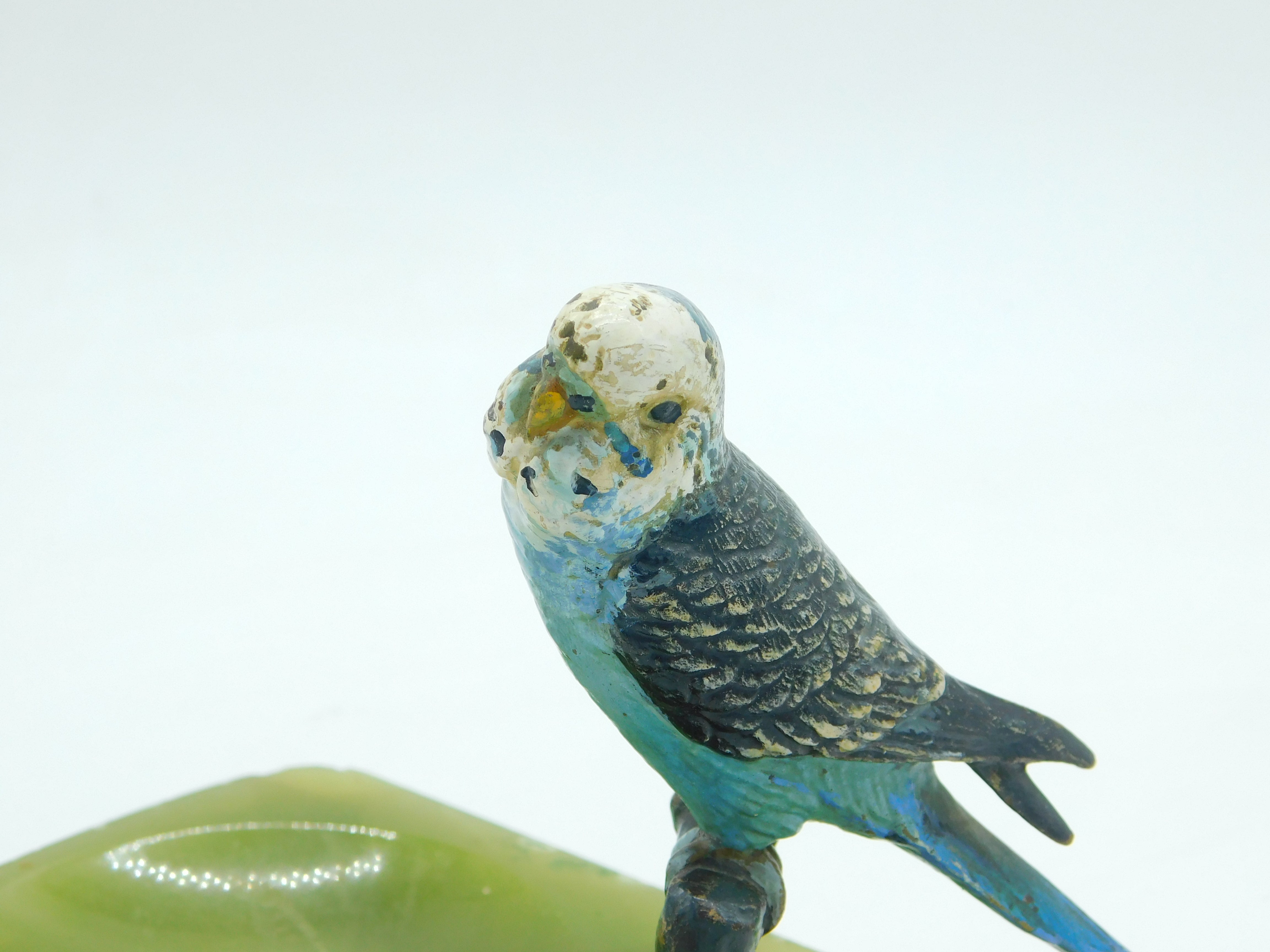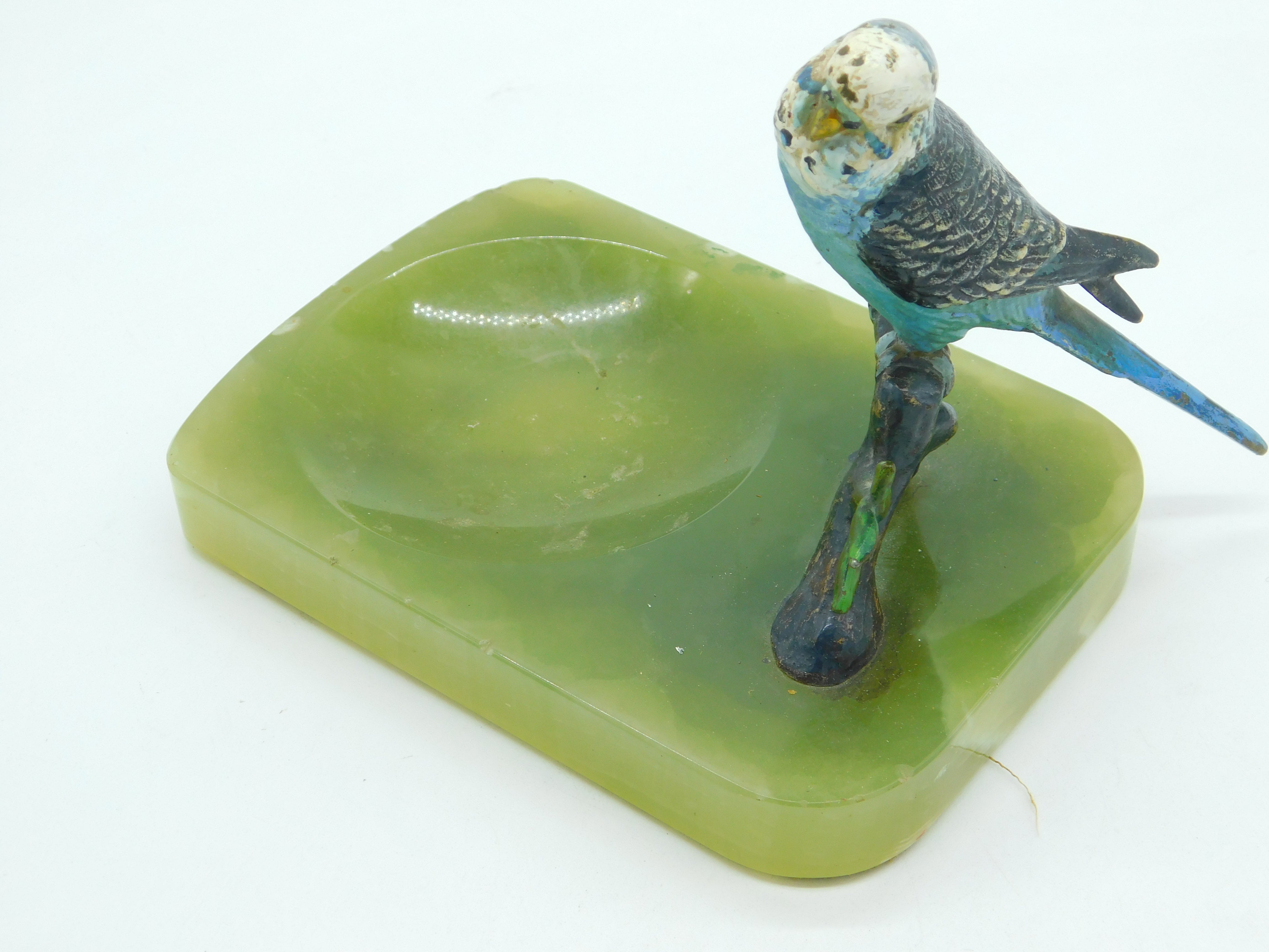 Victorian Cold Painted Vienna Bronze Budgie on Green Onyx Ashtray Antique c1860