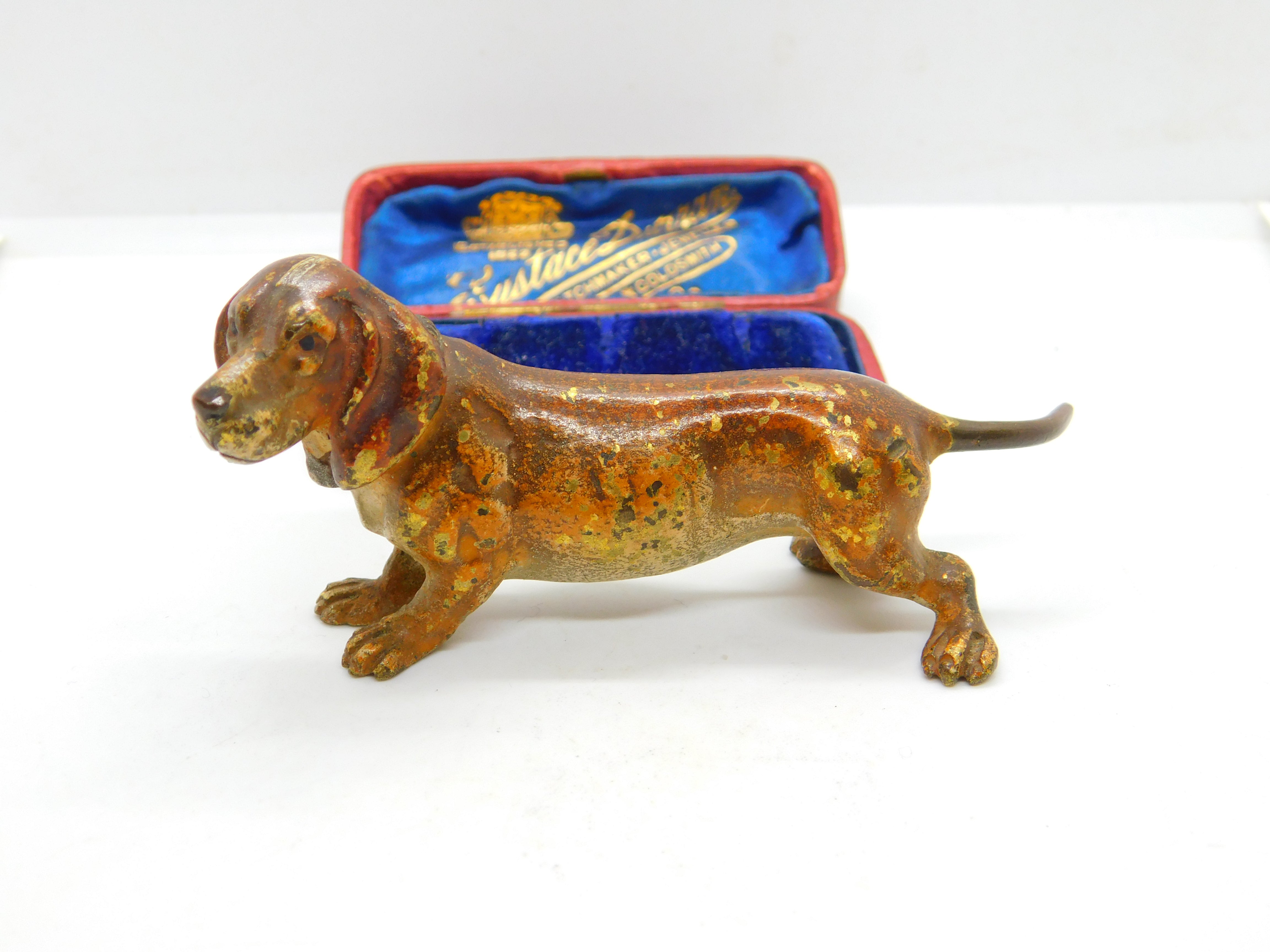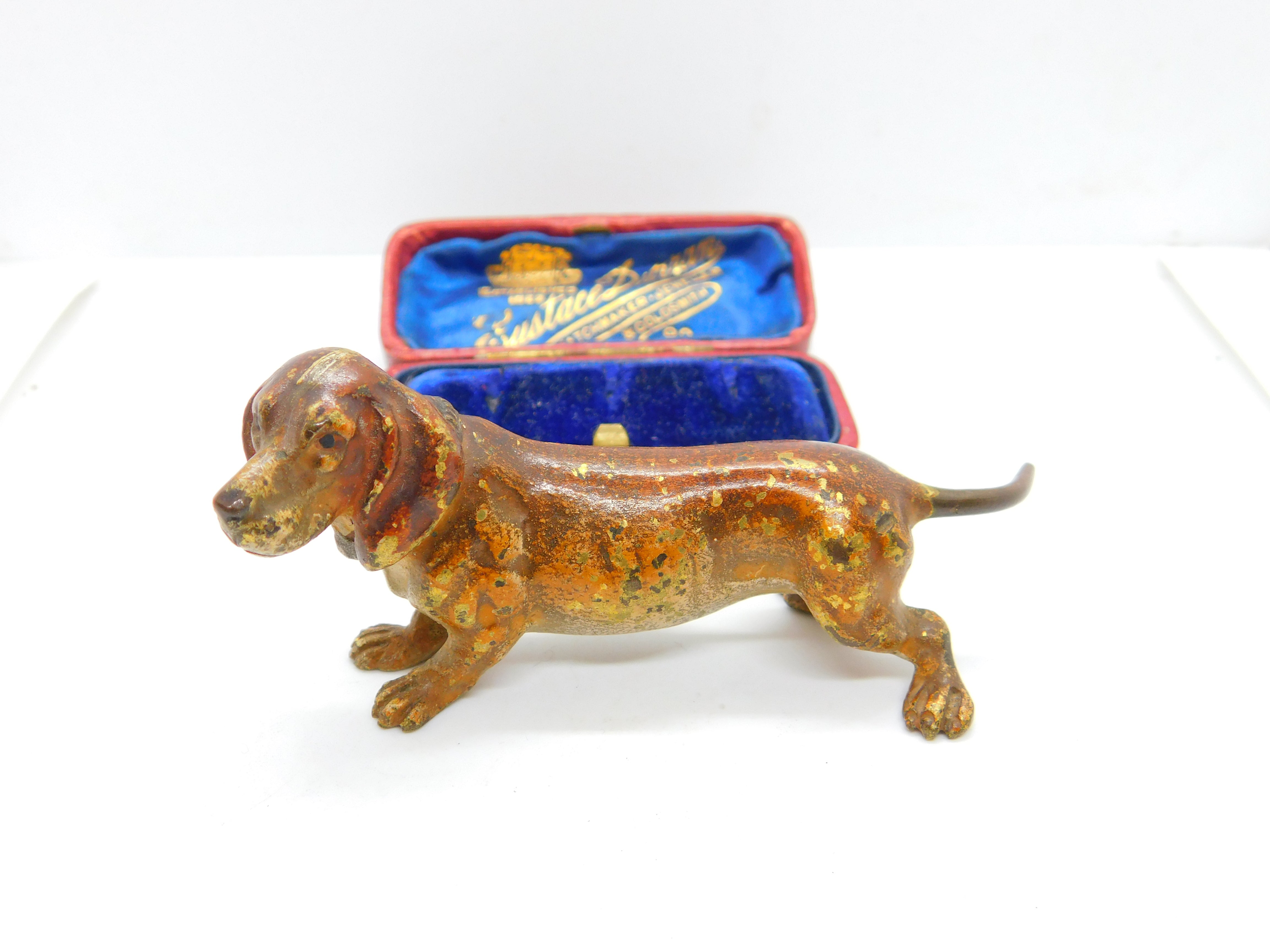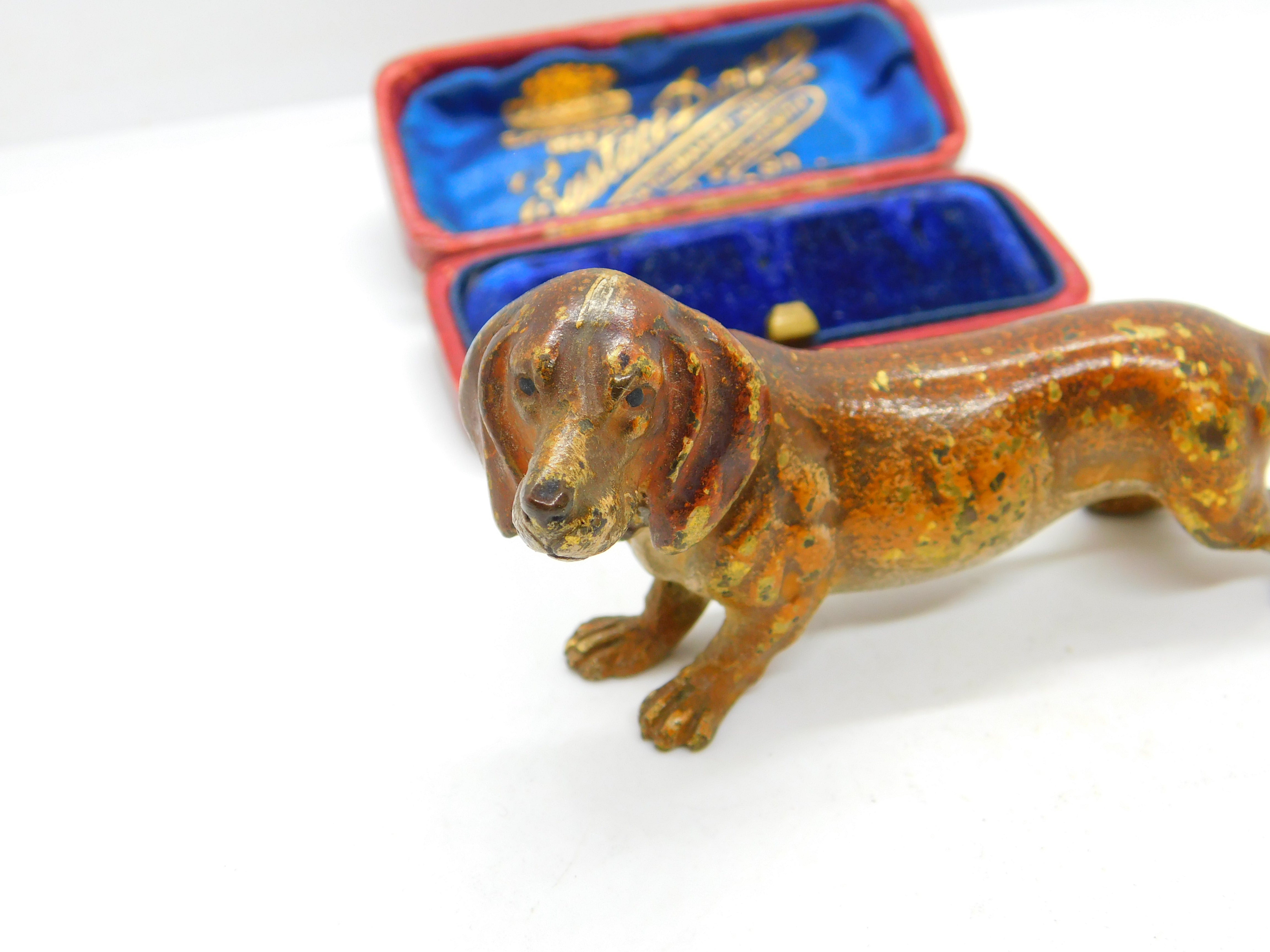 Victorian Cold Painted Vienna Bronze Dachshund Dog Sculpture Antique c1860