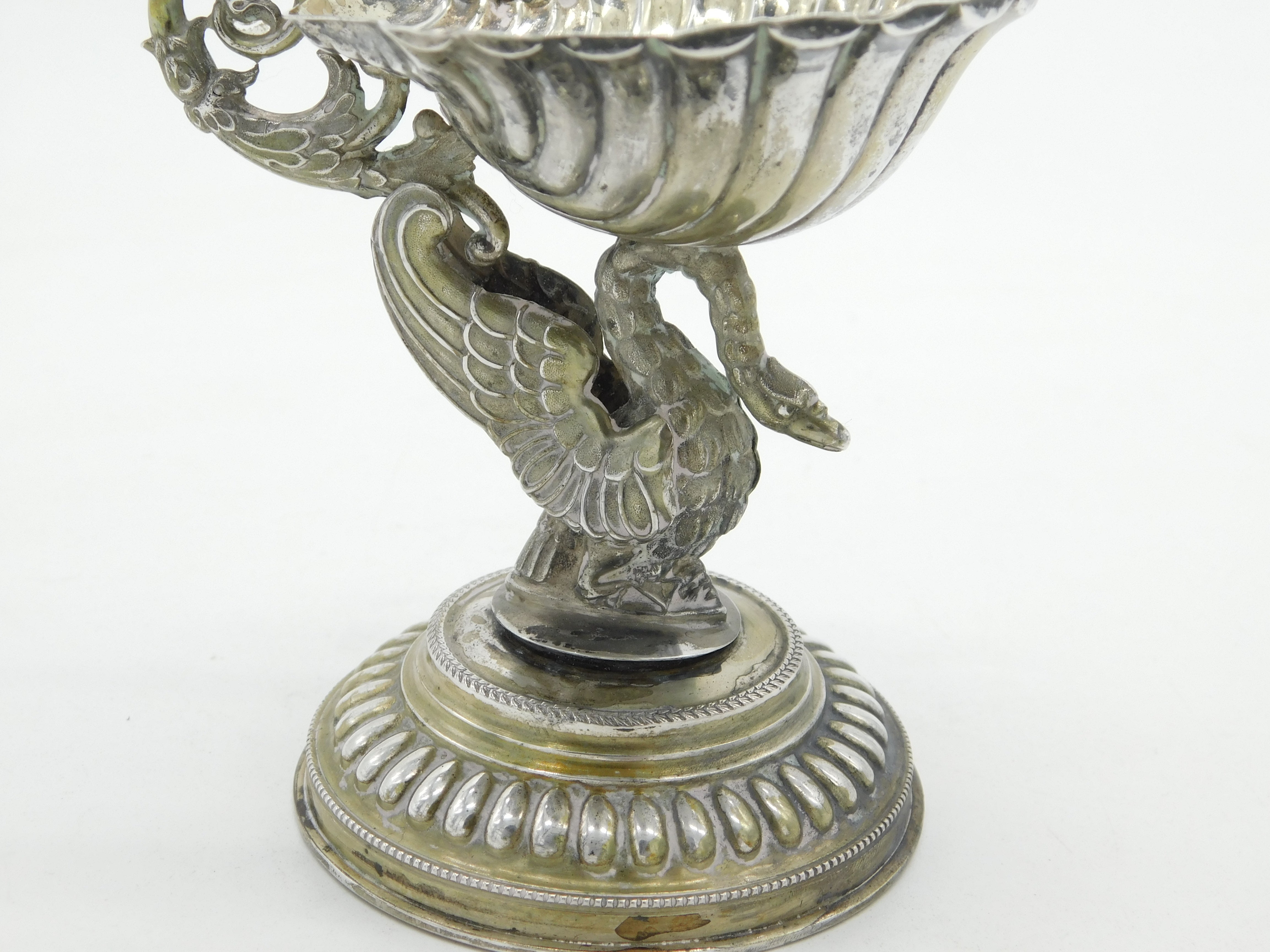 Victorian Continental 800 Silver Gilded Swan Pedestal Salt Cellar c1860 Antique