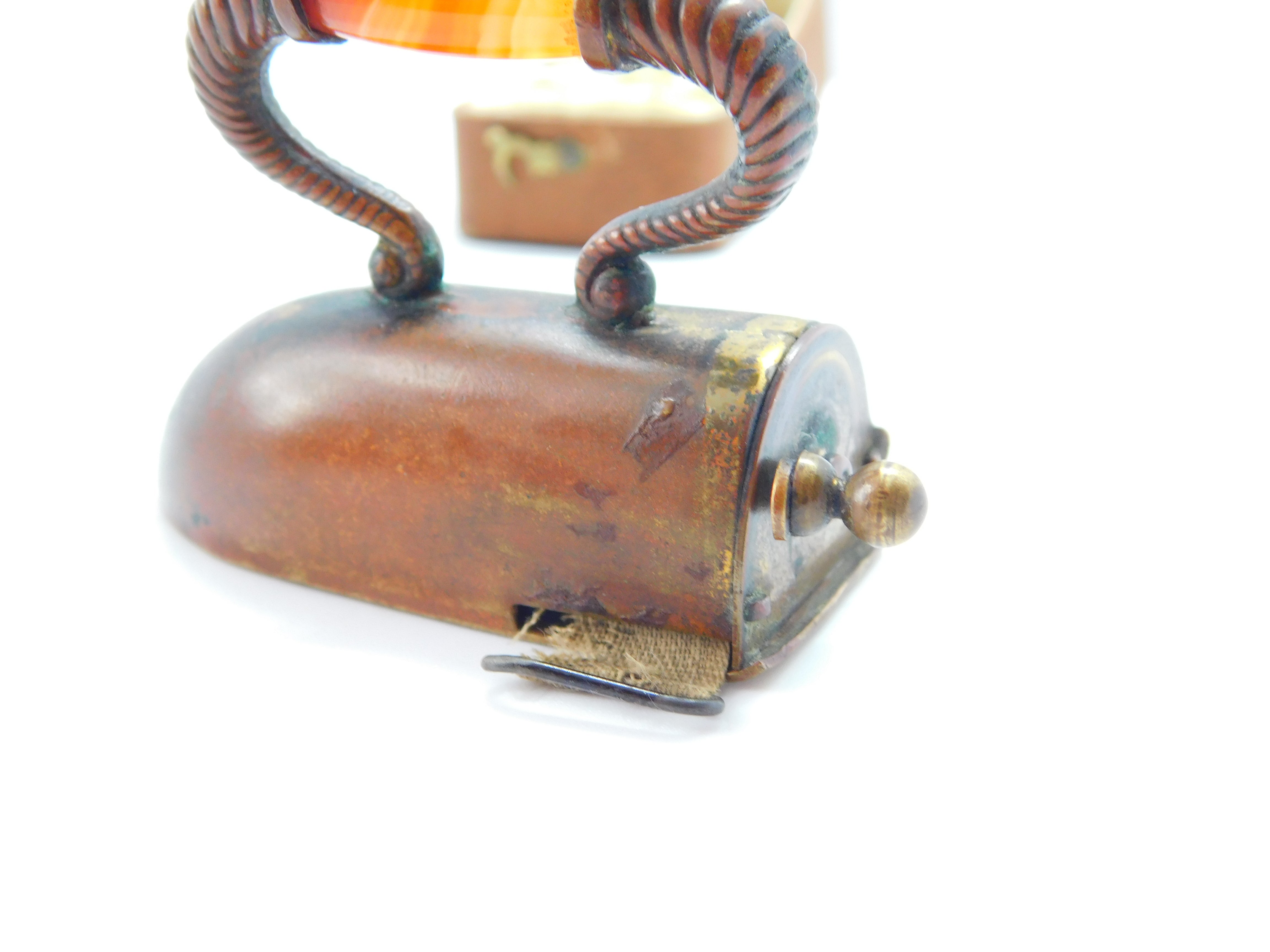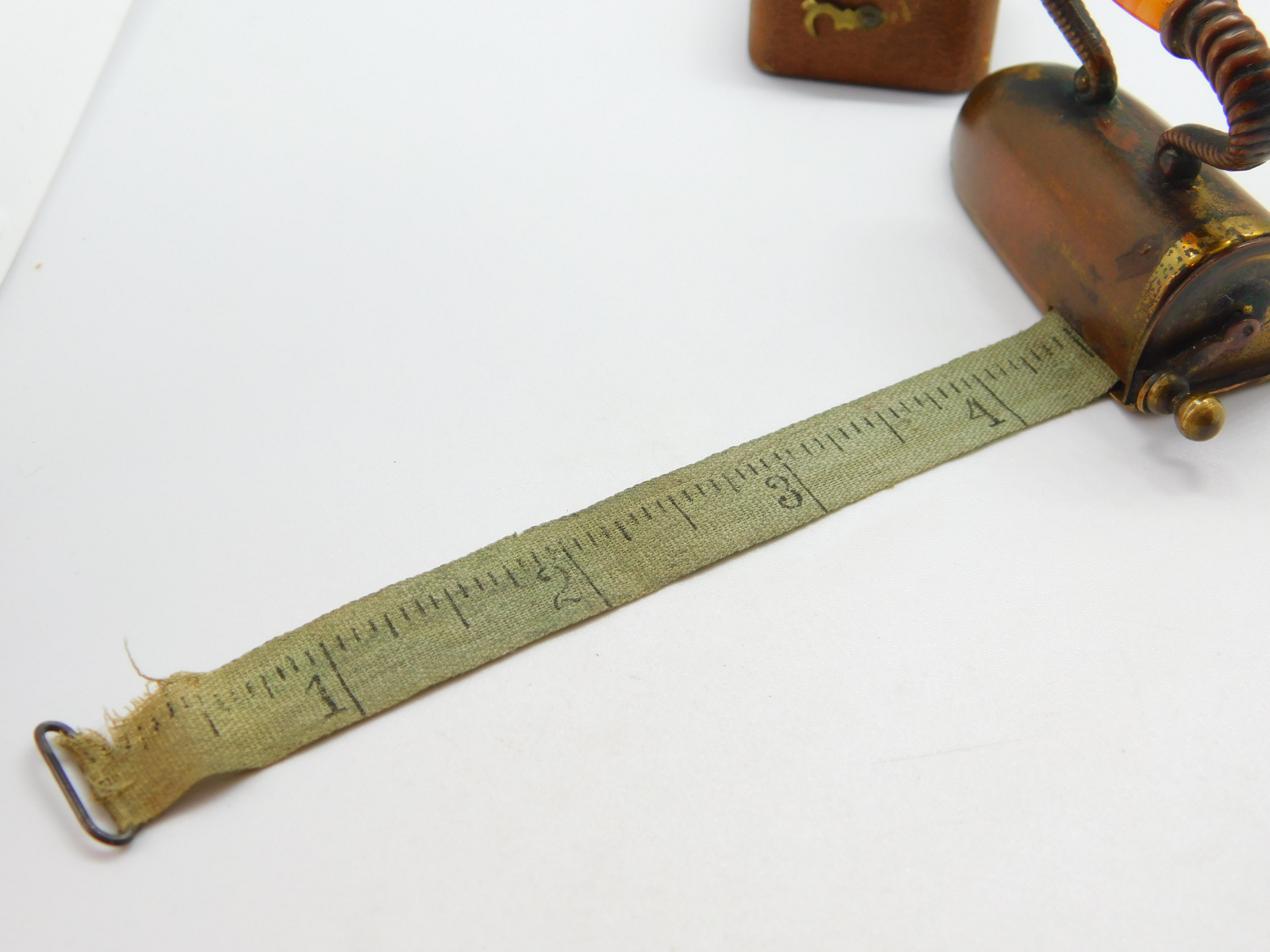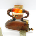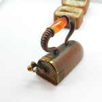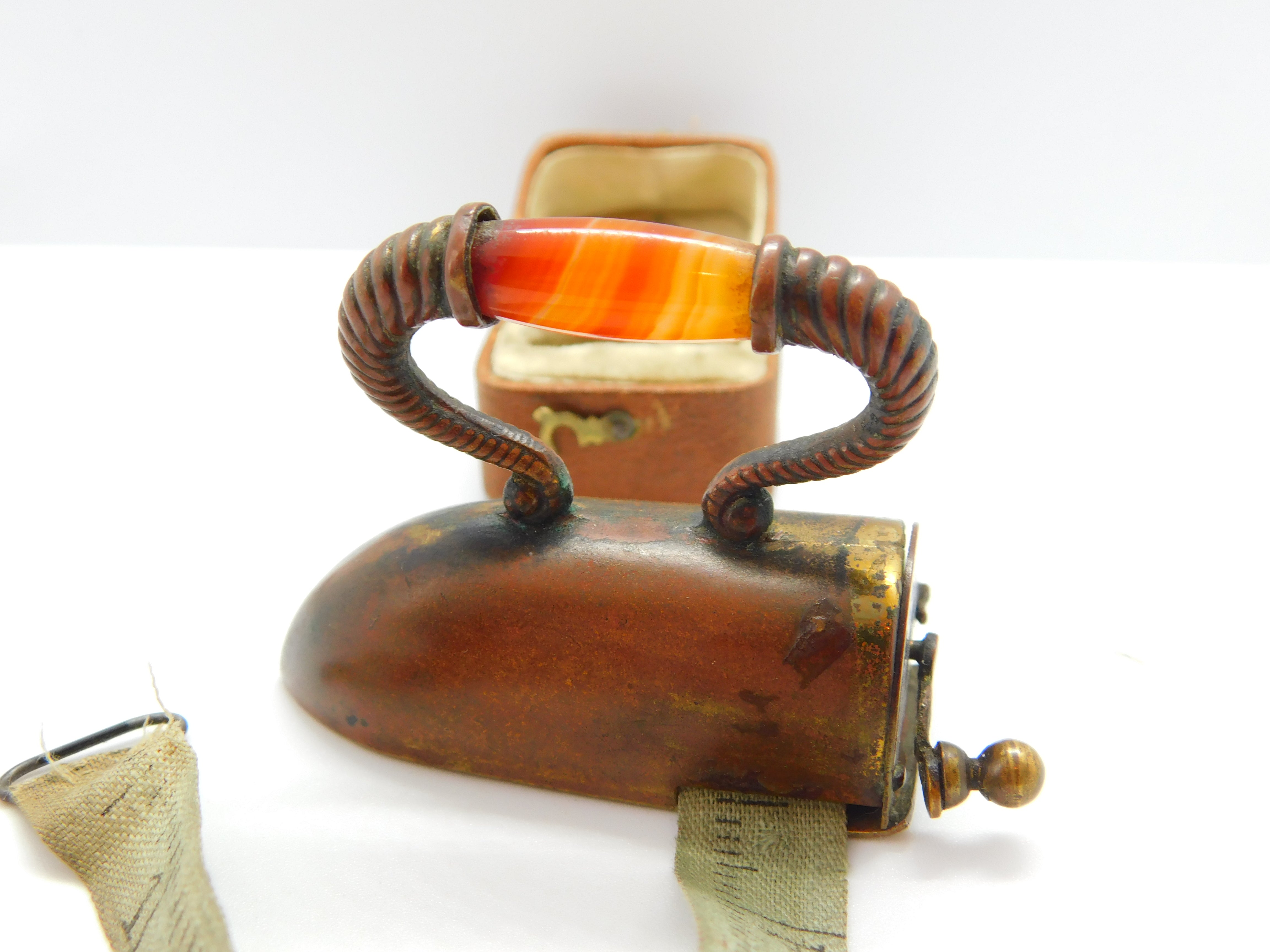 Victorian Copper Metal & Banded Agate Iron Shaped Novelty Tape Measure c1860