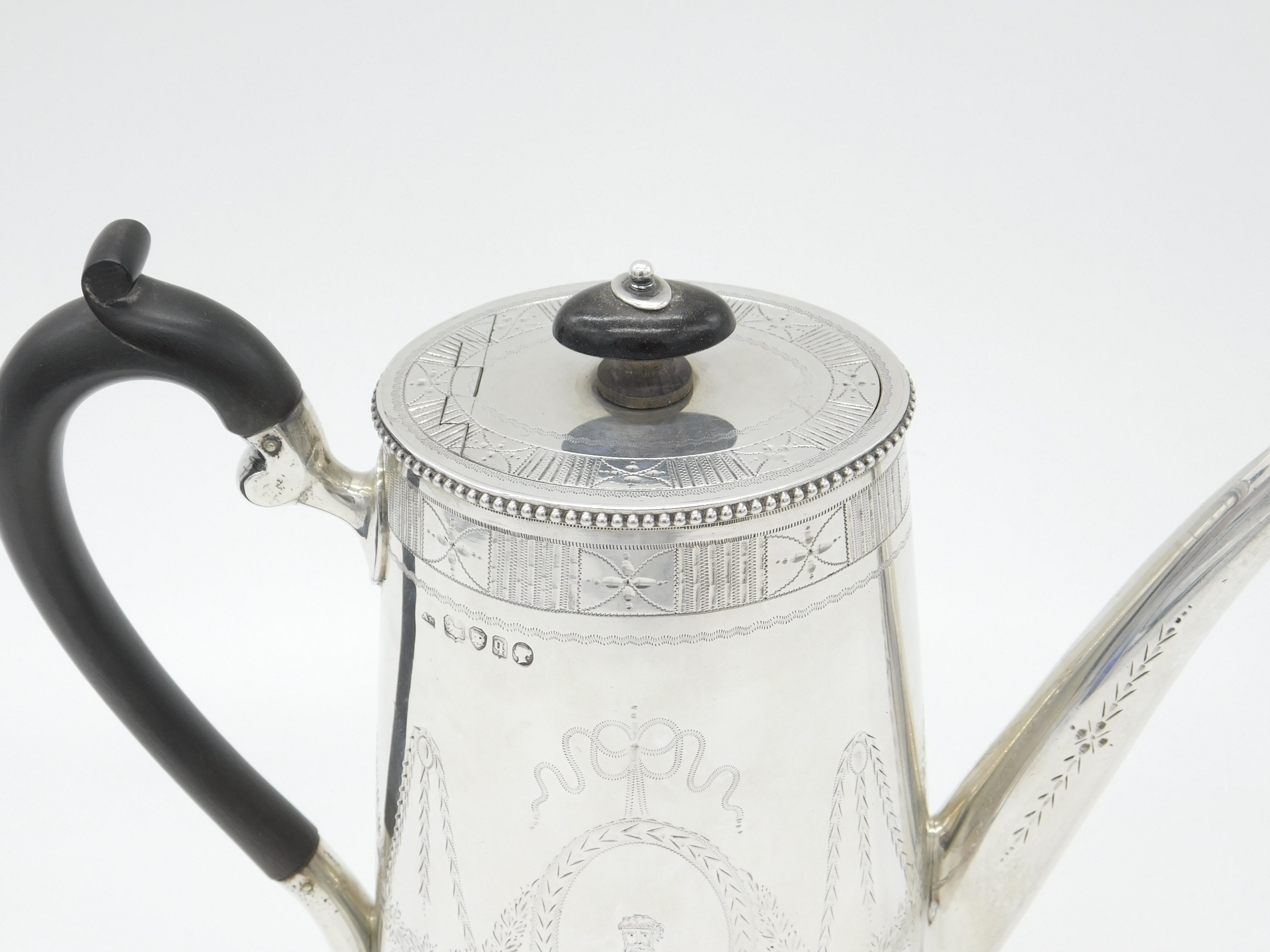 Victorian Crested Sterling Silver Wooden Handle Coffee Pot Antique 1871 London