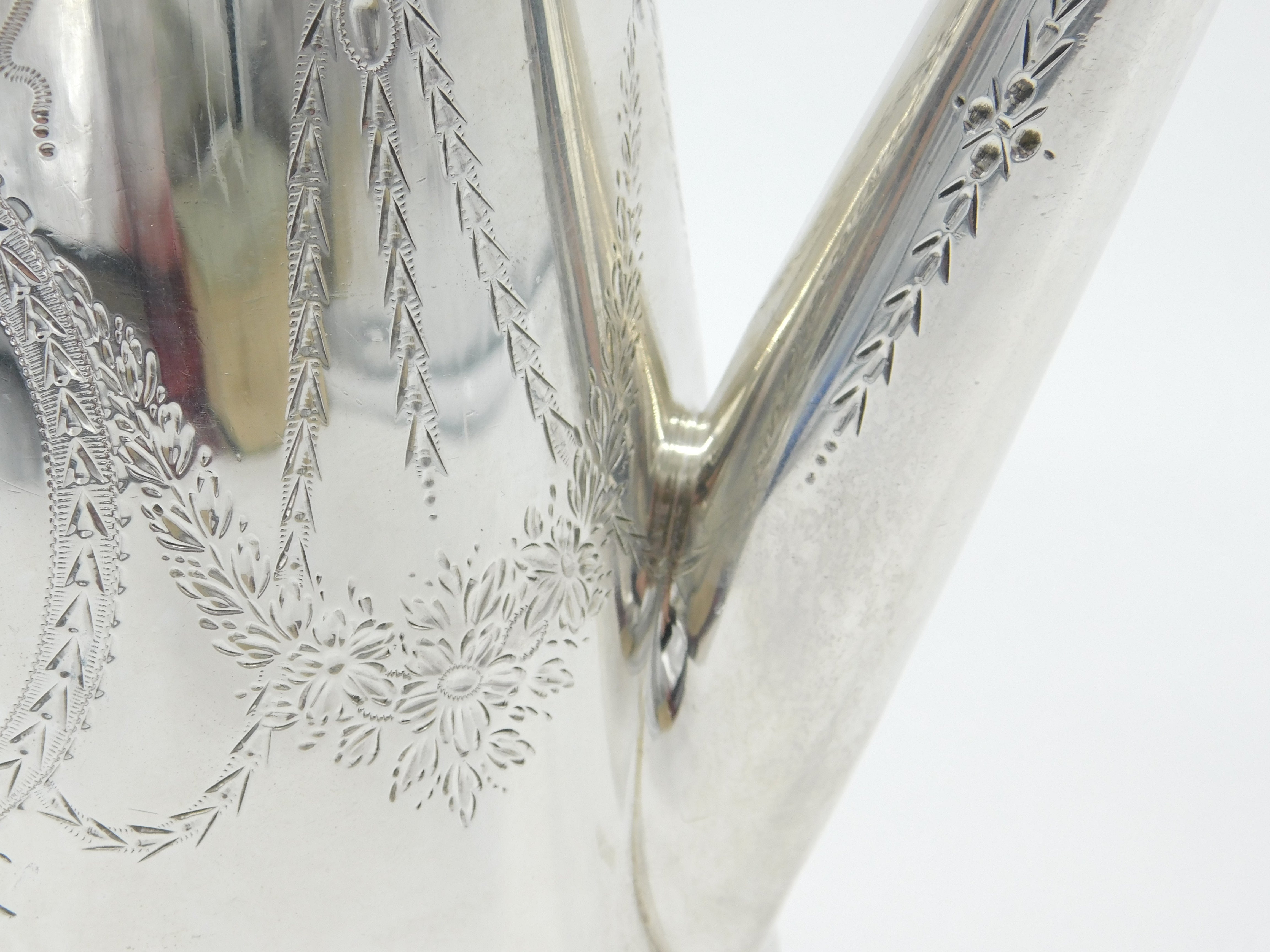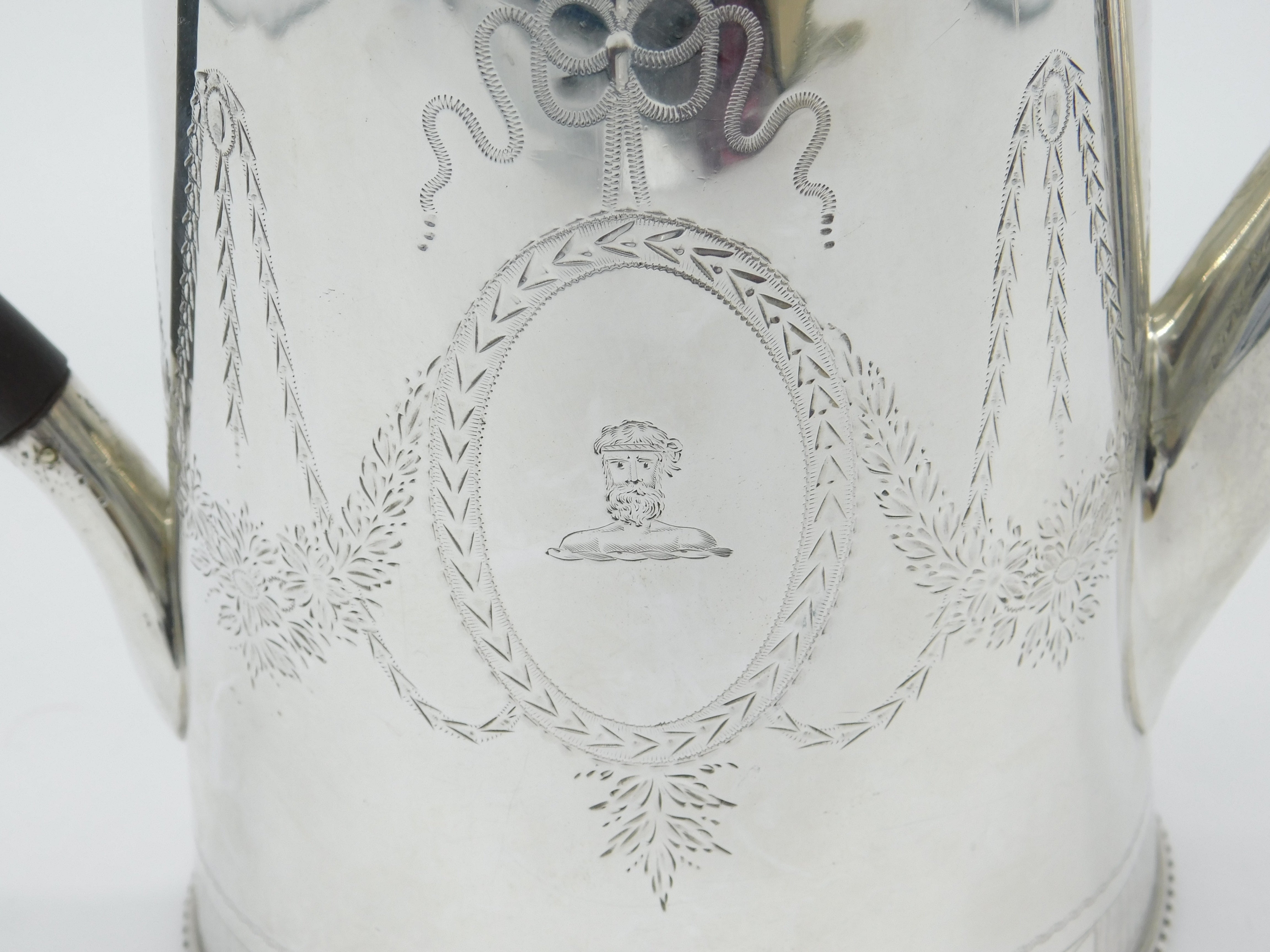 Details: A fantastic and wonderfully designed antique Victorian large sterling silver coffee pot with burr wood handle adorned with superb art nouveau bow & flower engravings as well as showing a lovely Zeus classical figure to the central cartouche hallmarked London 1871 by Arthur Sibley to the top edge. No Signs of repairs - A really good Victorian example in great usable condition. This is a wonderful item that would make a perfect gift or addition to any collection. The BOX pictured is for PRESENTATION ONLY and is NOT included in the listings but used to frame the pictures unless specifically stated otherwise.