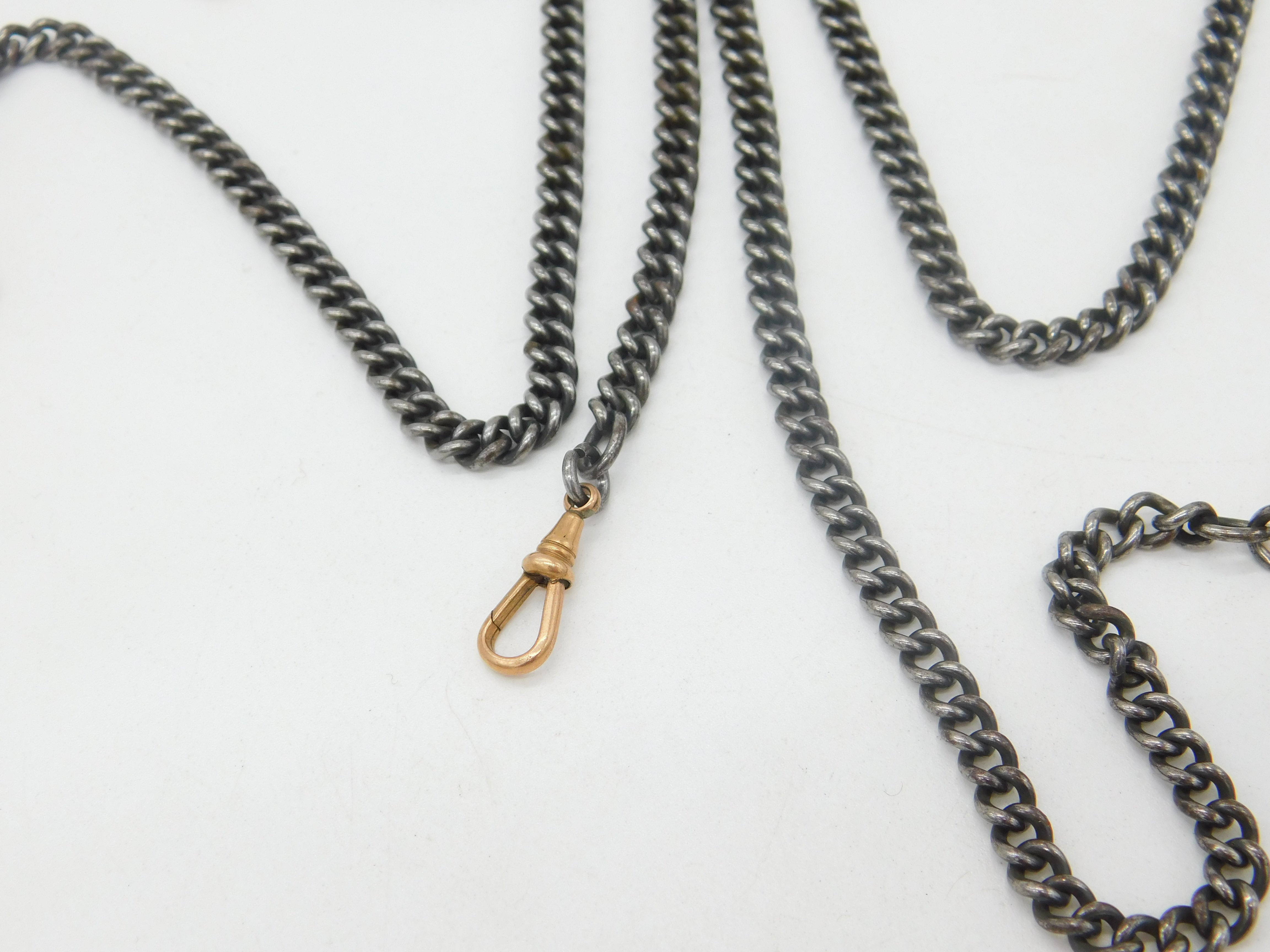 Victorian Cut Steel Chatelaine with Rolled Gold Dog Clips Antique c1860