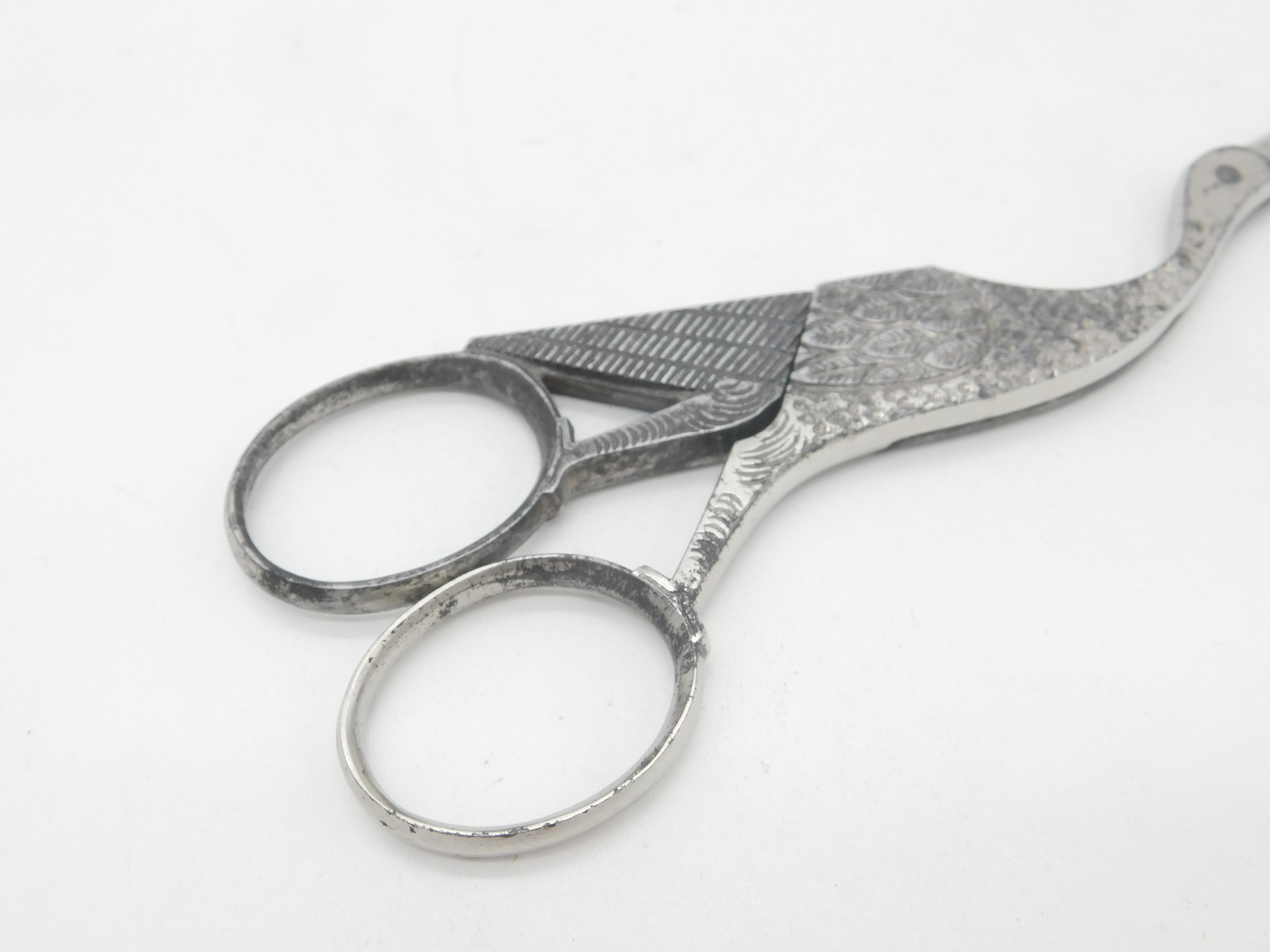 Details: A fantastic and wonderfully designed antique Victorian novelty cut steel sewing scissors in the form of a bird or stork with lovely design c1860. This is a wonderful item that would make a perfect gift or addition to any collection. The BOX pictured is for PRESENTATION ONLY and is NOT included in the listings but used to frame the pictures unless specifically stated otherwise.
