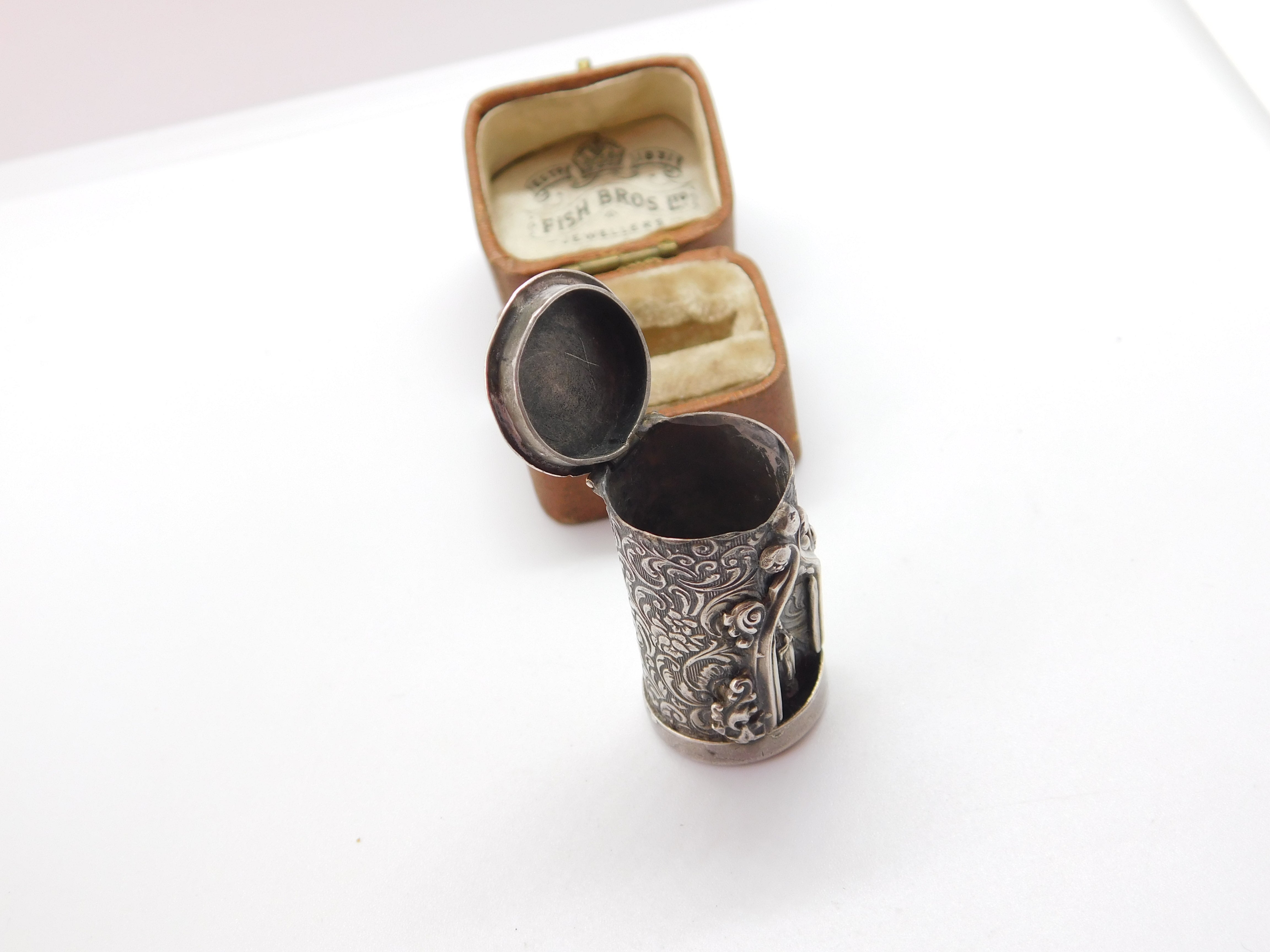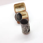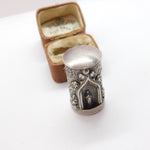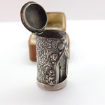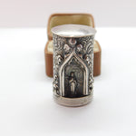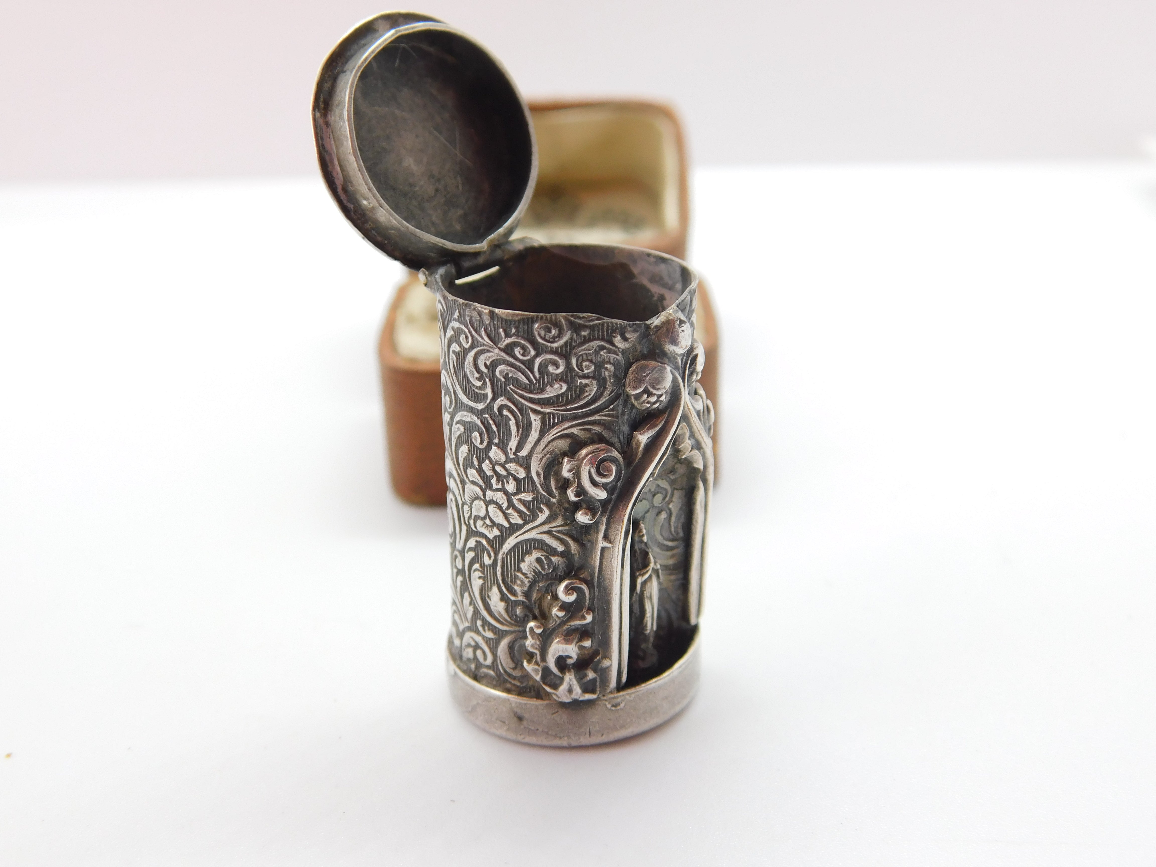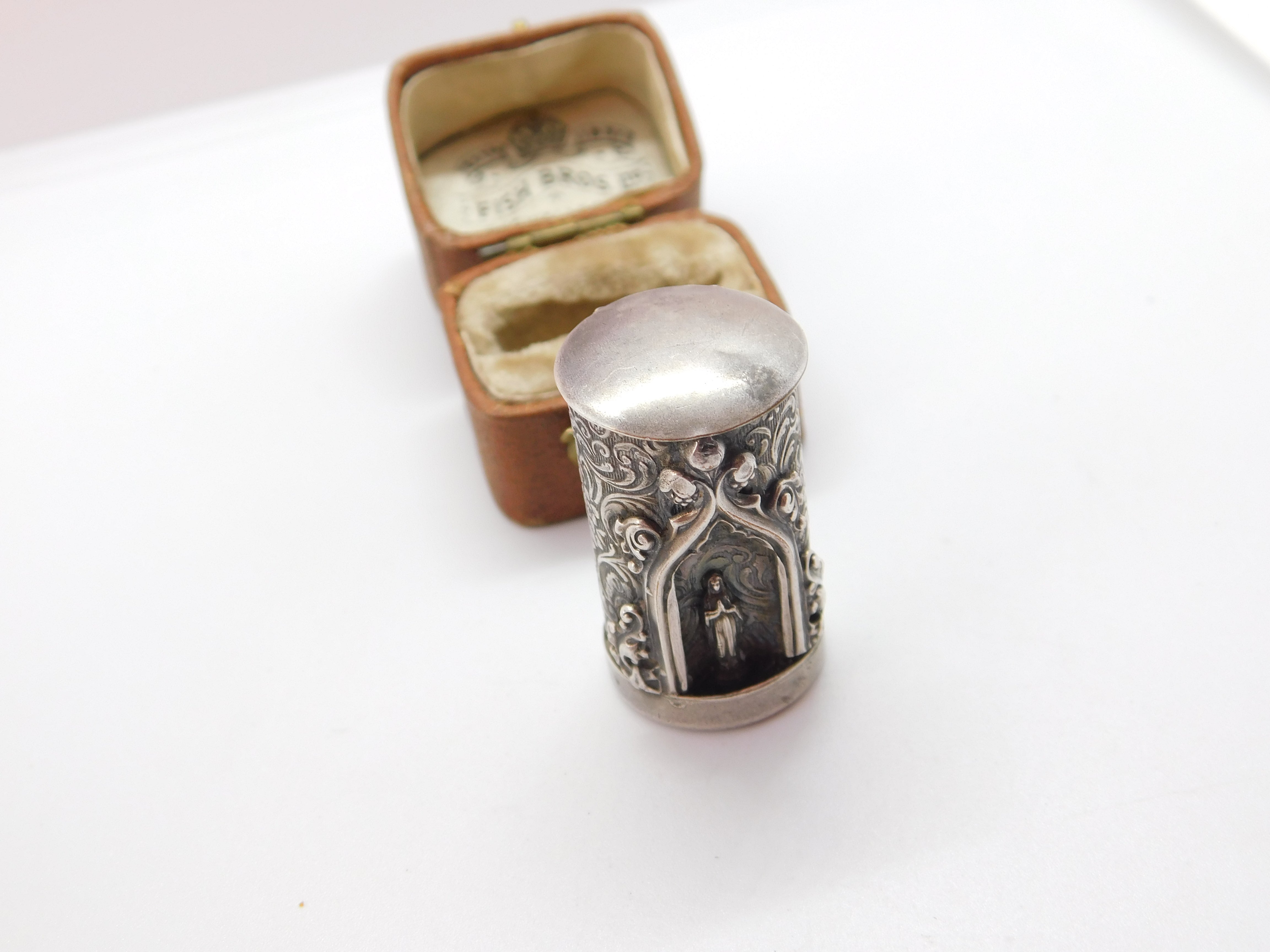 Victorian Cylindrical Sterling Silver Smelling Salts Pot with Virgin Mary c1860