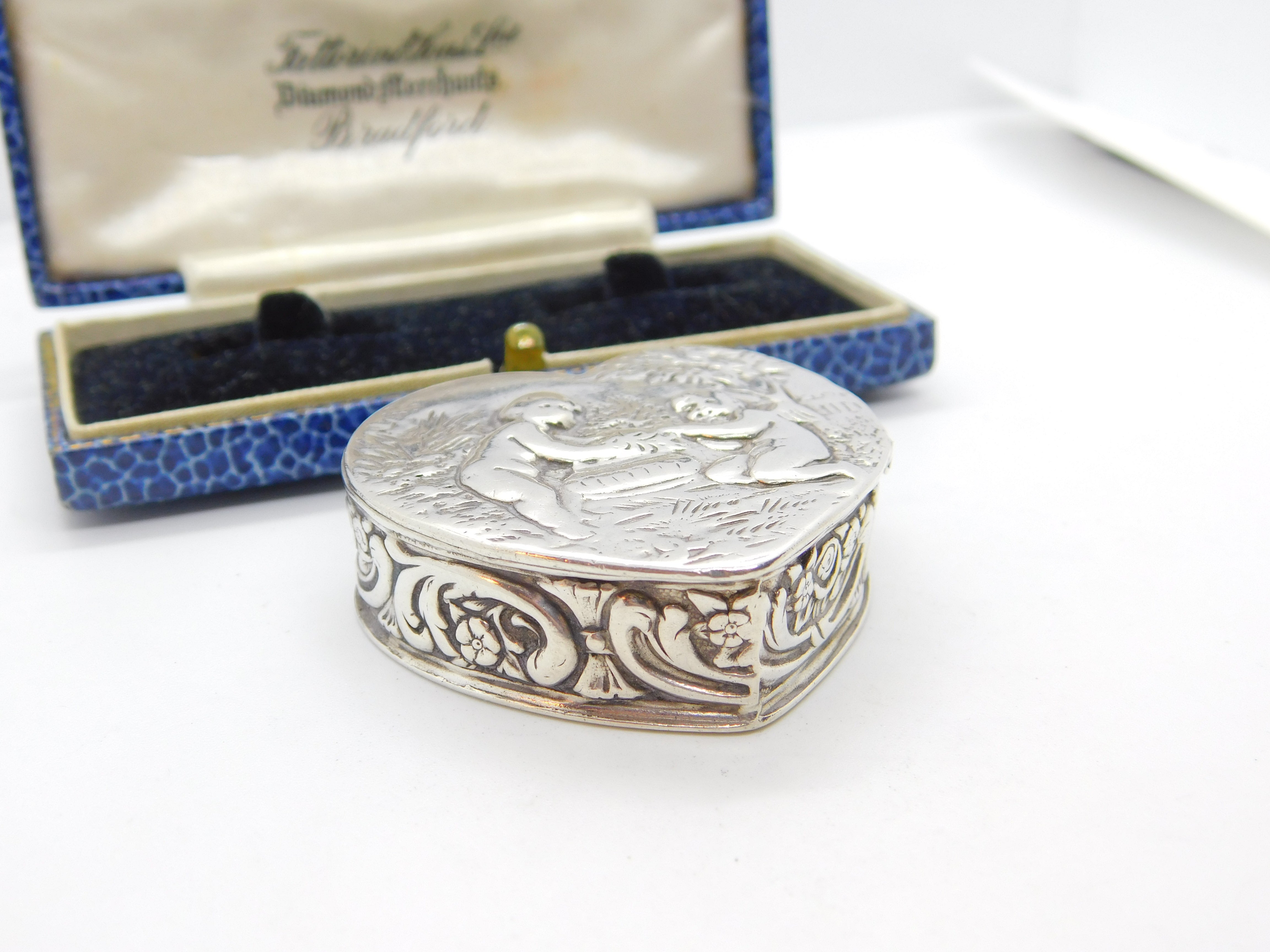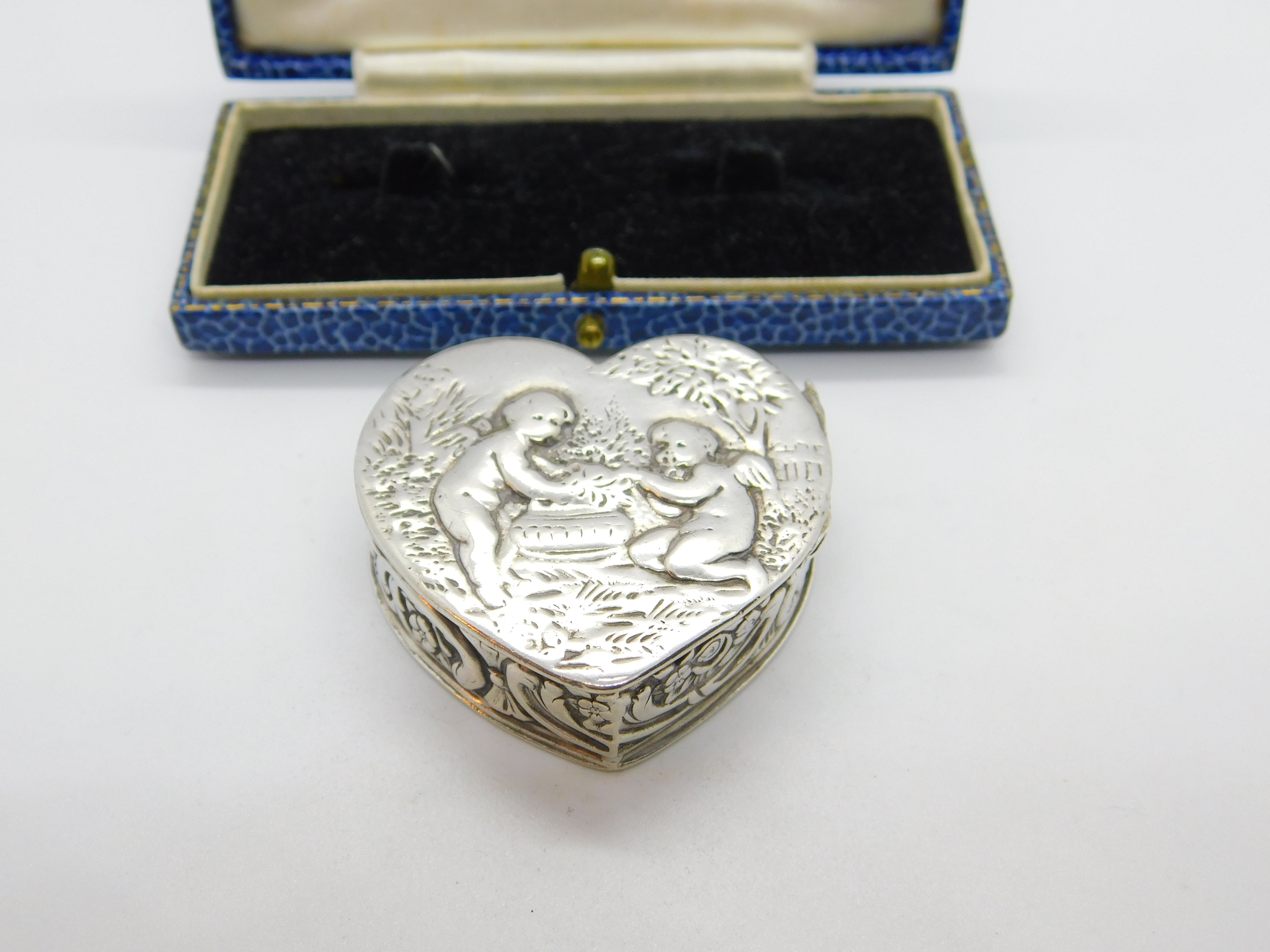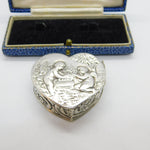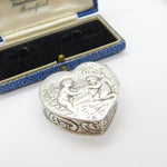 Victorian Dutch 800 Silver Heart Shaped Cupid Form Trinket Box Antique c1900