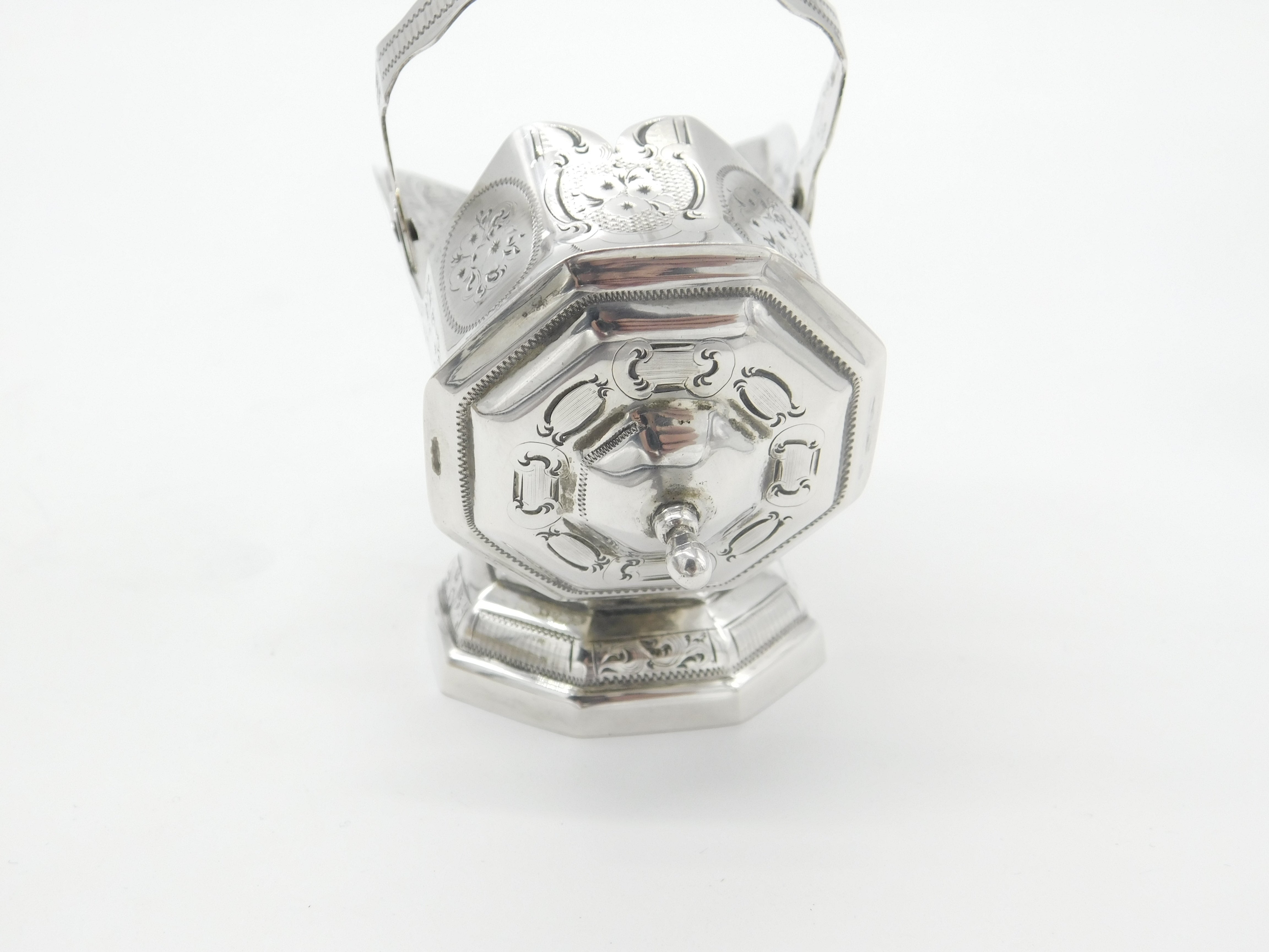 Victorian Dutch Sterling Silver Sugar Scuttle Floral Pattern c1890 Antique