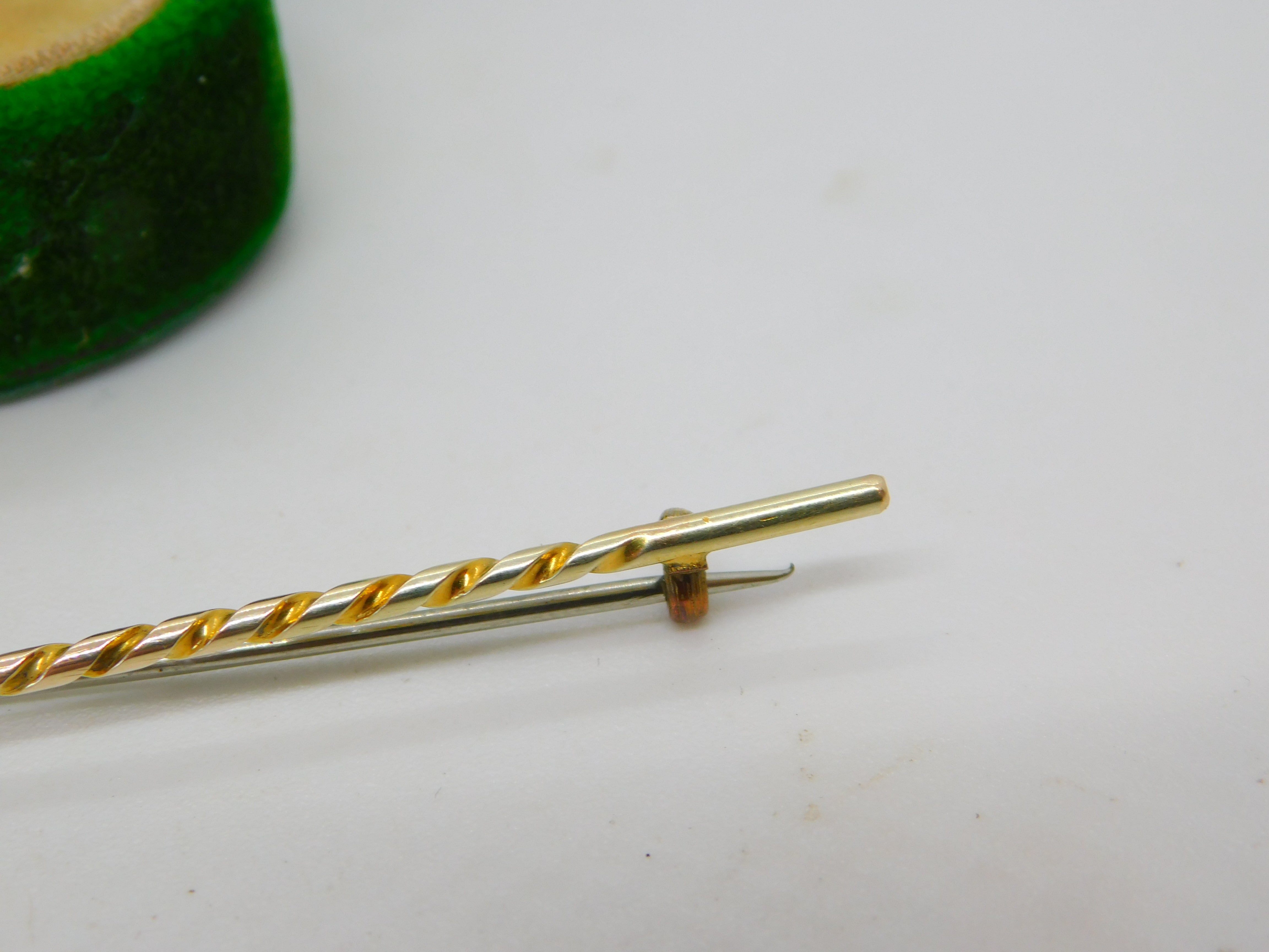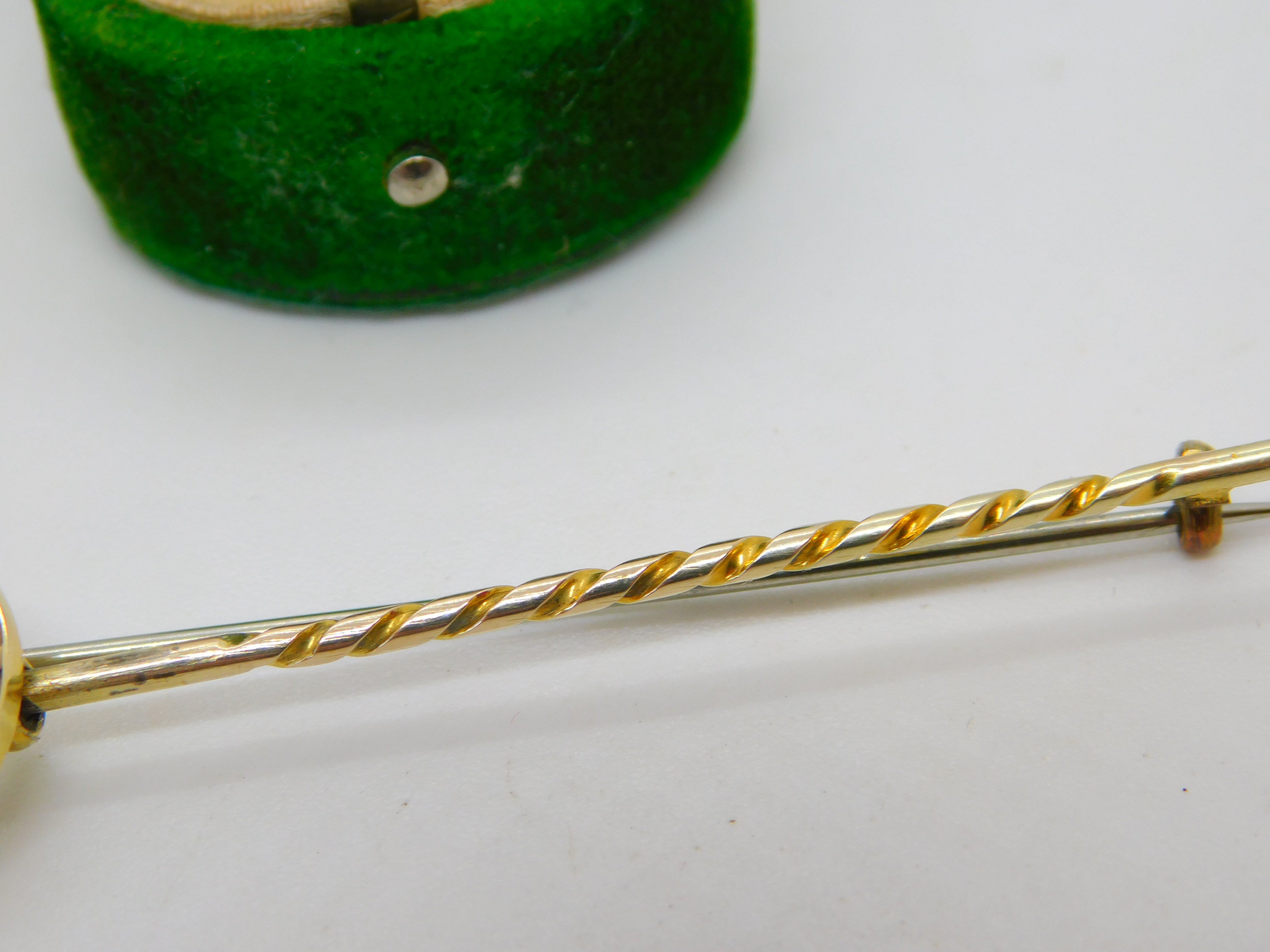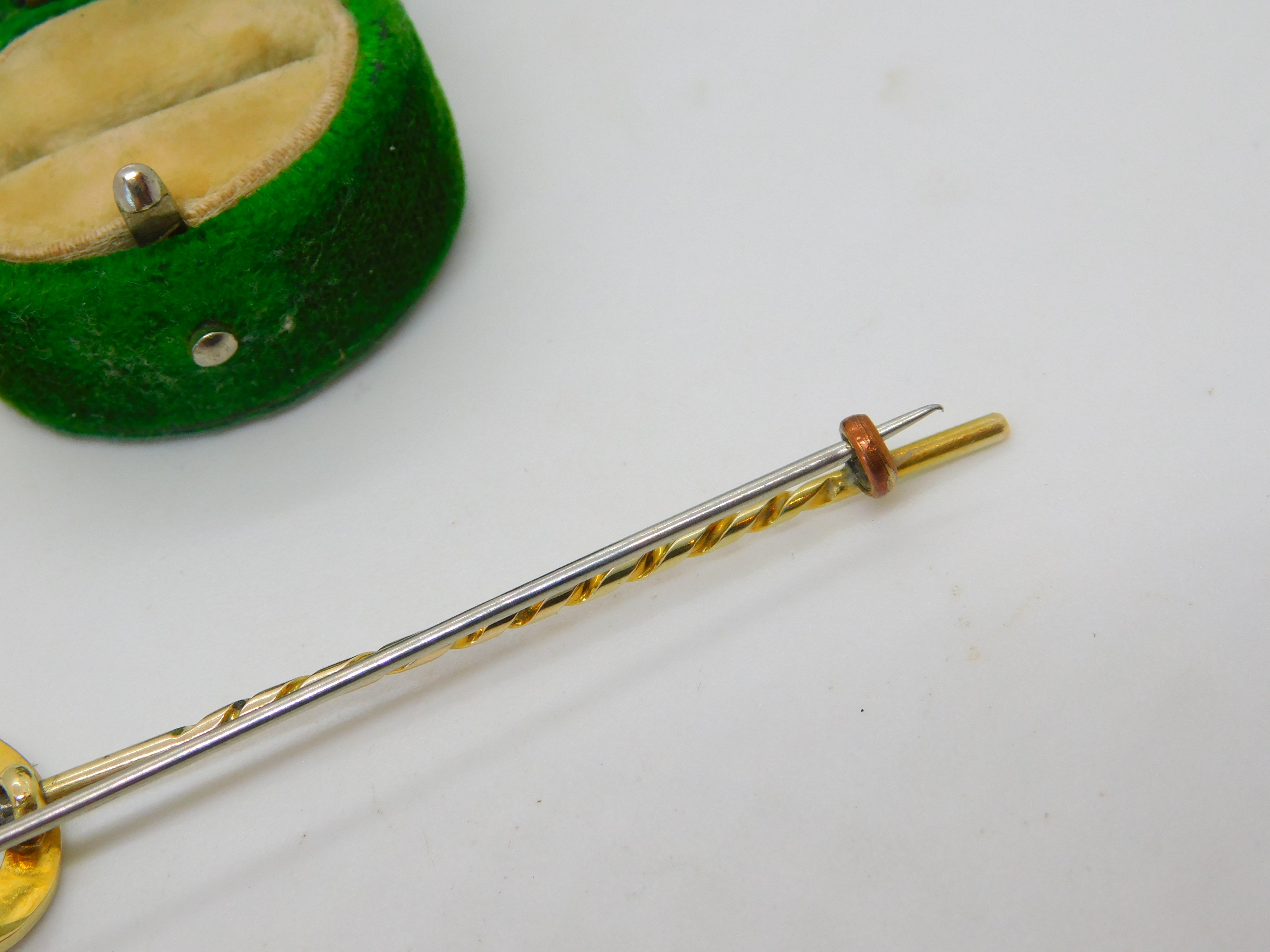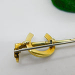 Details: A fantastic and wonderfully designed antique Victorian french 18ct yellow gold long bar brooch or stock pin in the form of a hunting crop and blue enamel adorned lucky horseshoe c1860. The gold has been XRF tested as it is unmarked. The horseshoe moves around the pin and is not fixed in place please note this. This is a wonderful item that would make a perfect gift or addition to any collection. The BOX pictured is for PRESENTATION ONLY and is NOT included in the listings but used to frame the pictures unless specifically stated otherwise.