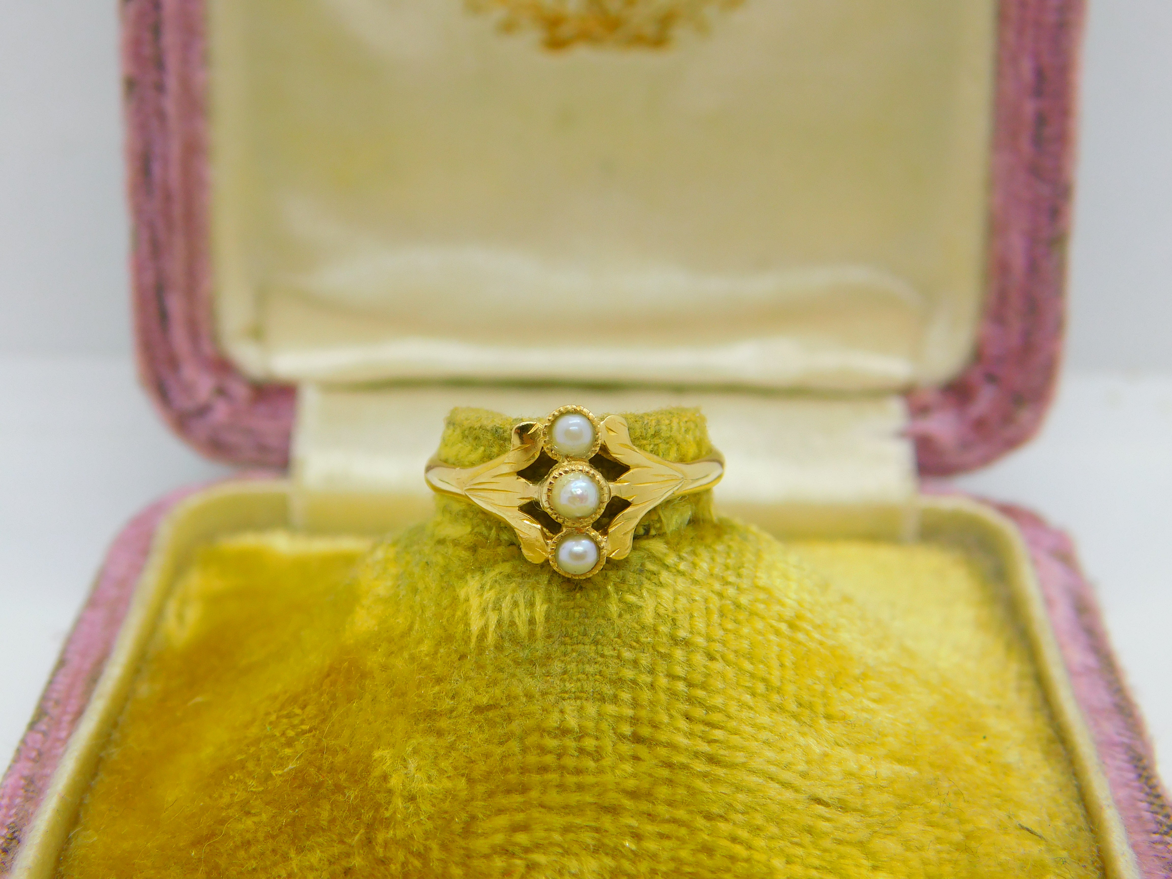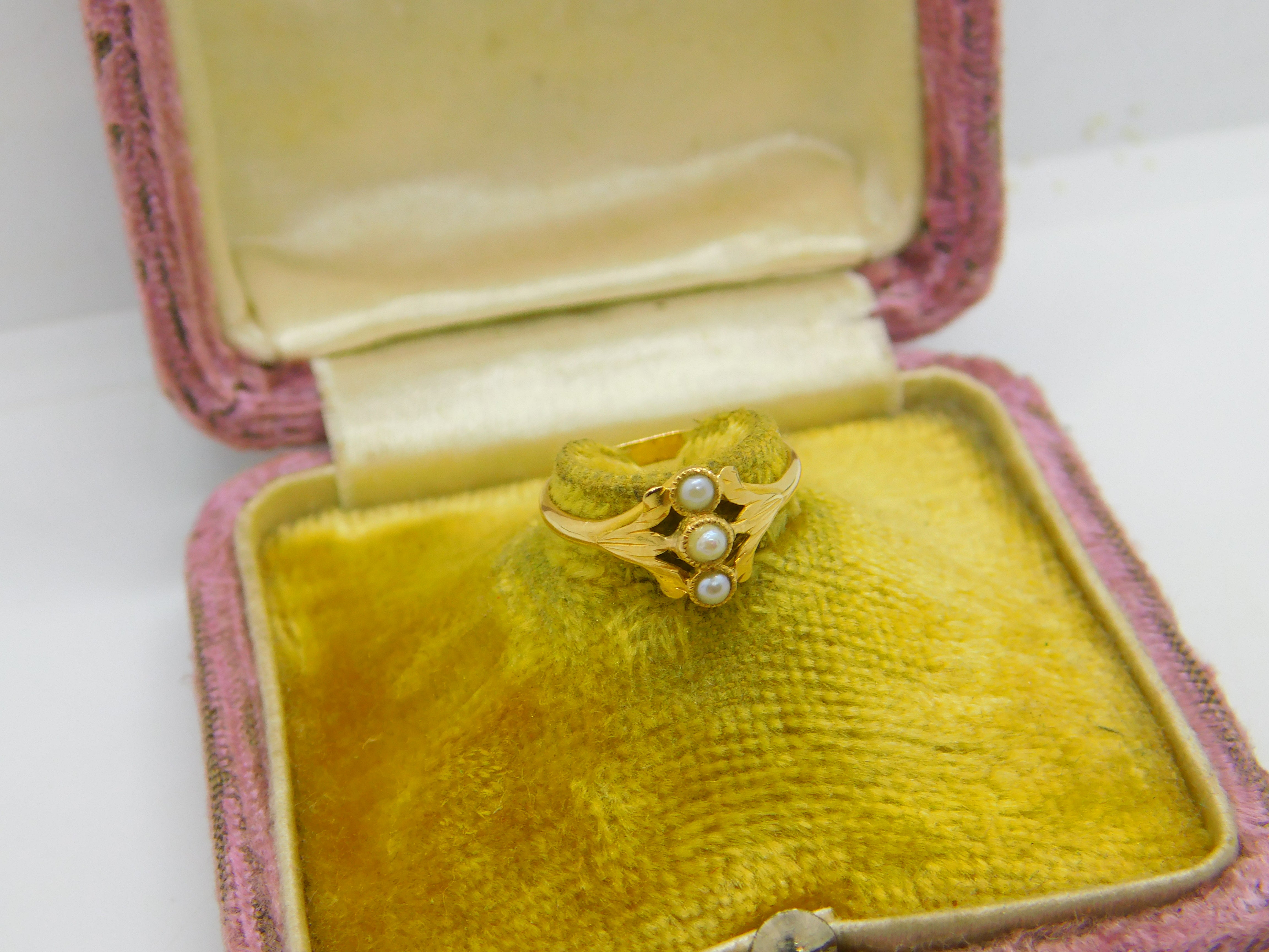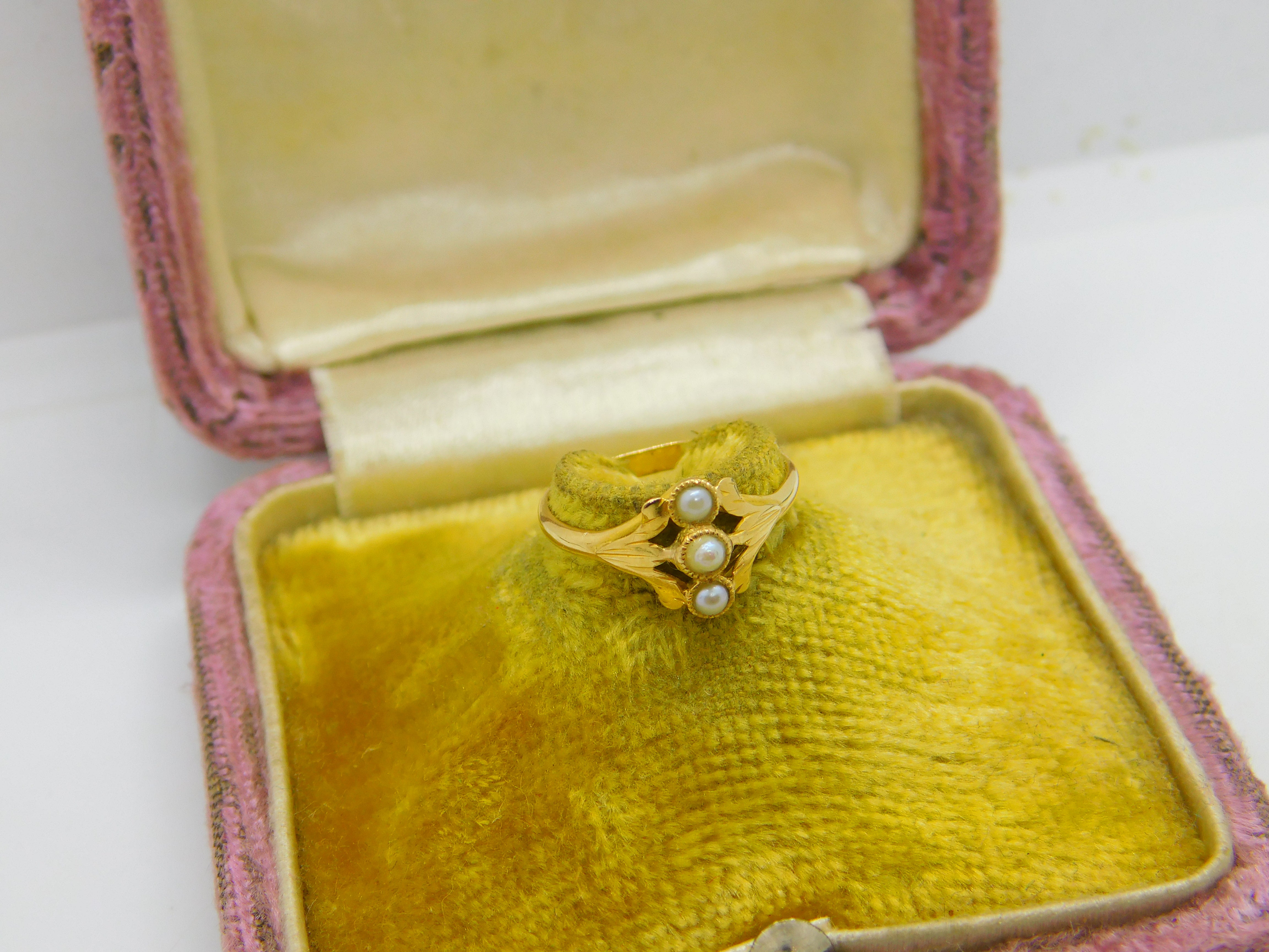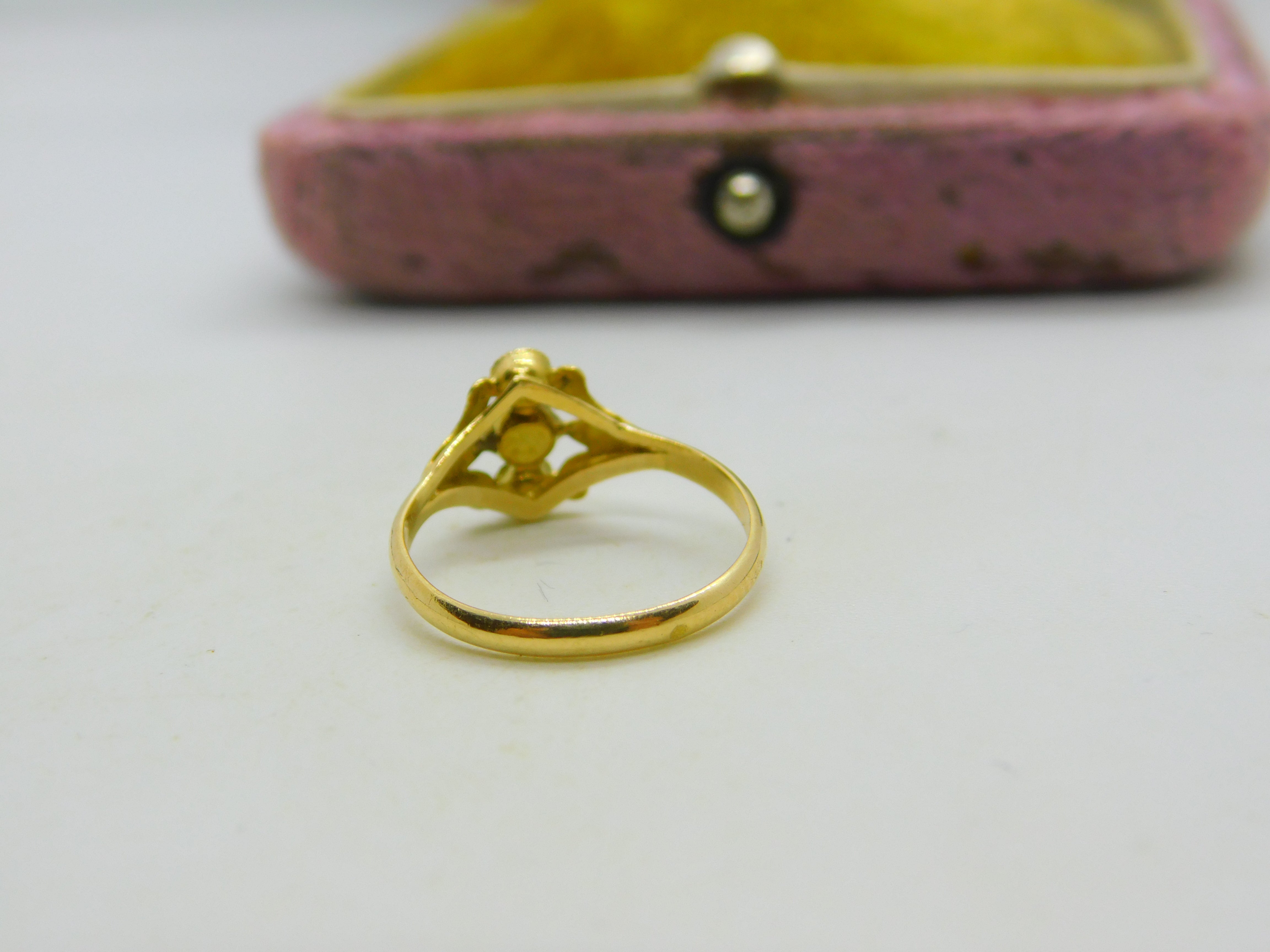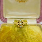 Victorian French 18ct Yellow Gold & Pearl Set Small Dress Ring Antique c1840