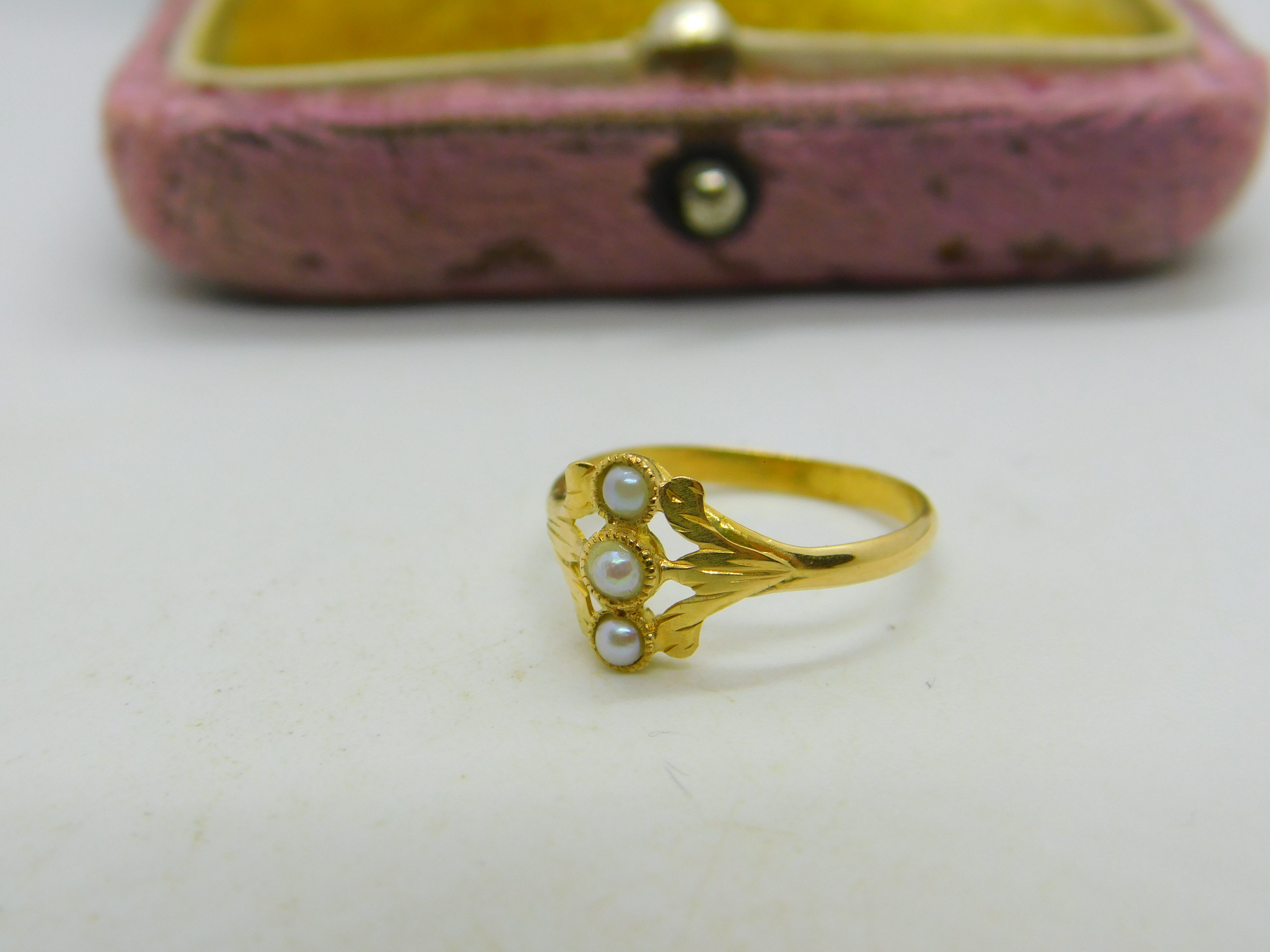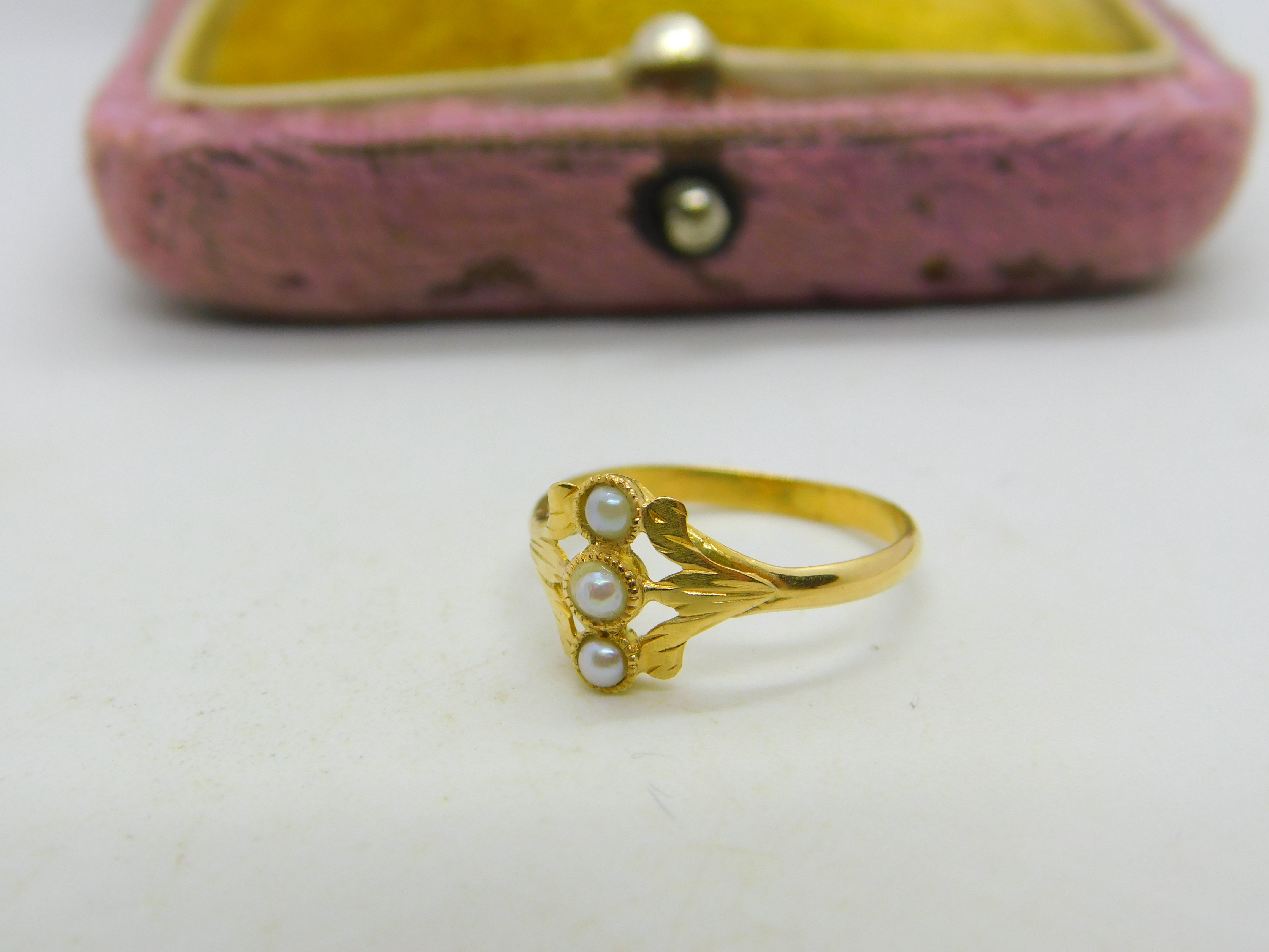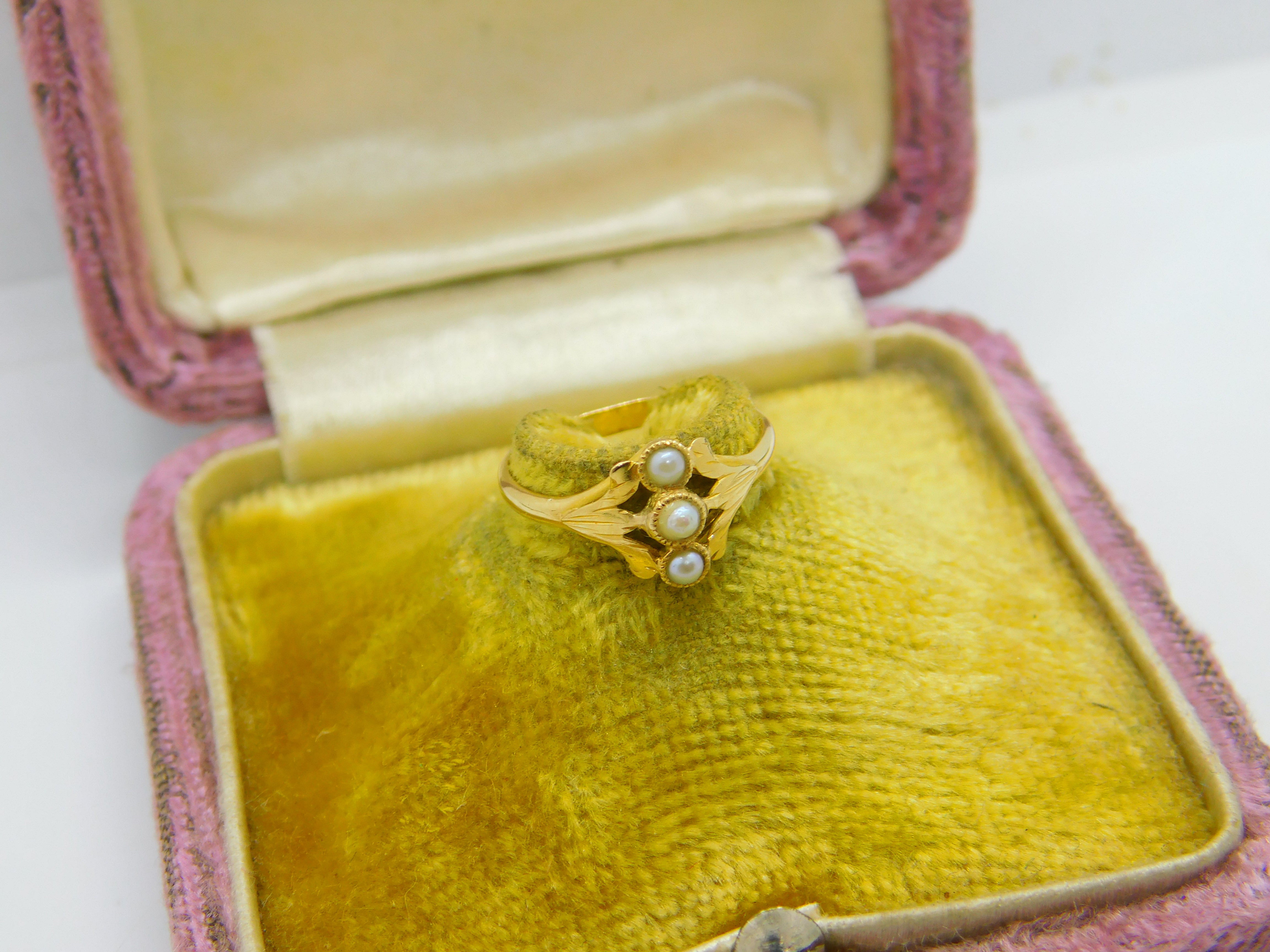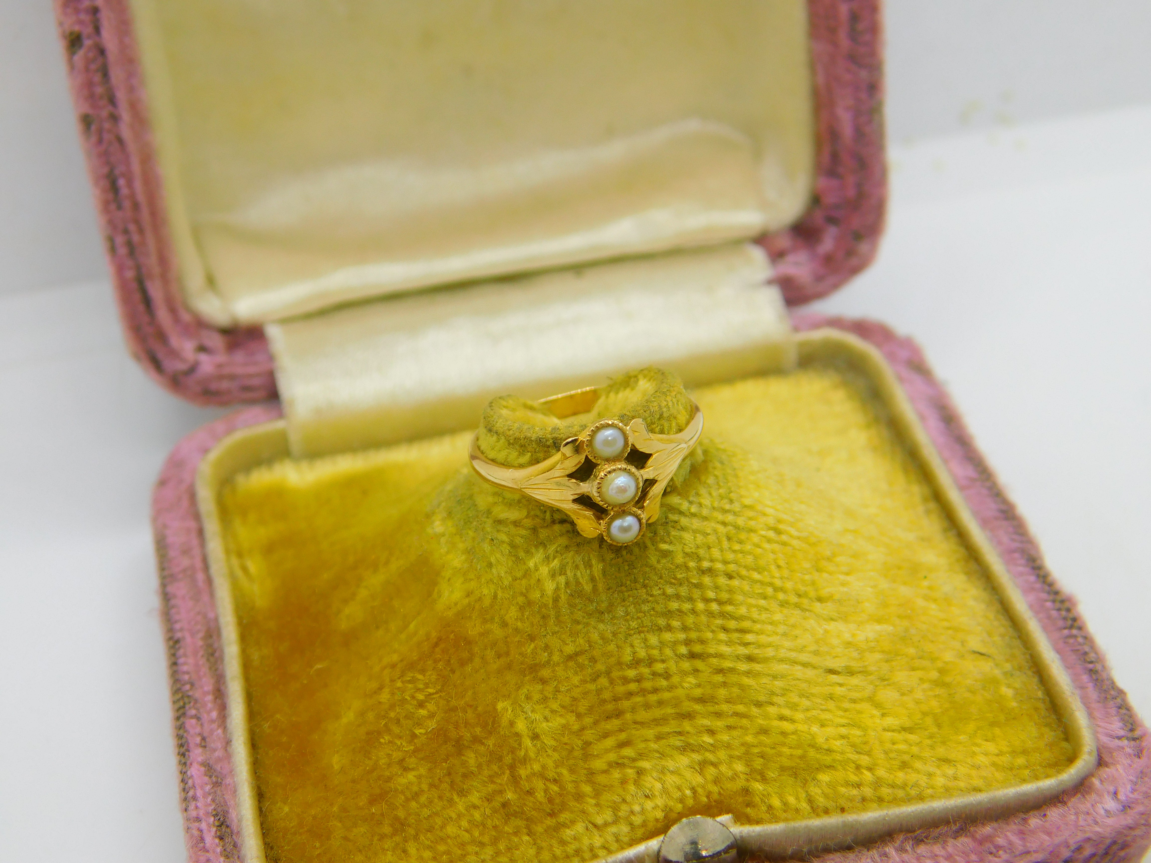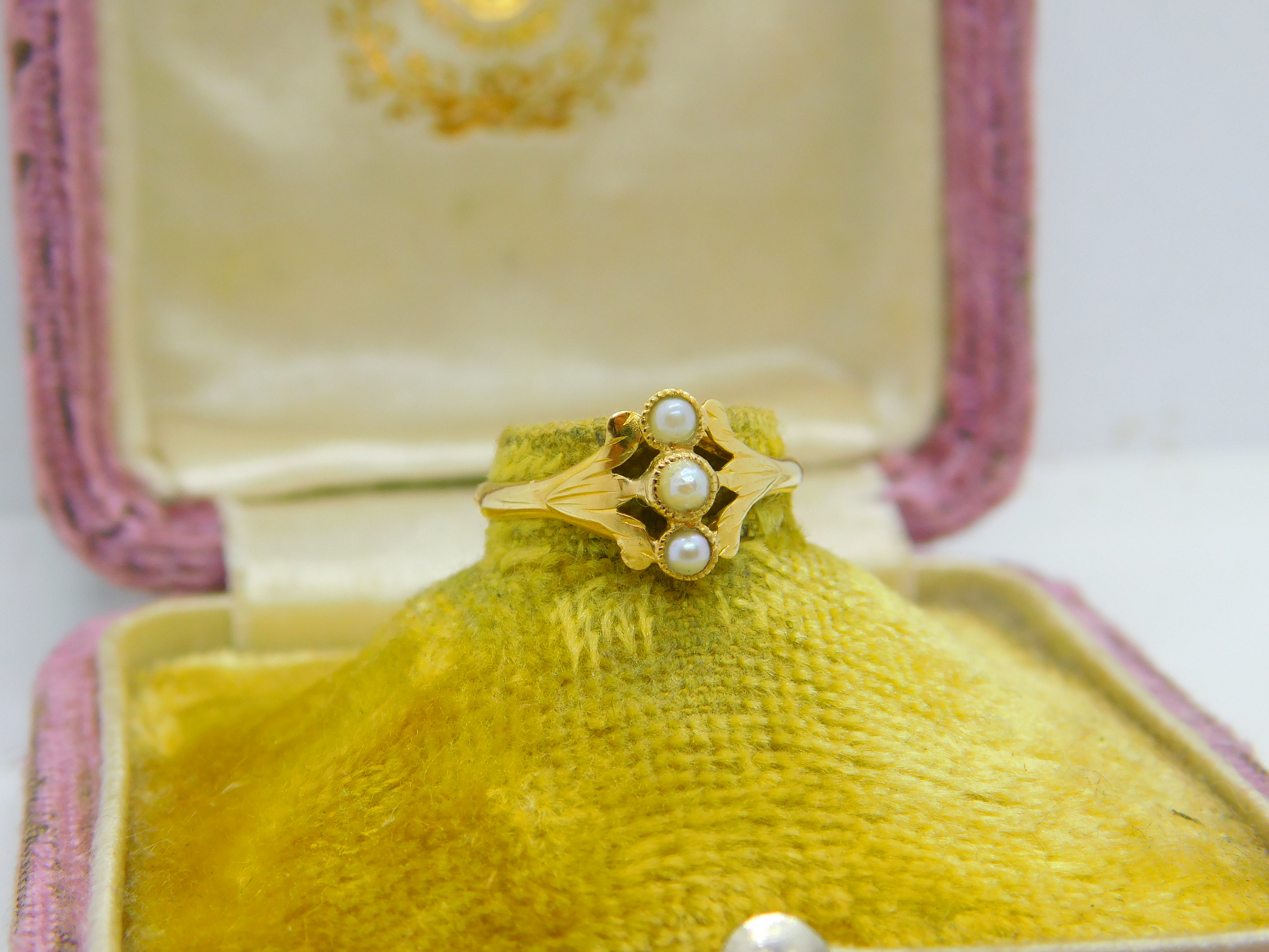 Victorian French 18ct Yellow Gold & Pearl Set Small Dress Ring Antique c1840