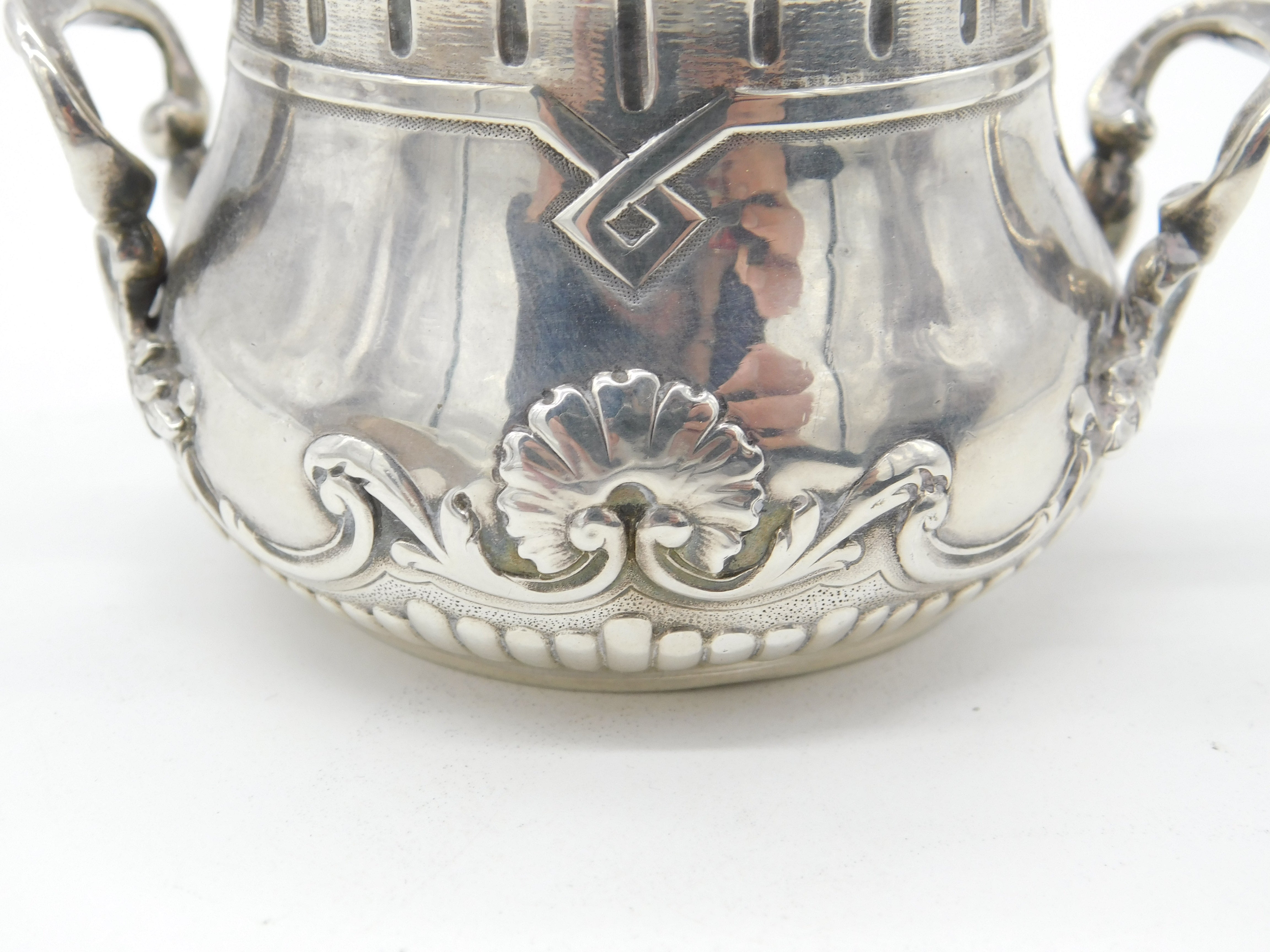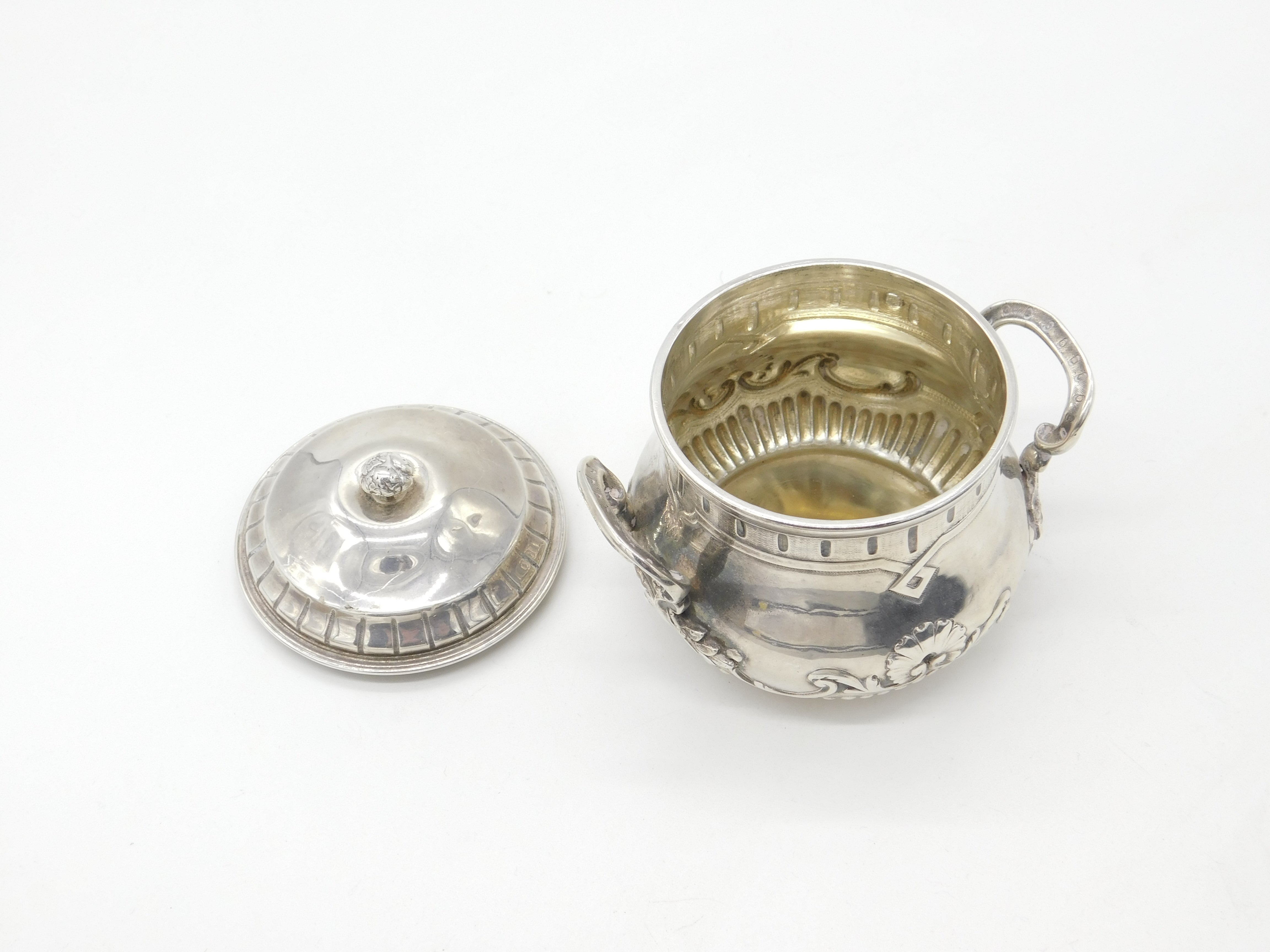 Victorian French 1st Standard .950 Silver Floral Lidded Sugar Bowl Antique c1860