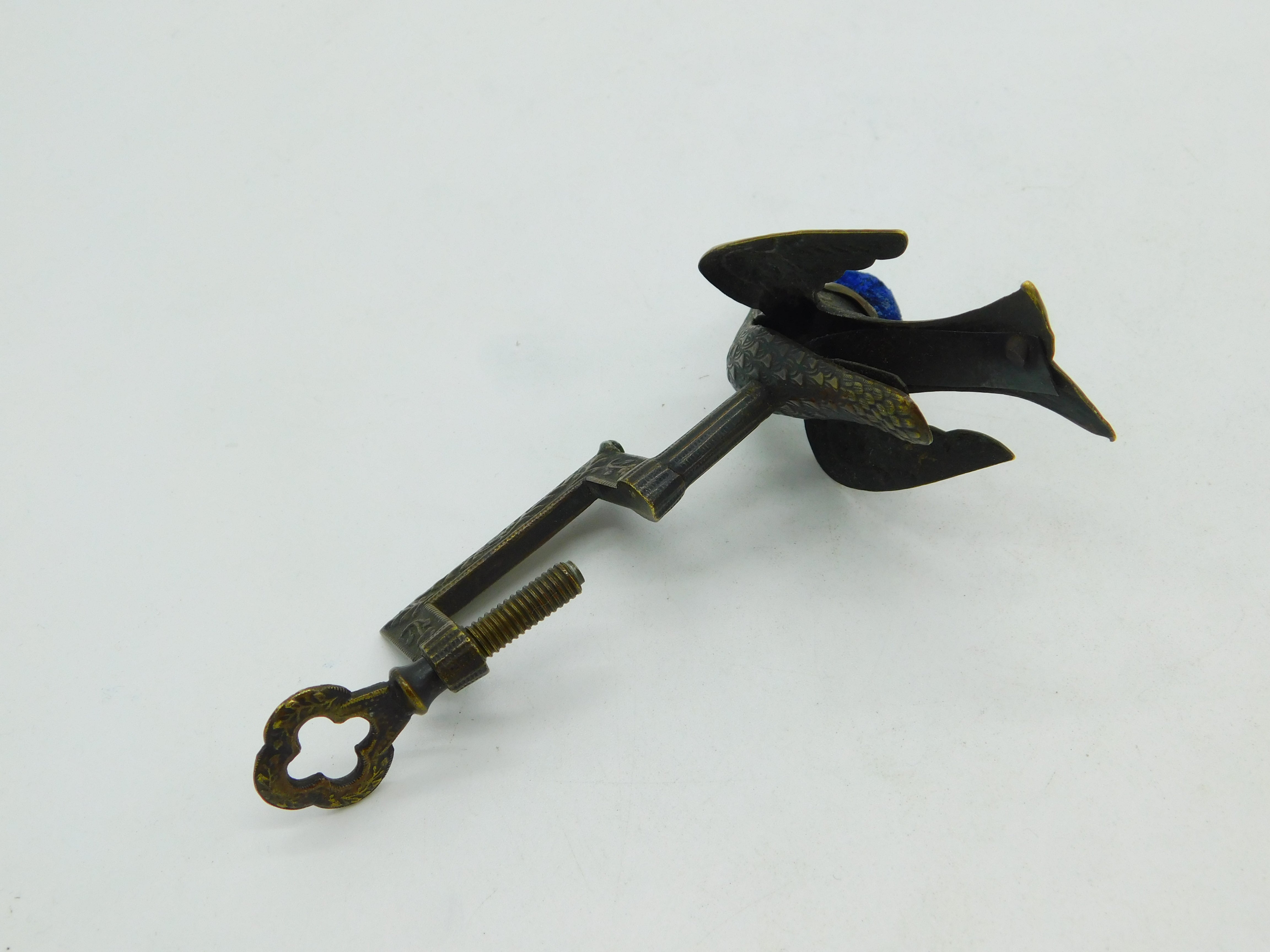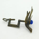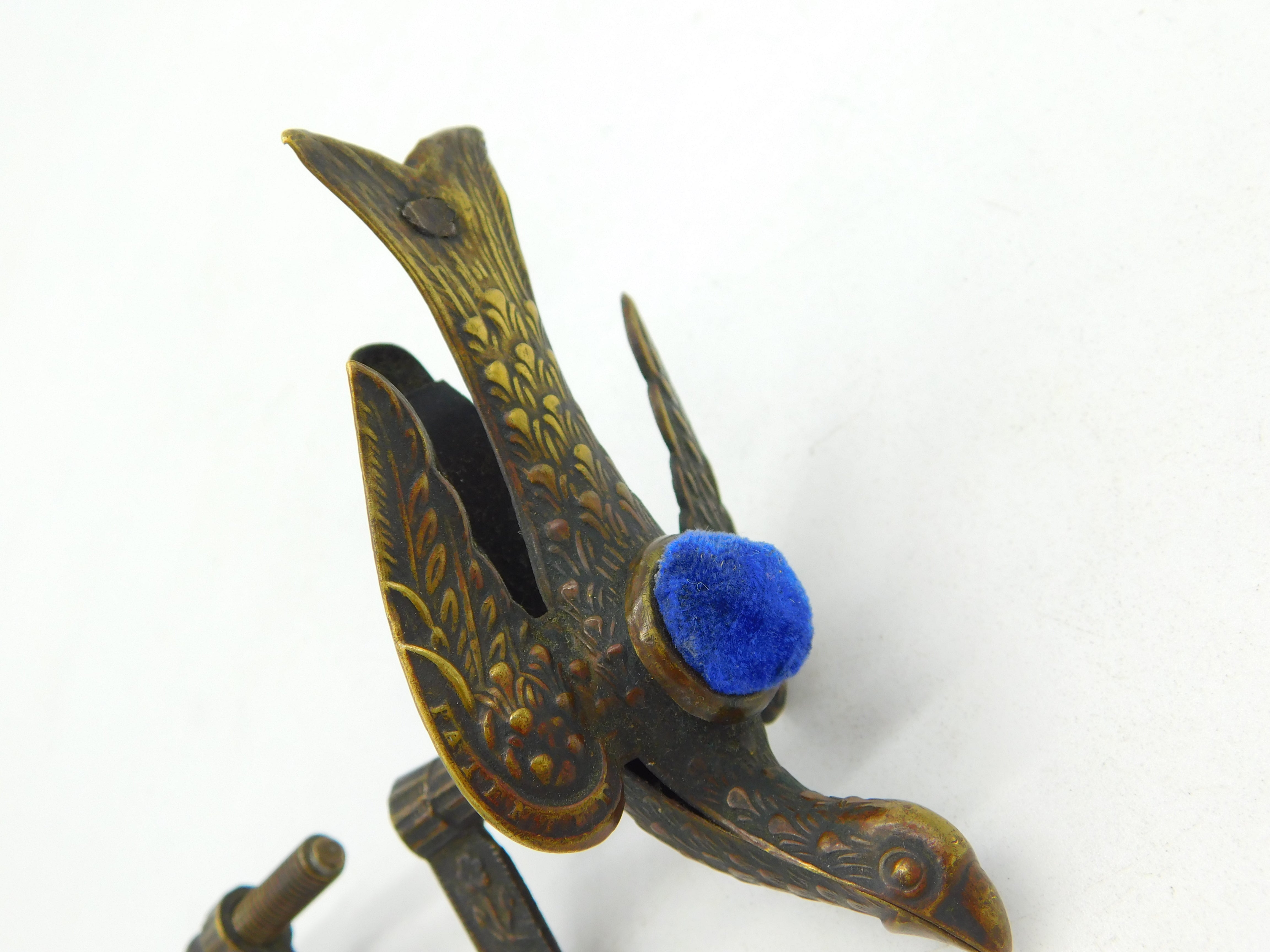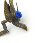Victorian French Brass Flying Dove Bird Pin Cushion Clasp Antique c1860