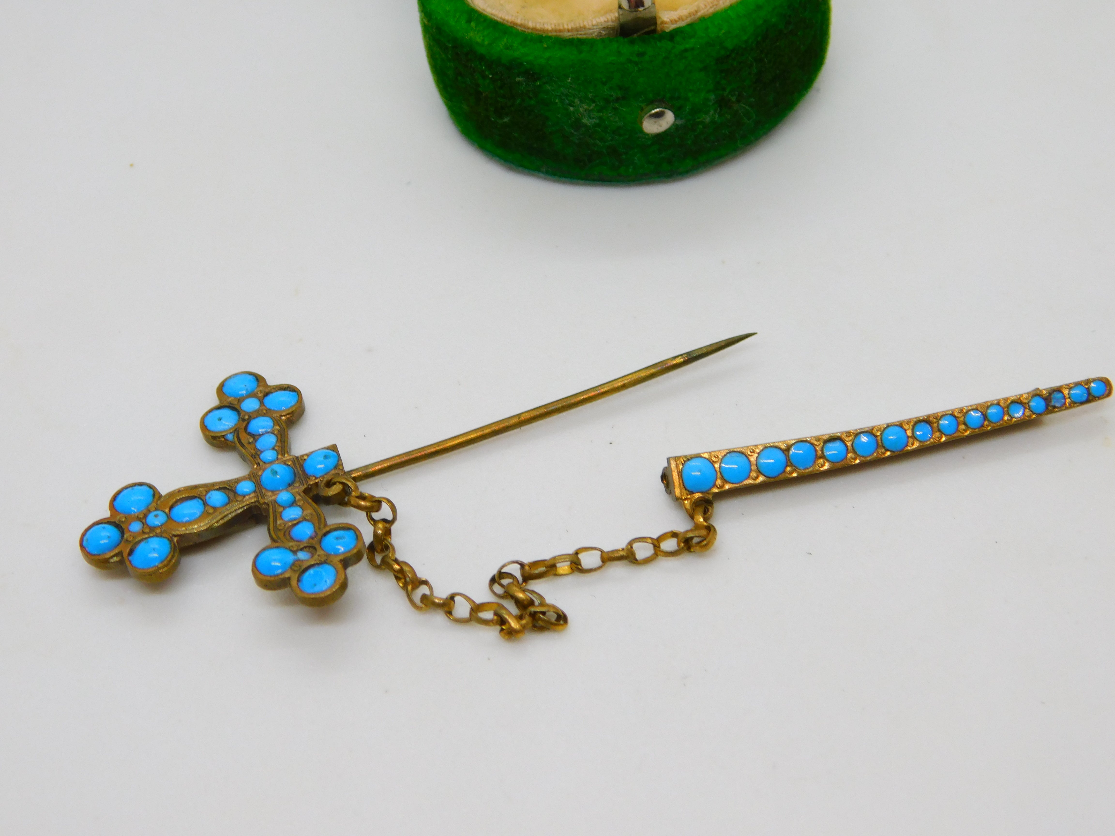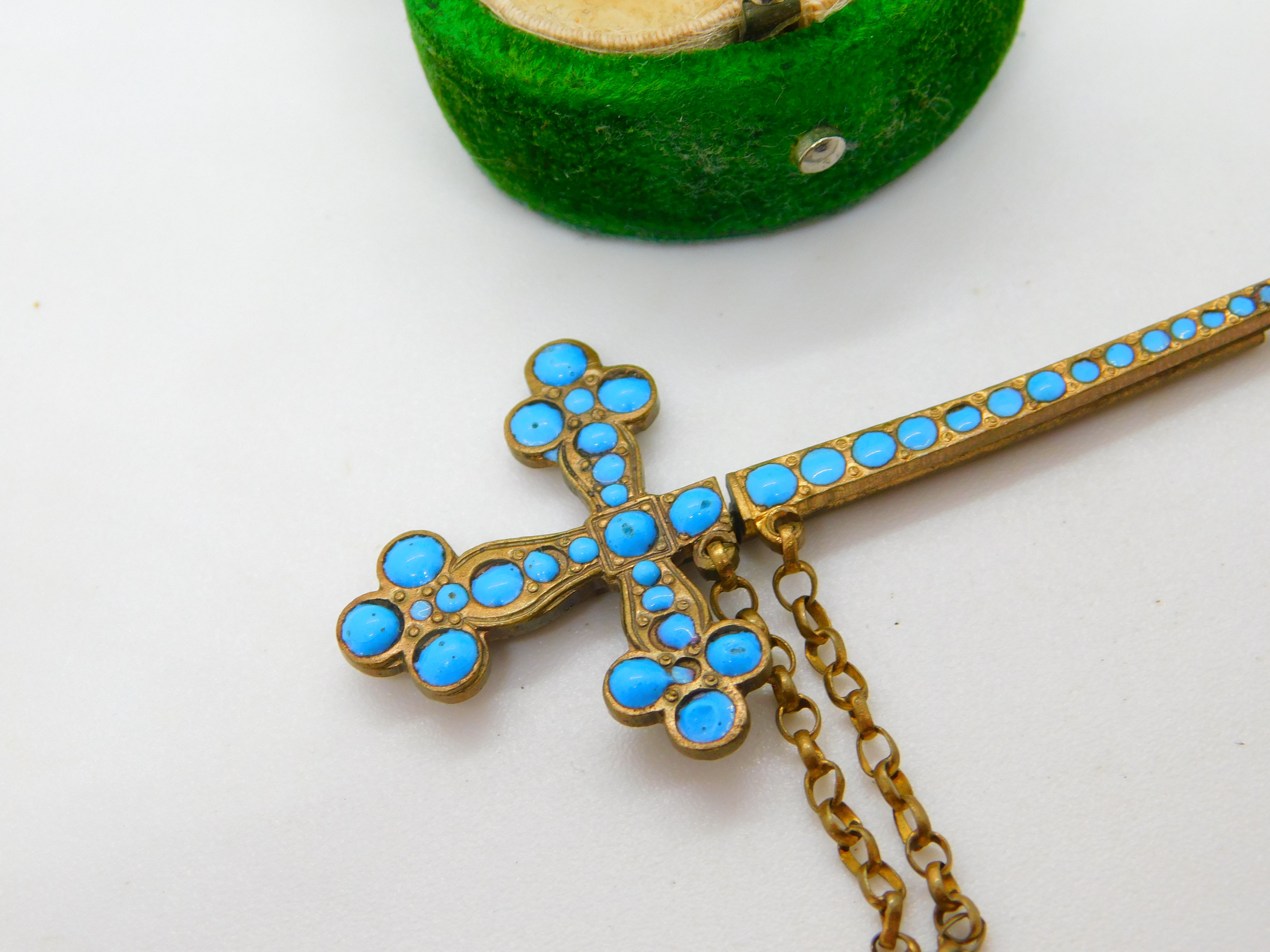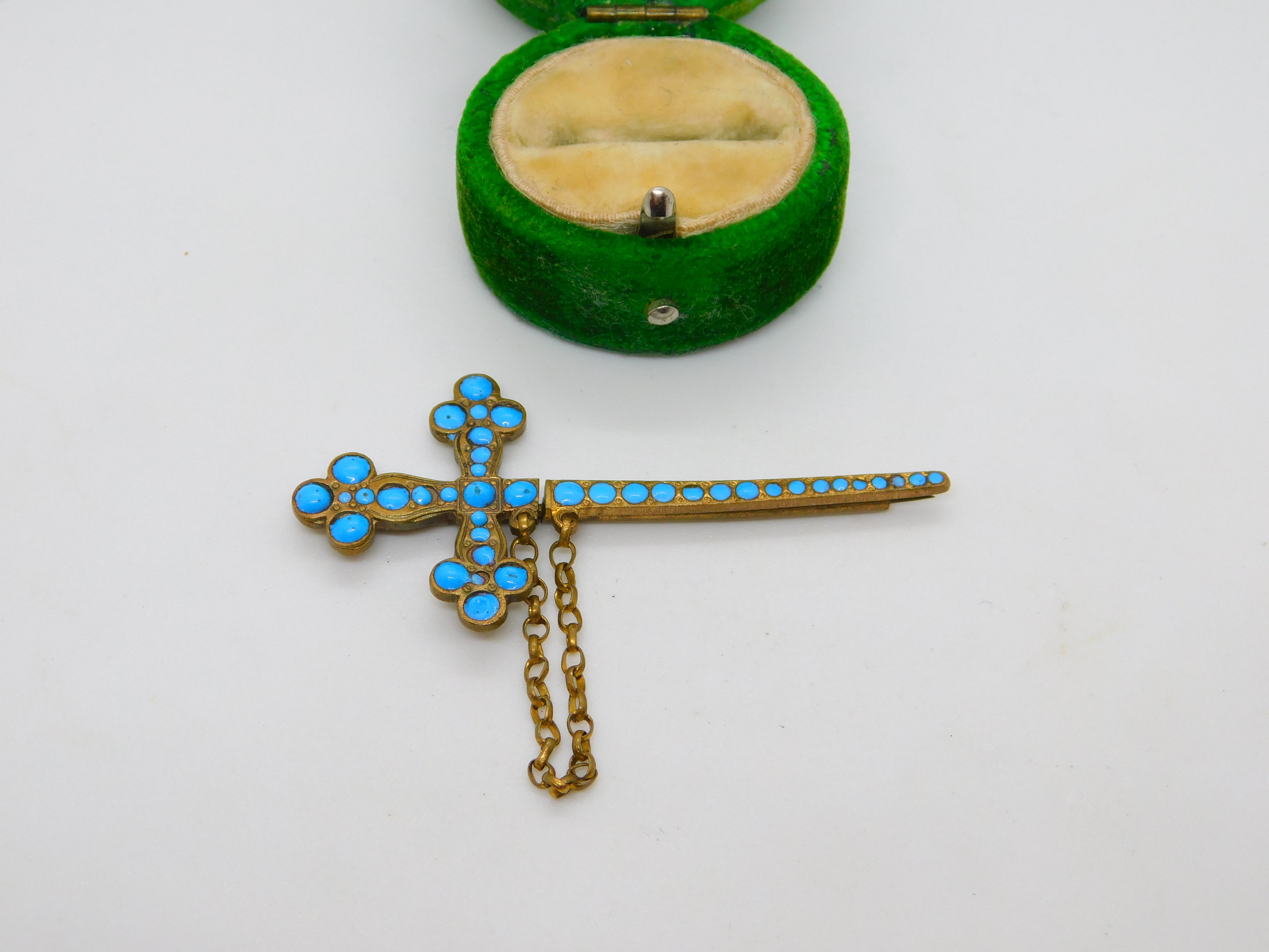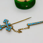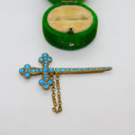 Victorian French Gilt Metal & Turquoise Set Sword in Scabbard Brooch Antique