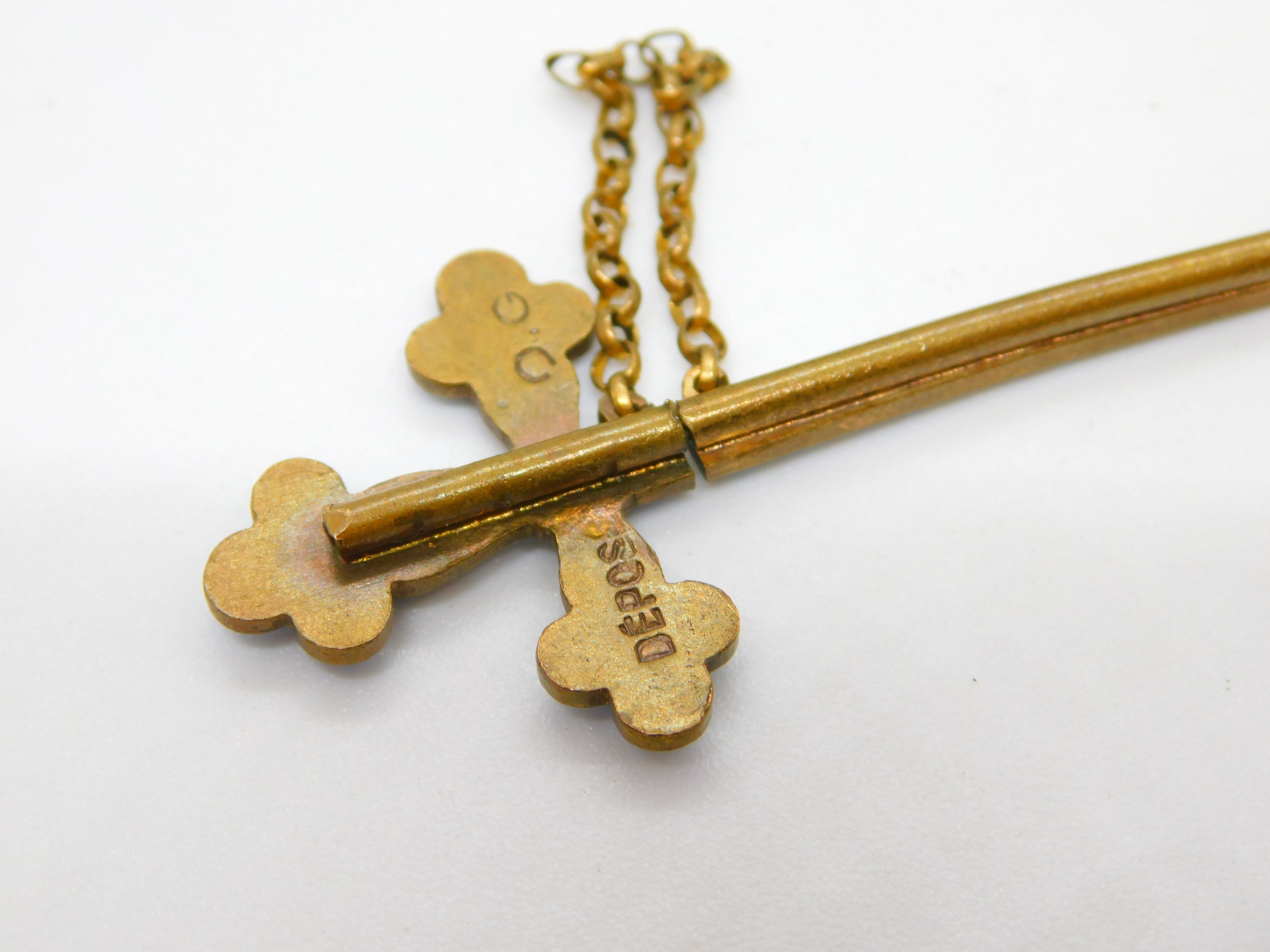 Details: A fantastic and wonderfully designed antique French Victorian gilt metal & turquoise set sword in the scabbard brooch marked Depose to the reverse c1860. This is a wonderful item that would make a perfect gift or addition to any collection. The BOX pictured is for PRESENTATION ONLY and is NOT included in the listings but used to frame the pictures unless specifically stated otherwise.