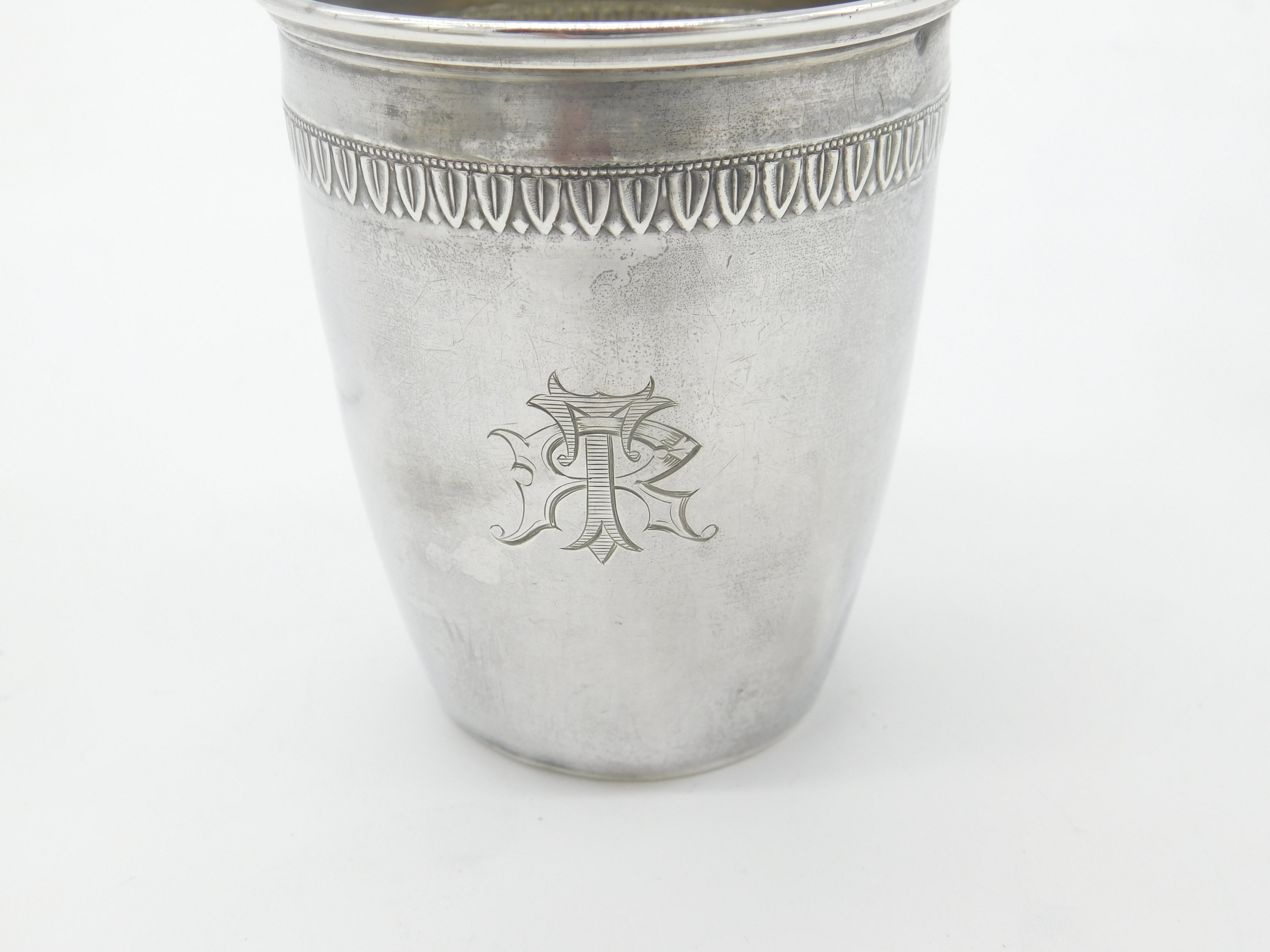 Victorian French Sterling Silver Monogram Drinking Beaker Antique c1880