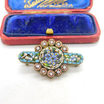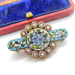 Victorian Gilt Metal Micro-Mosaic Floral Brooch Antique c1860 Italian