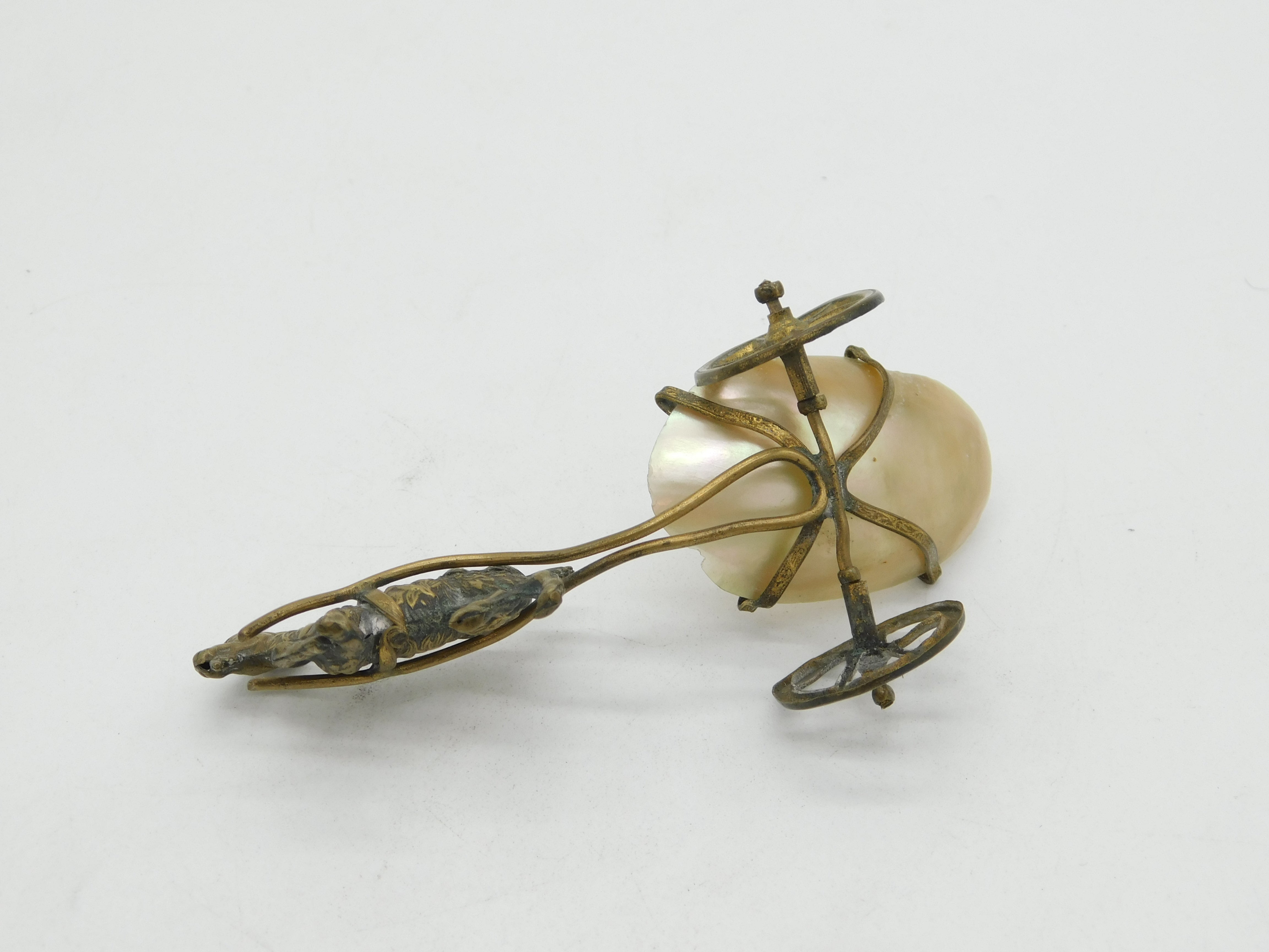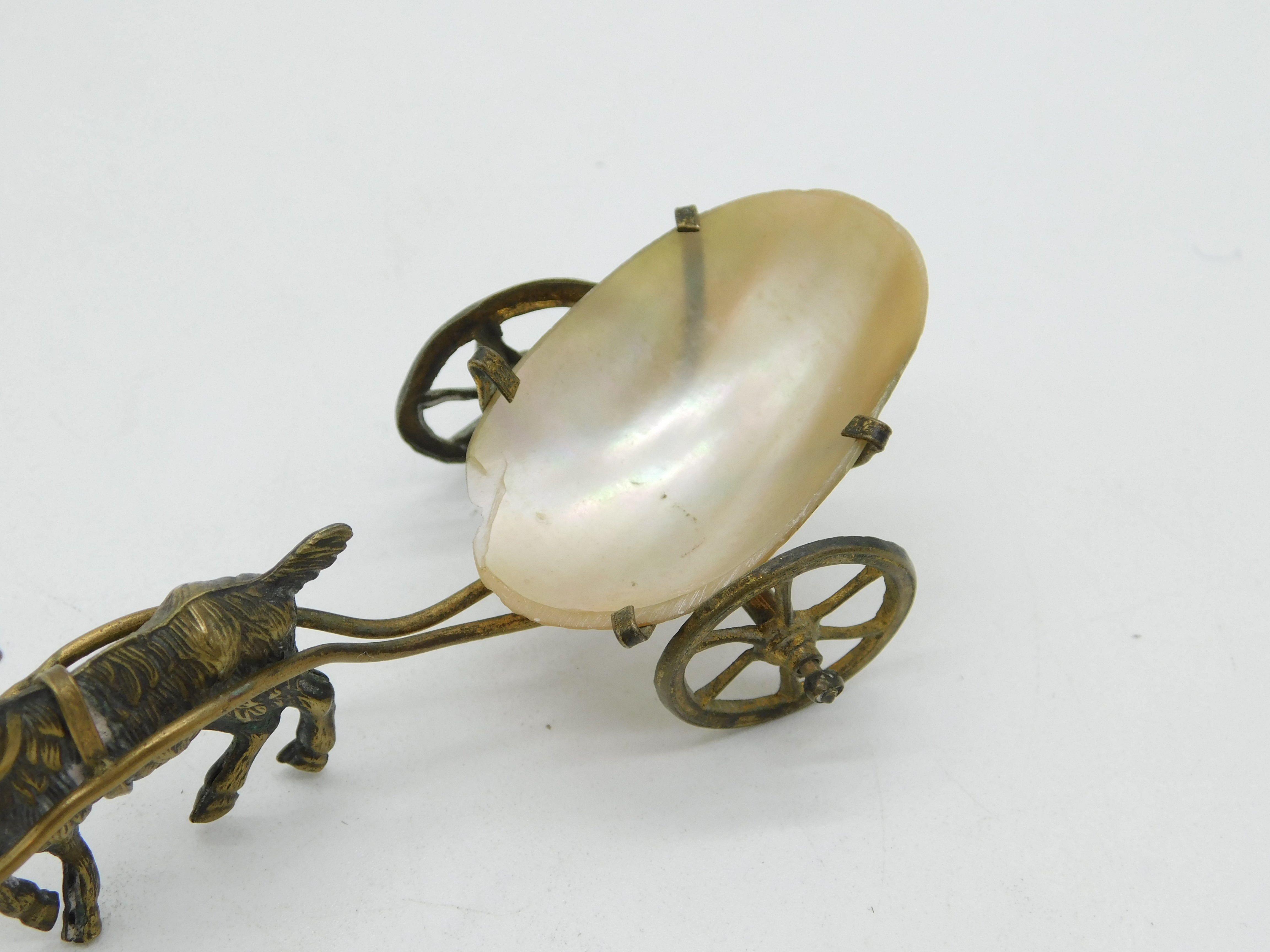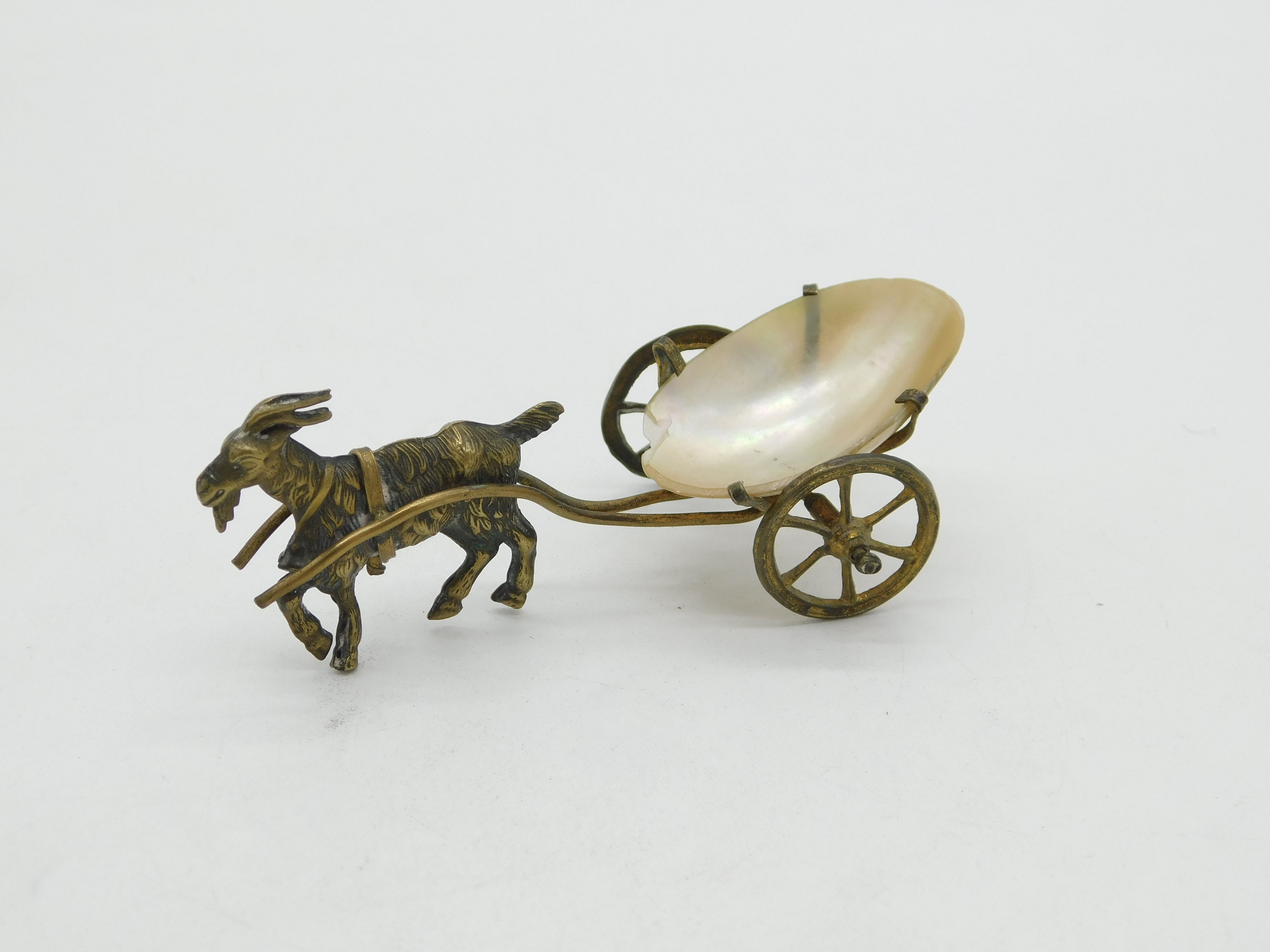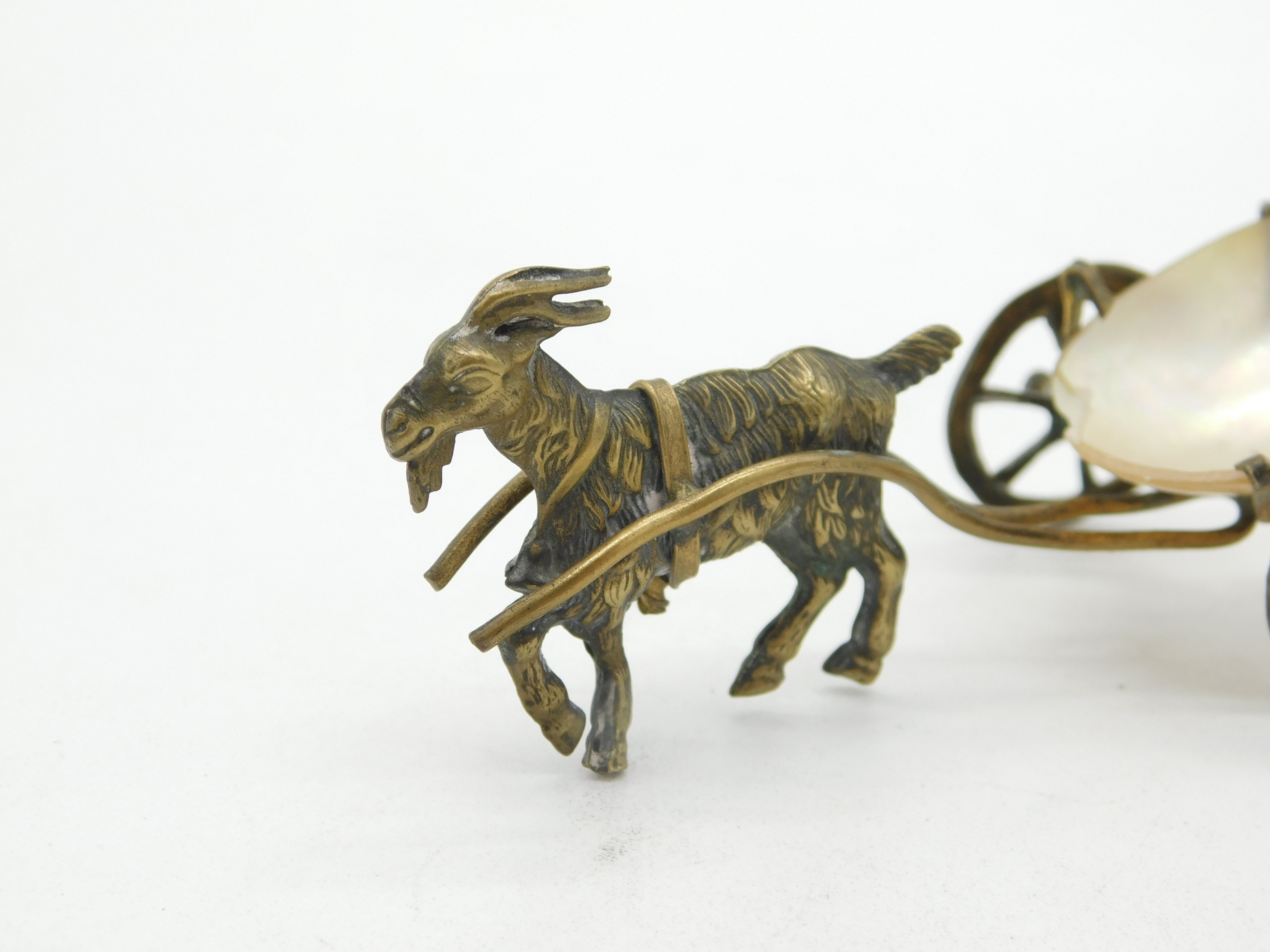 Victorian Gilt Metal & Pearl Shell Novelty Goat Cart Thimble Holder Antique 1880