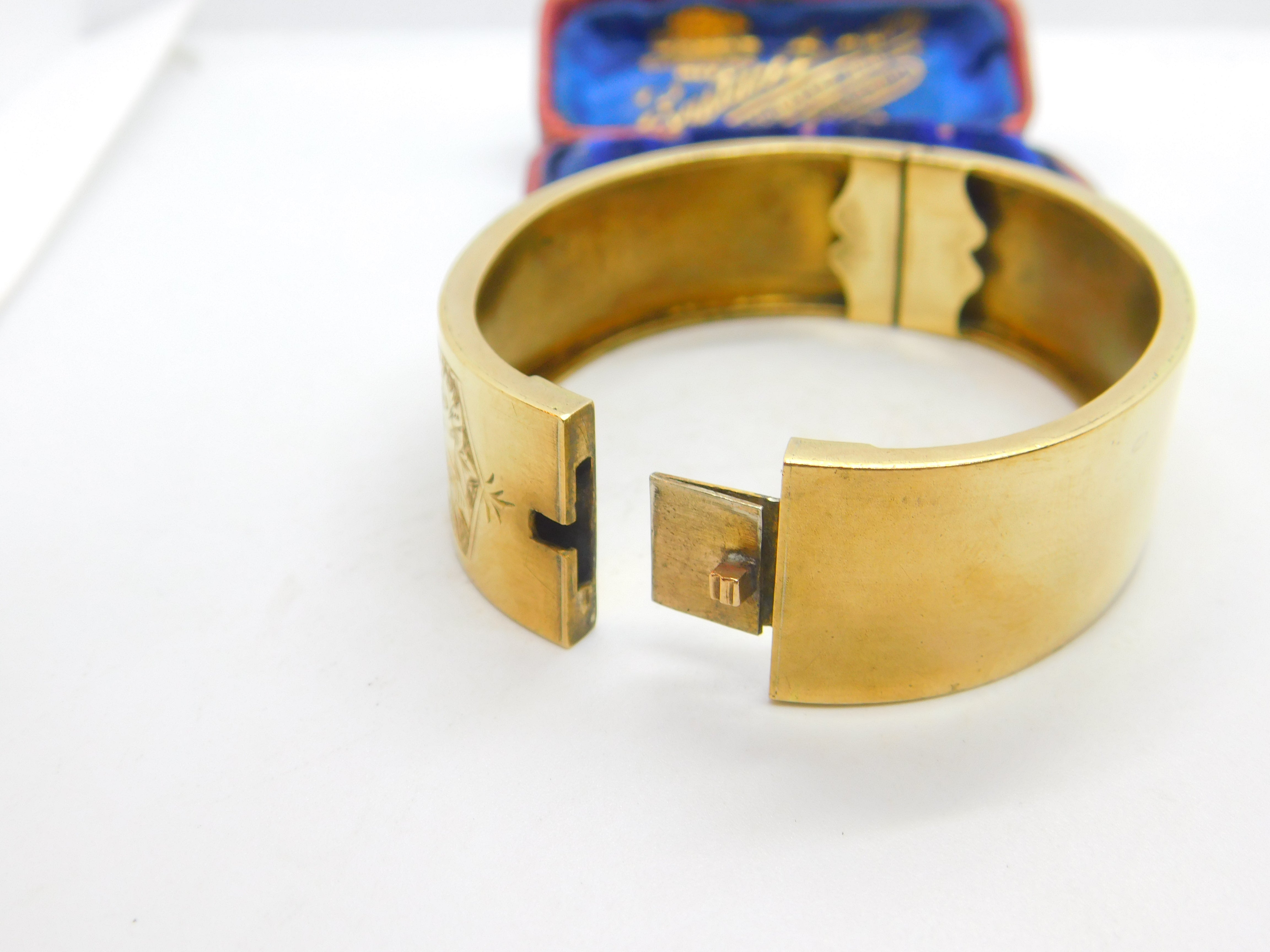Victorian Gold Plated Aesthetic Movement Floral Cuff Bangle Antique c1880