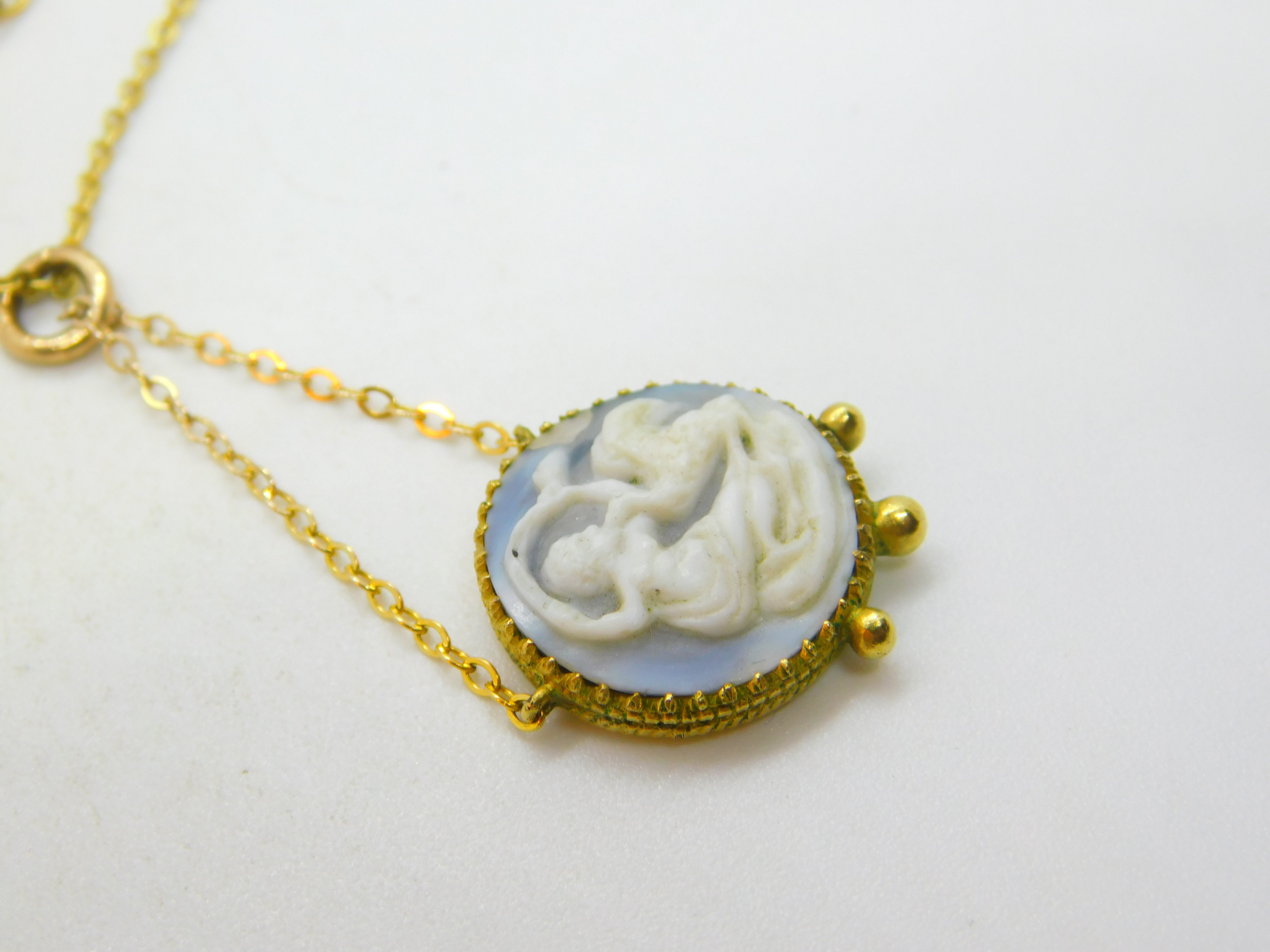 Victorian Gold Plated Carved Classical Cameo Pendant Necklace Antique c1850