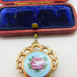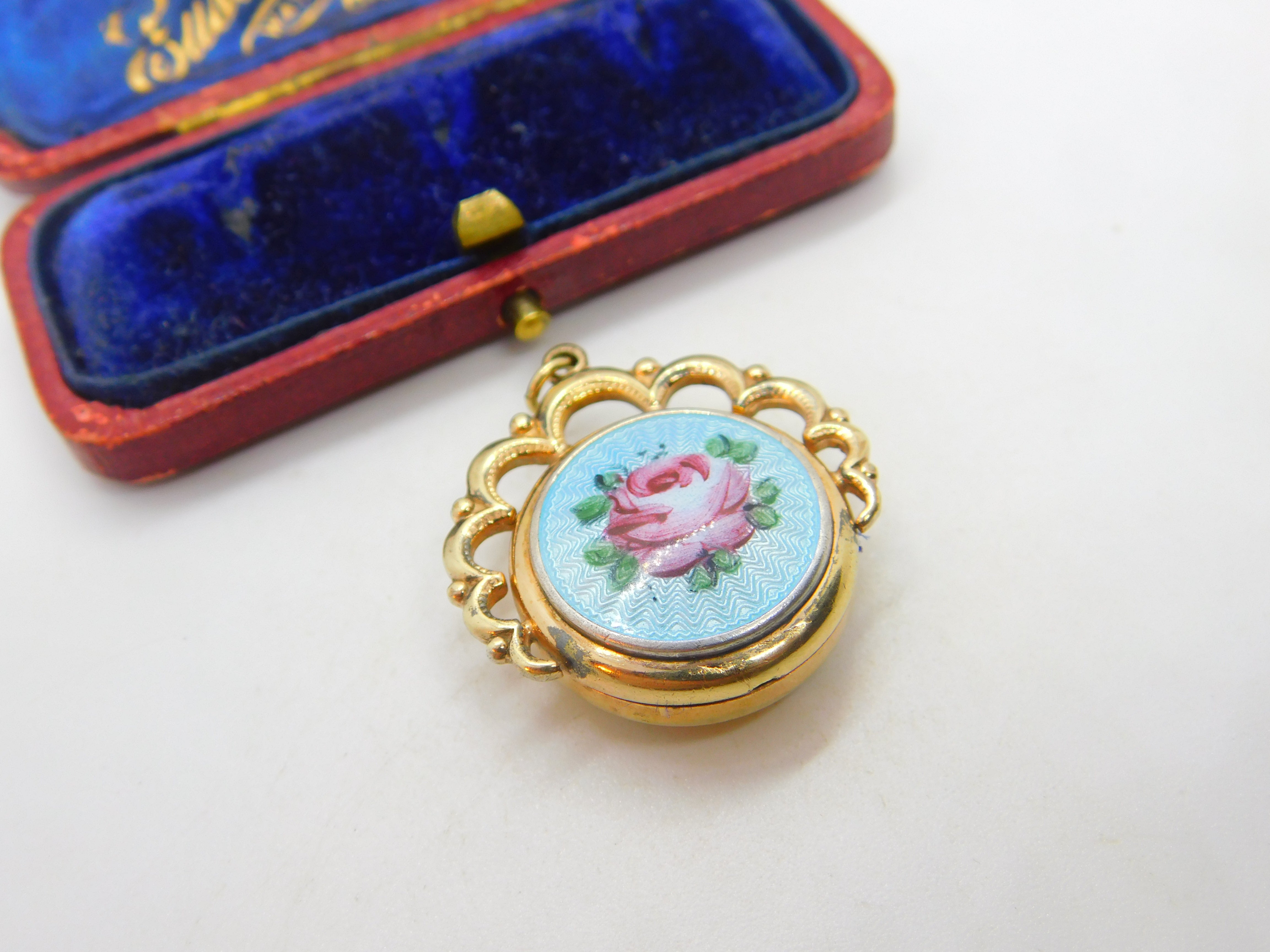 Victorian Gold Plated Floral Guilloche Enamel Sweetheart Fob Locket Pendant 1900