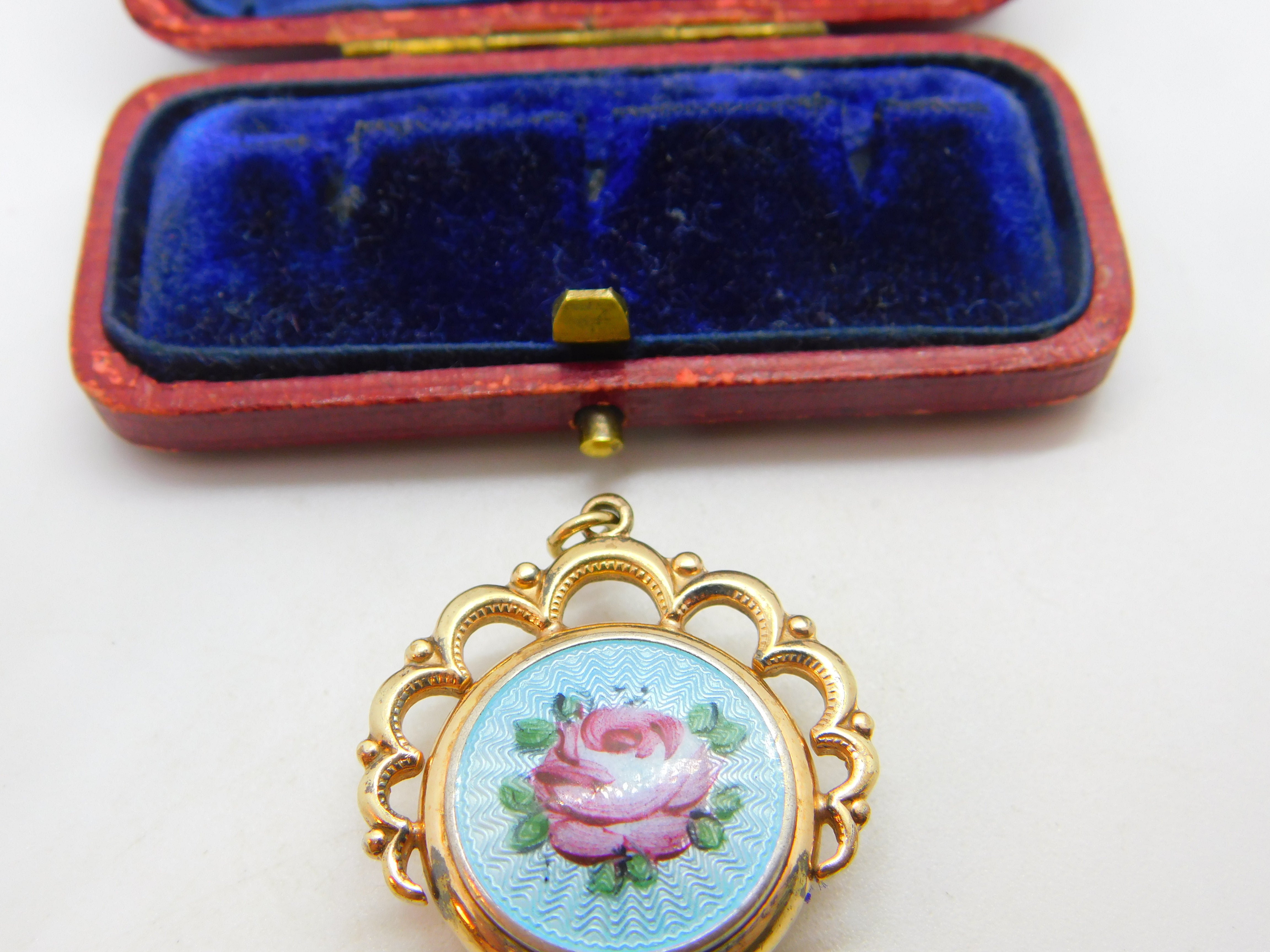 Details: A fantastic and wonderfully designed antique Victorian gold plated floral guilloche enamel sweetheart fob pendant with locket to the reverse c1900. This is a wonderful item that would make a perfect gift or addition to any collection. The BOX pictured is for PRESENTATION ONLY and is NOT included in the listings but used to frame the pictures unless specifically stated otherwise.