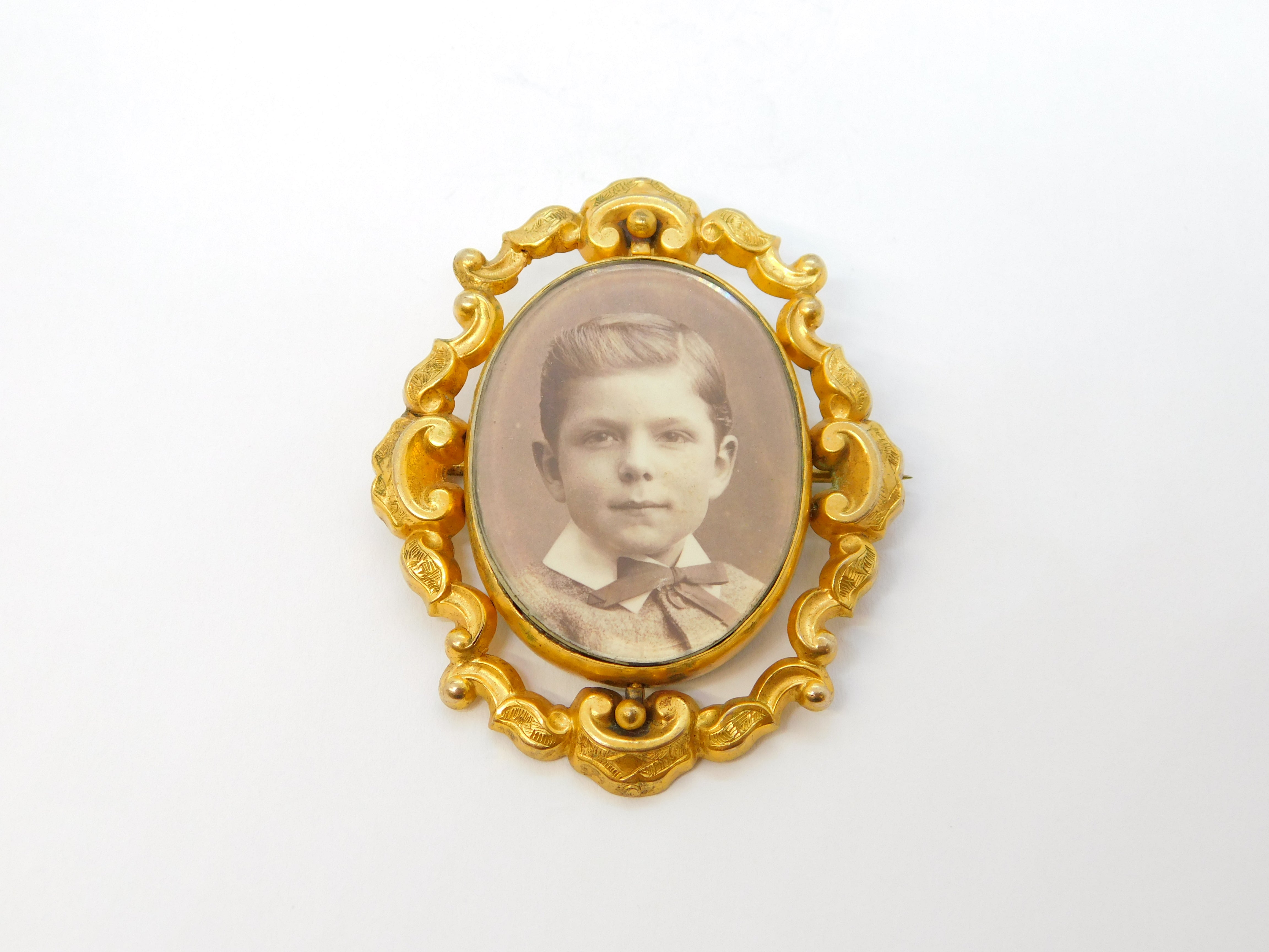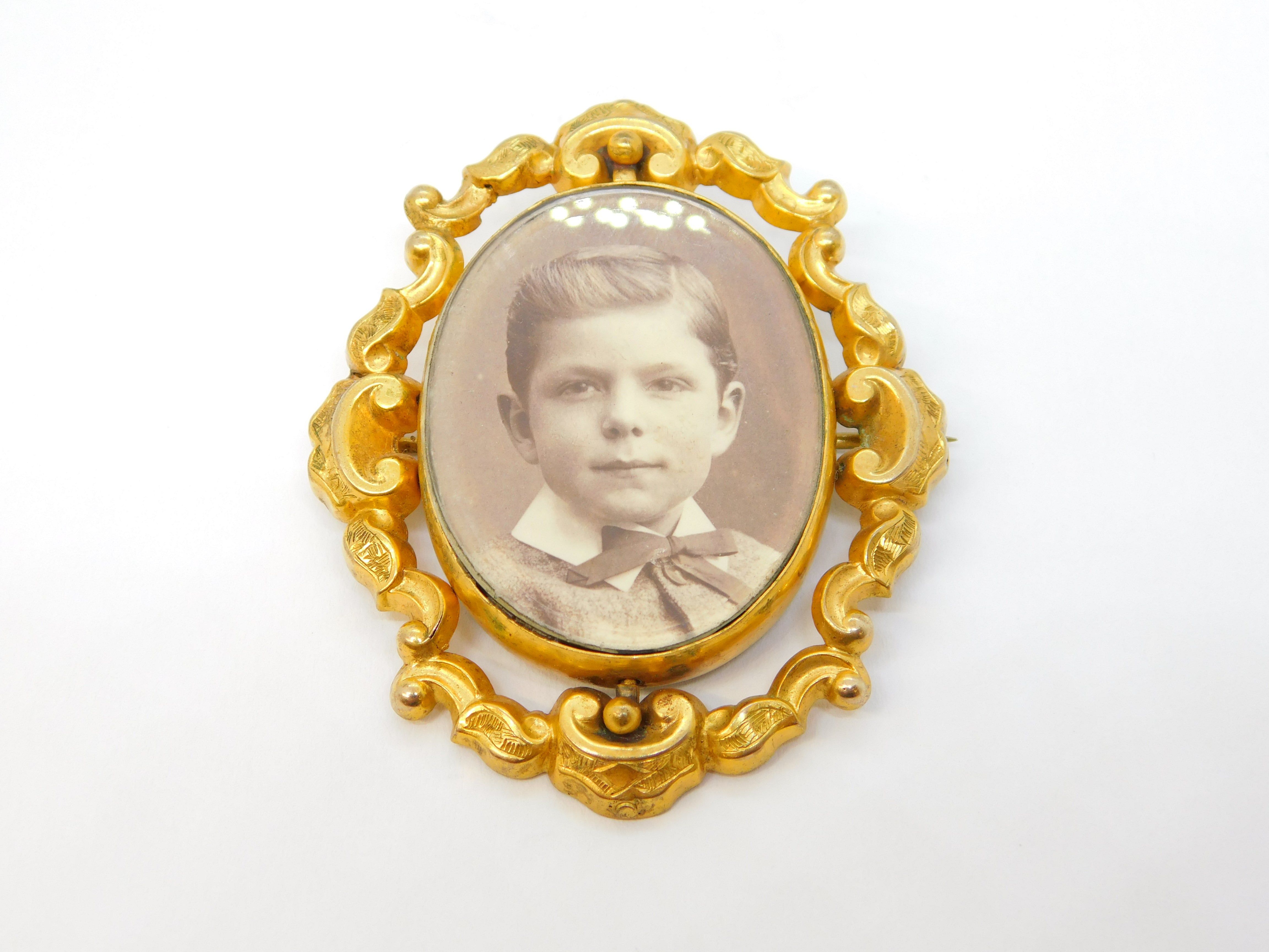 Details: A fantastic and wonderfully designed antique Victorian gold plated floral decorated portrait brooch pin with lovely detailing c1880, charming picture included. This is a wonderful item that would make a perfect gift or addition to any collection. We are more than happy to provide XRF reports for items upon request.