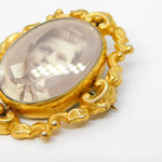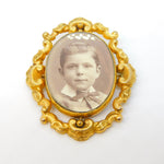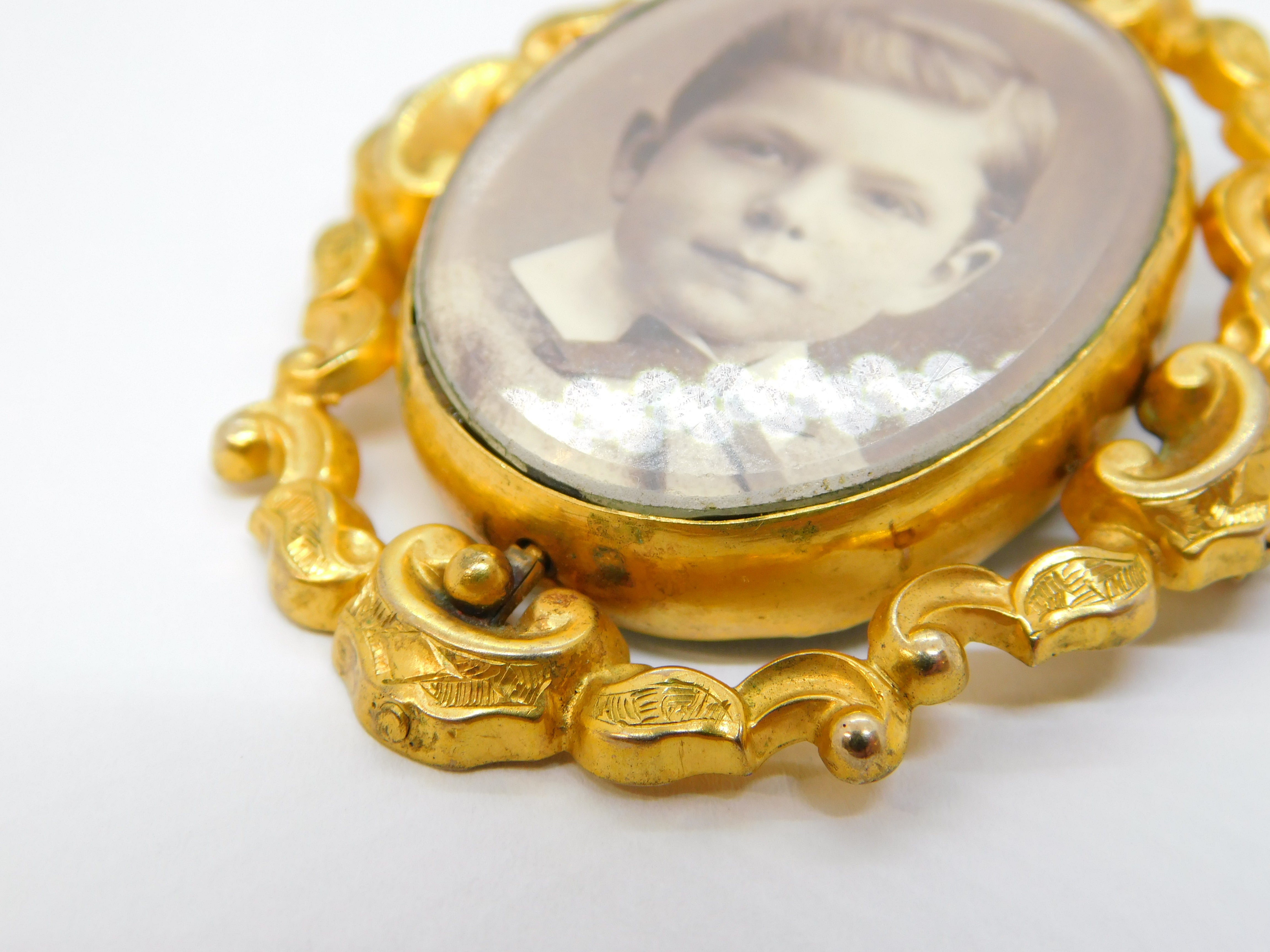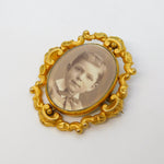 Victorian Gold Plated Floral Sweetheart Portrait Locket Brooch Antique c1880