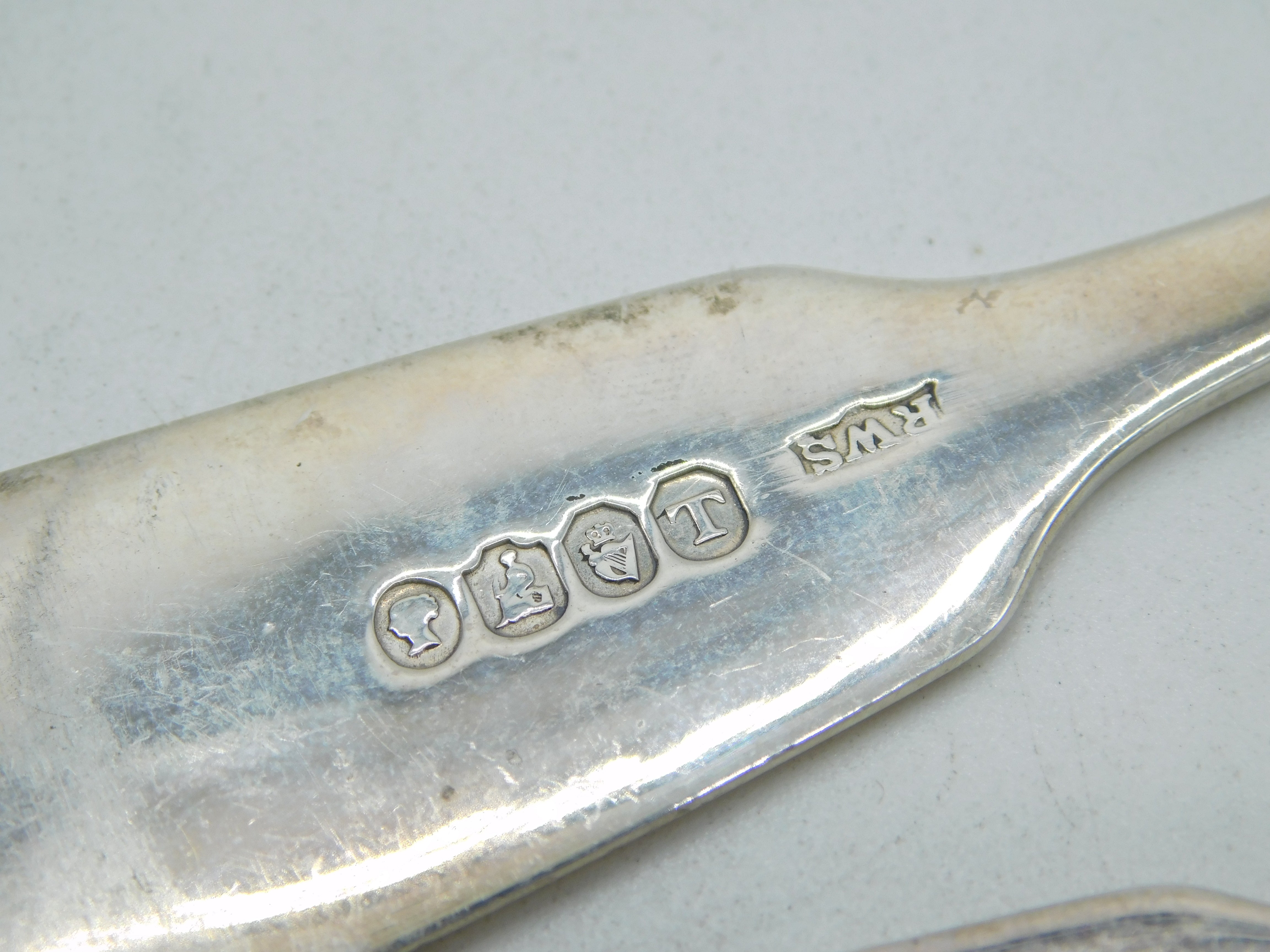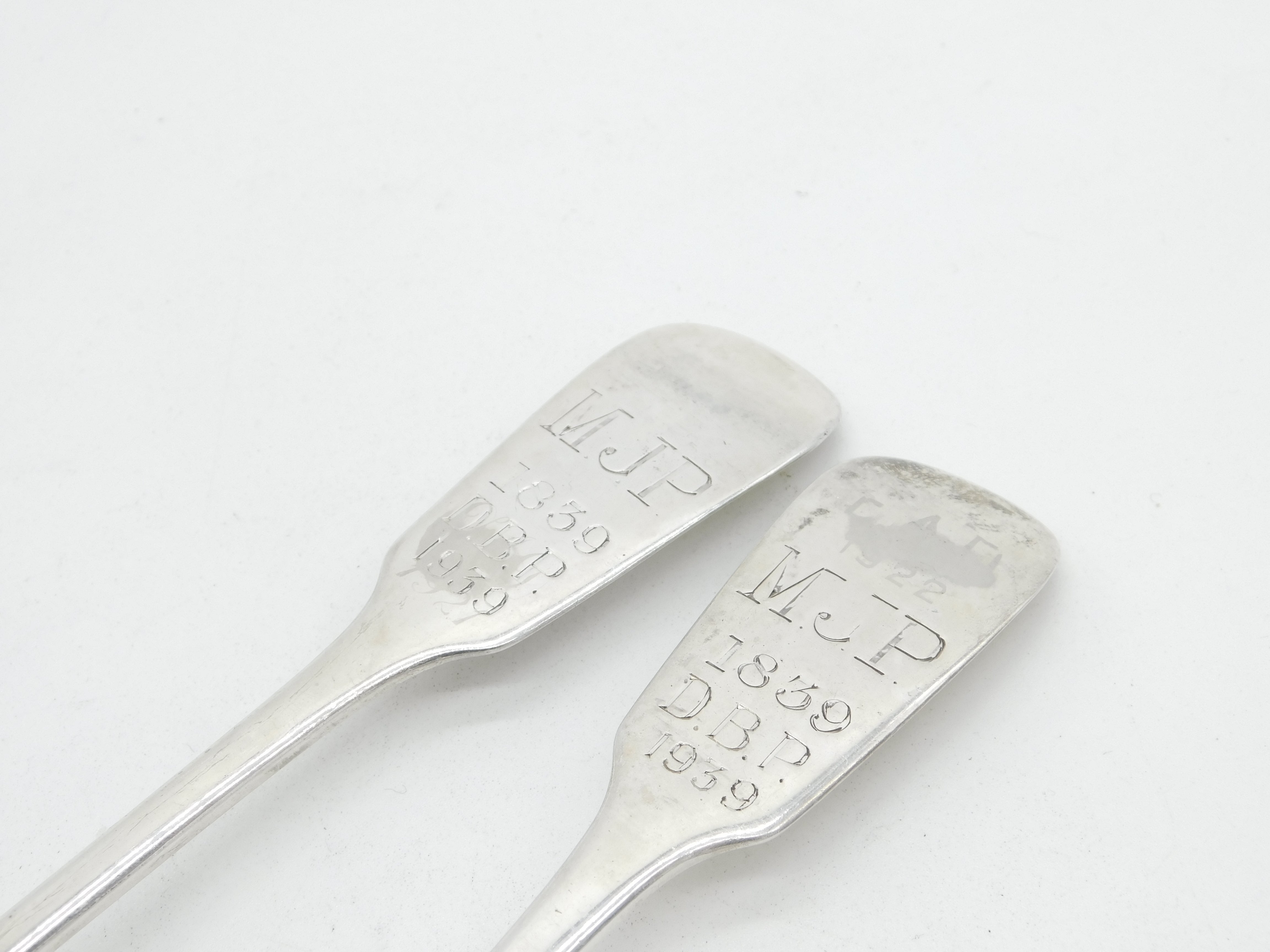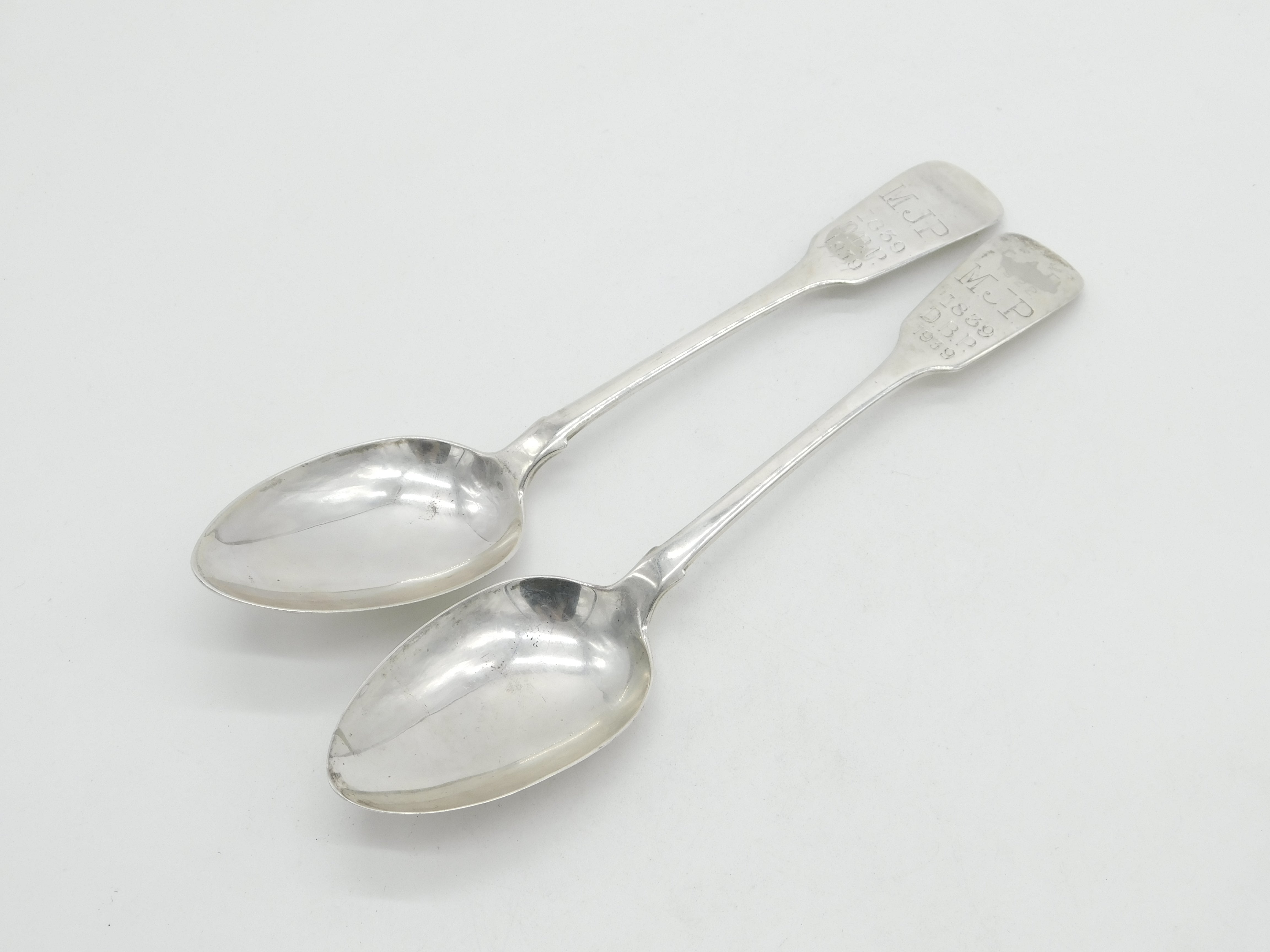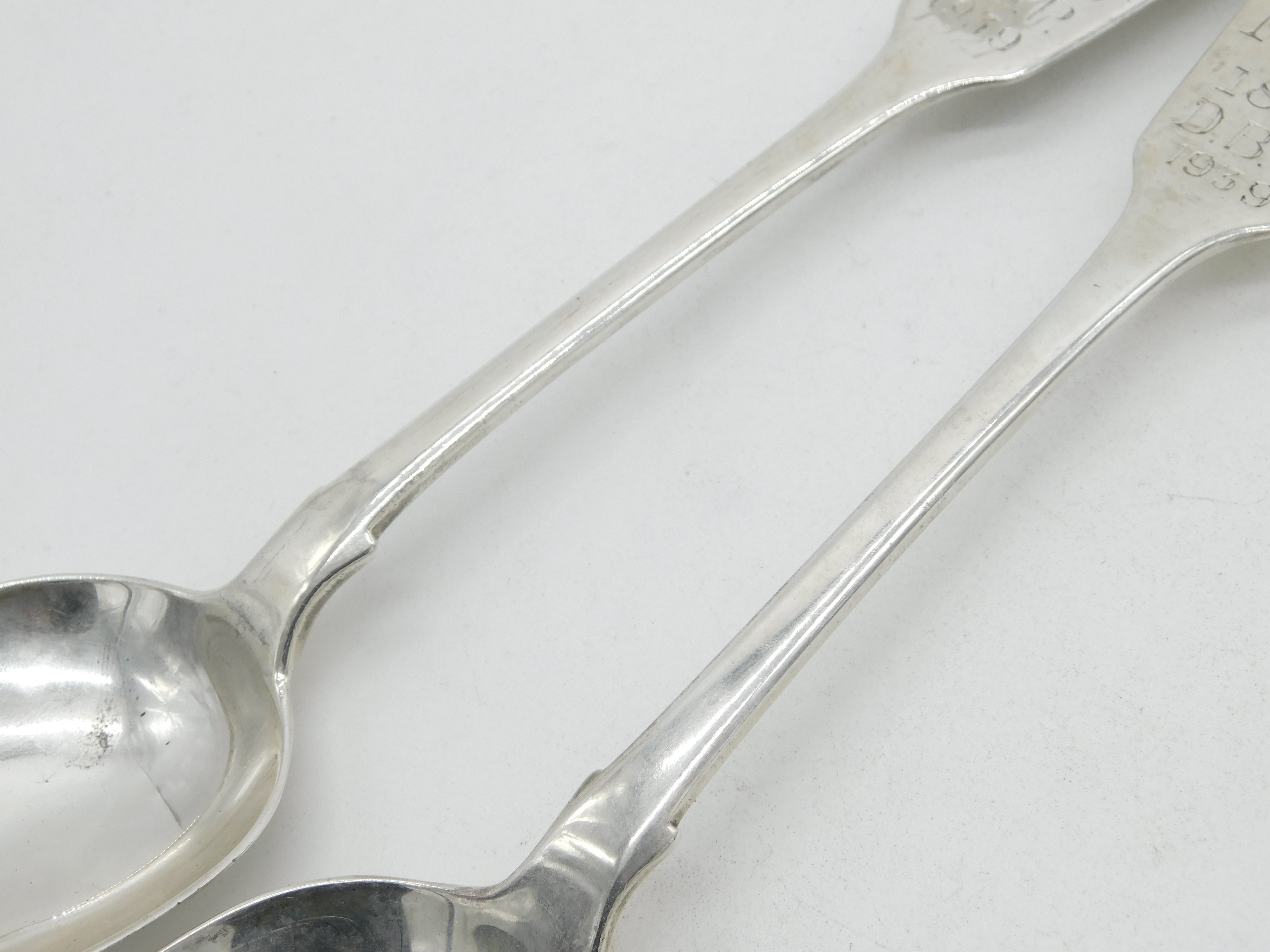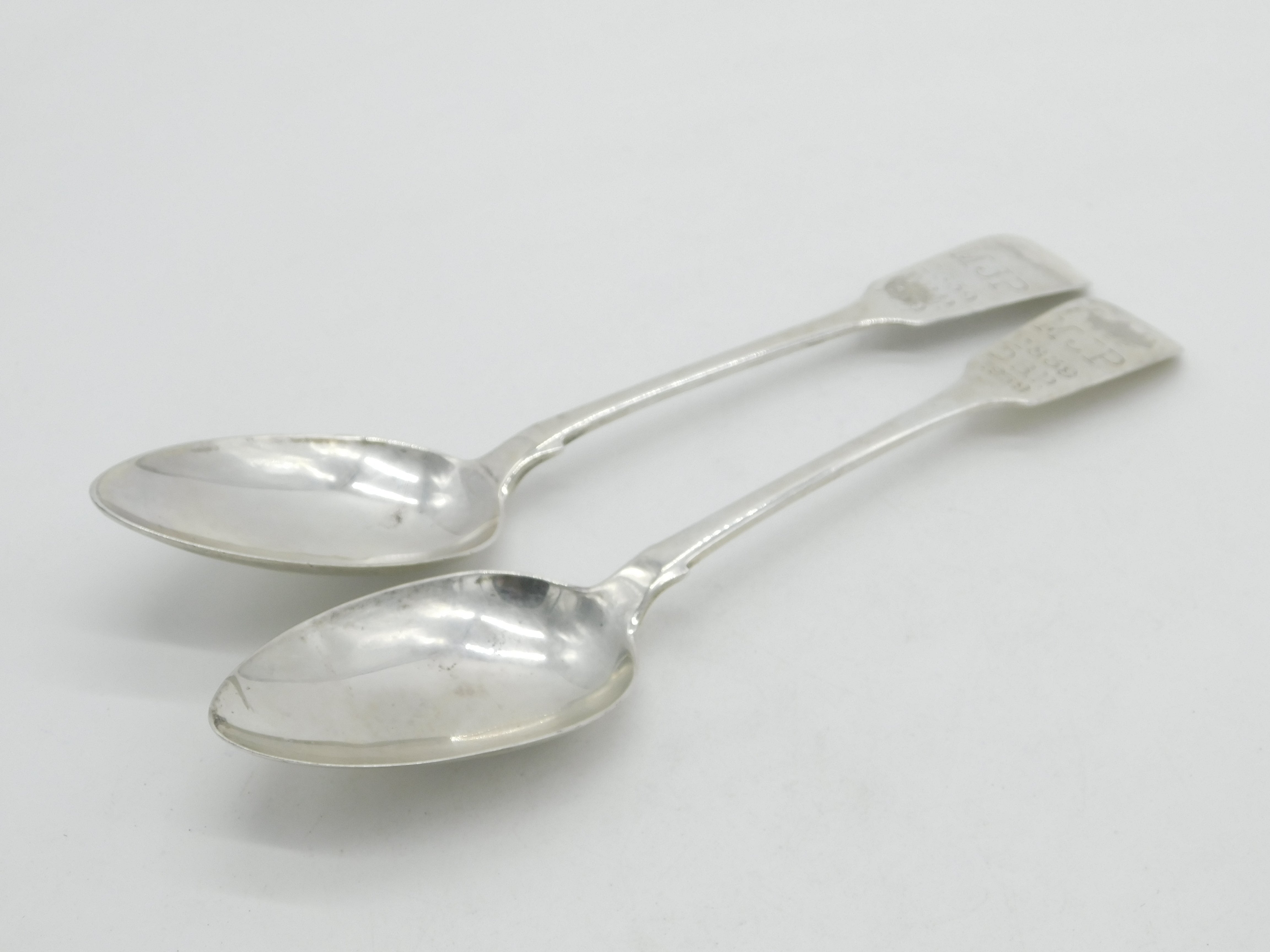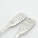 Victorian Irish Sterling Silver Rat Tail Serving Spoon Pair 1839 Dublin Antique