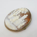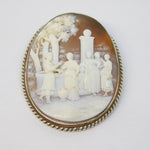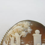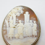 Victorian Large Sterling Silver Epicurean Scene Carved Shell Cameo Brooch c1860