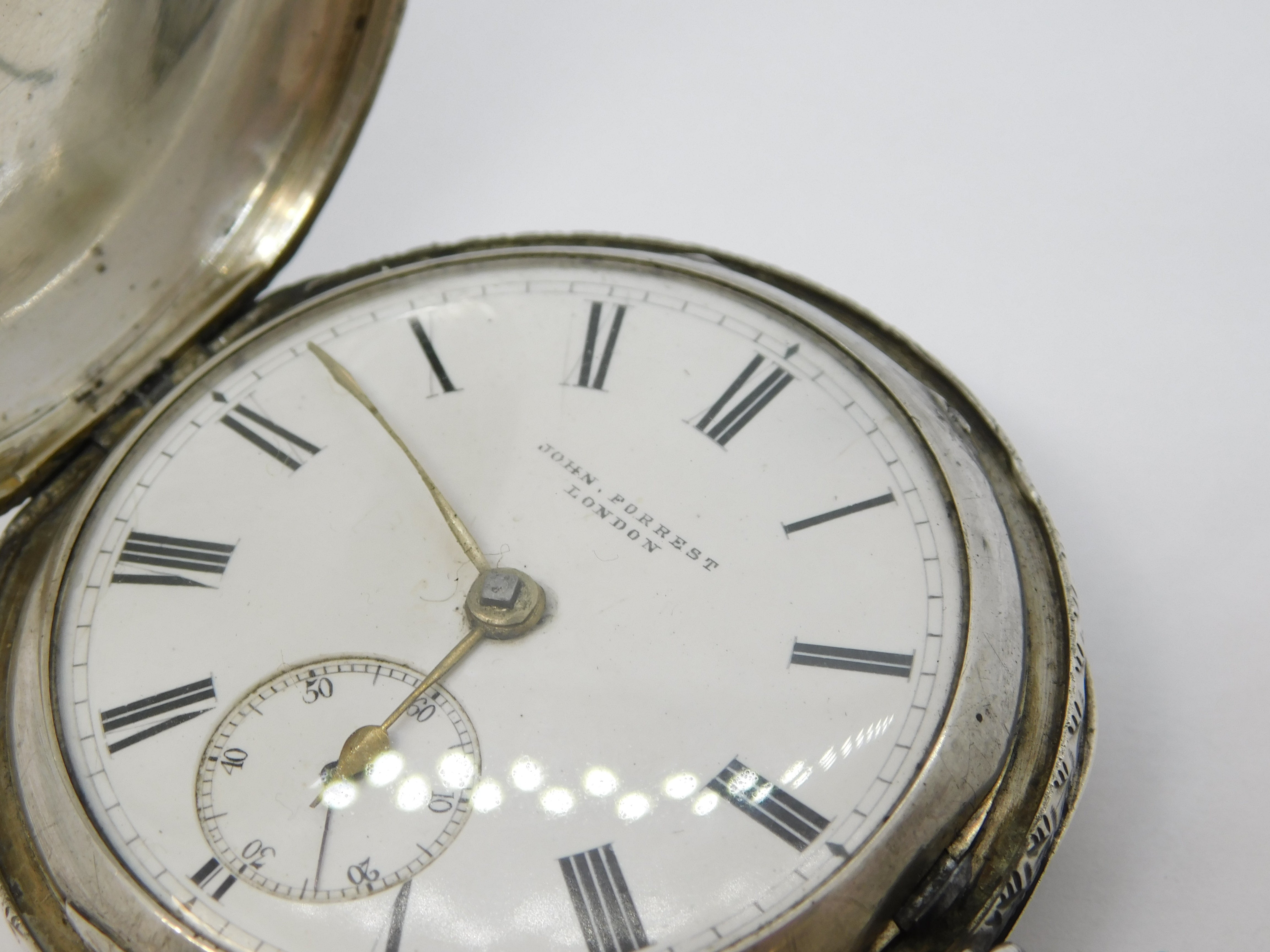 Details: A fantastic and wonderfully designed antique Victorian large sterling silver cased full hunter pocket watch with charming gold buckle detailing by John Forrest of London hallmarked Chester 1897 to the case. This is a wonderful item that would make a perfect gift or addition to any collection.