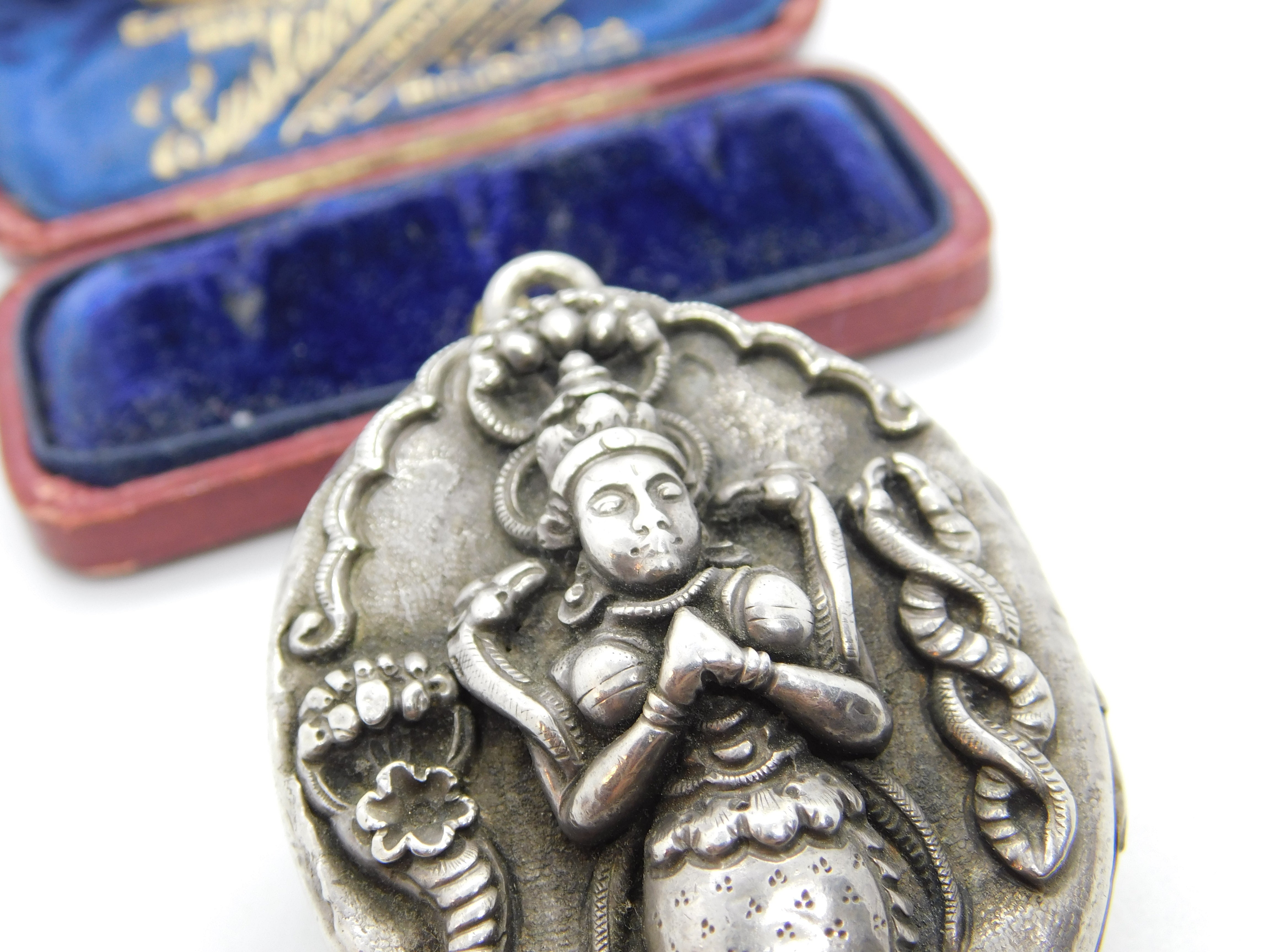 Details: A fantastic and wonderfully designed antique Victorian large sterling silver Indian locket brooch or pendant with superb detailing to the facade c1880. The silver has been XRF tested. This is a wonderful item that would make a perfect gift or addition to any collection. The BOX pictured is for PRESENTATION ONLY and is NOT included in the listings but used to frame the pictures unless specifically stated otherwise.
