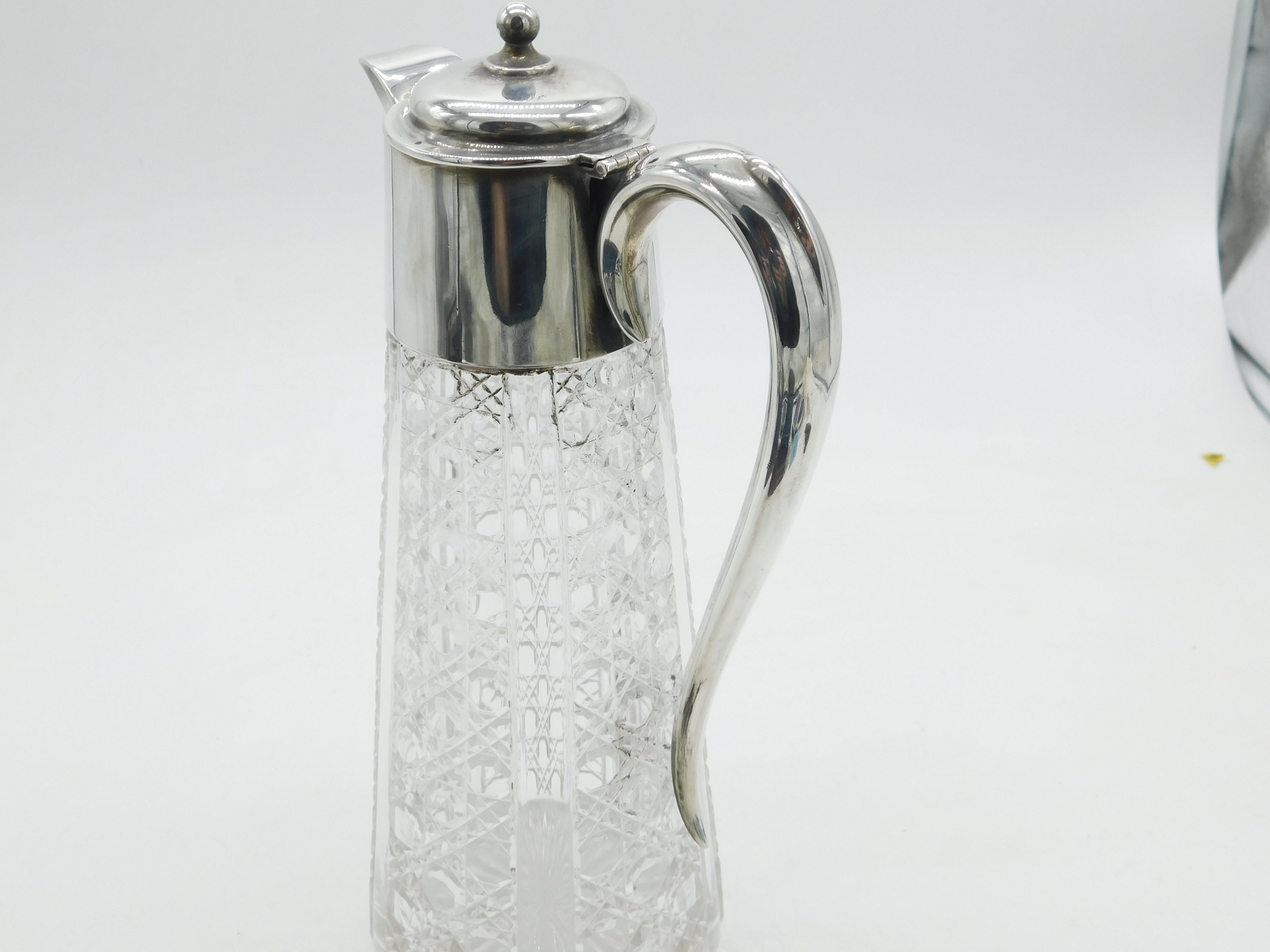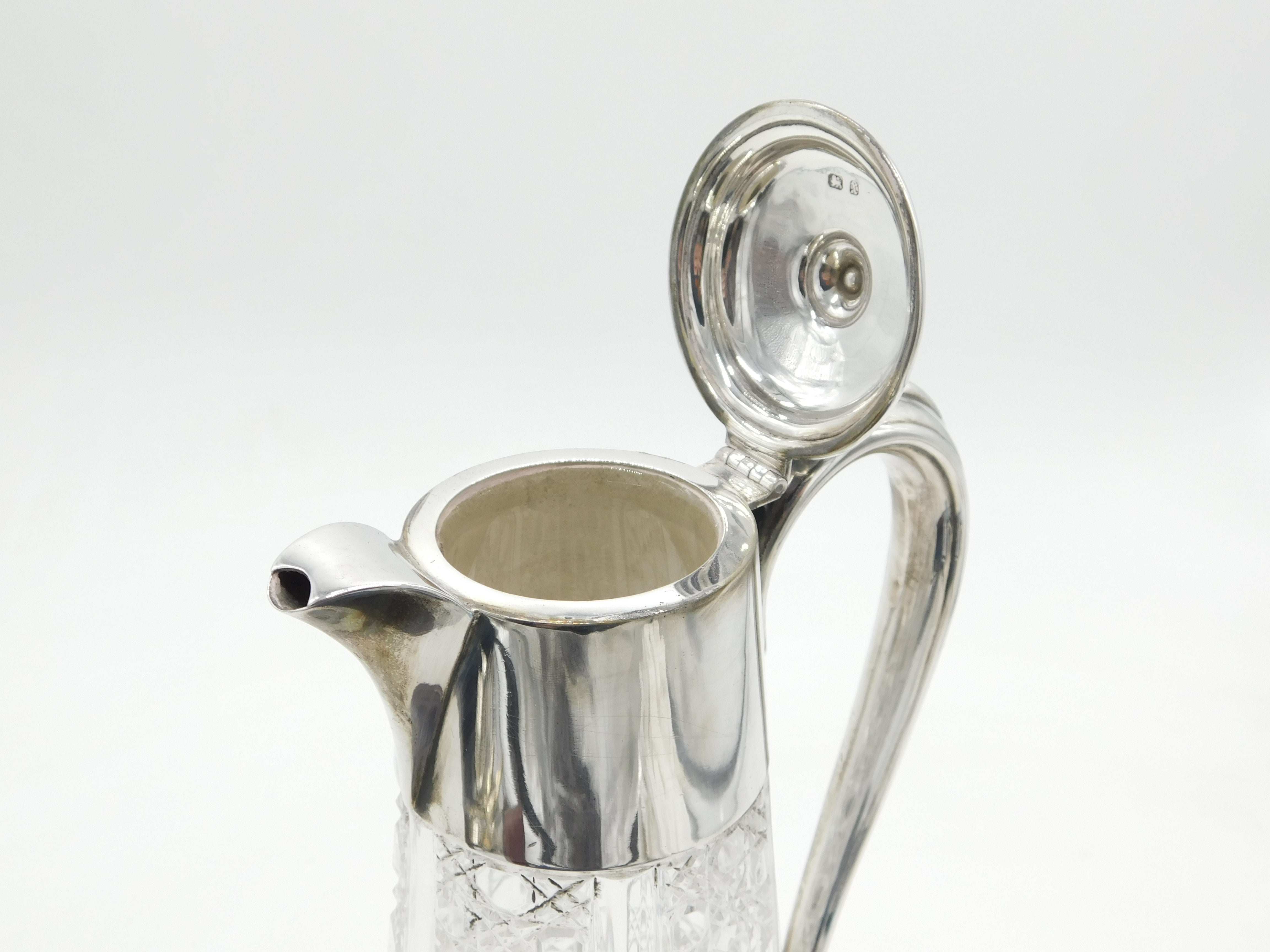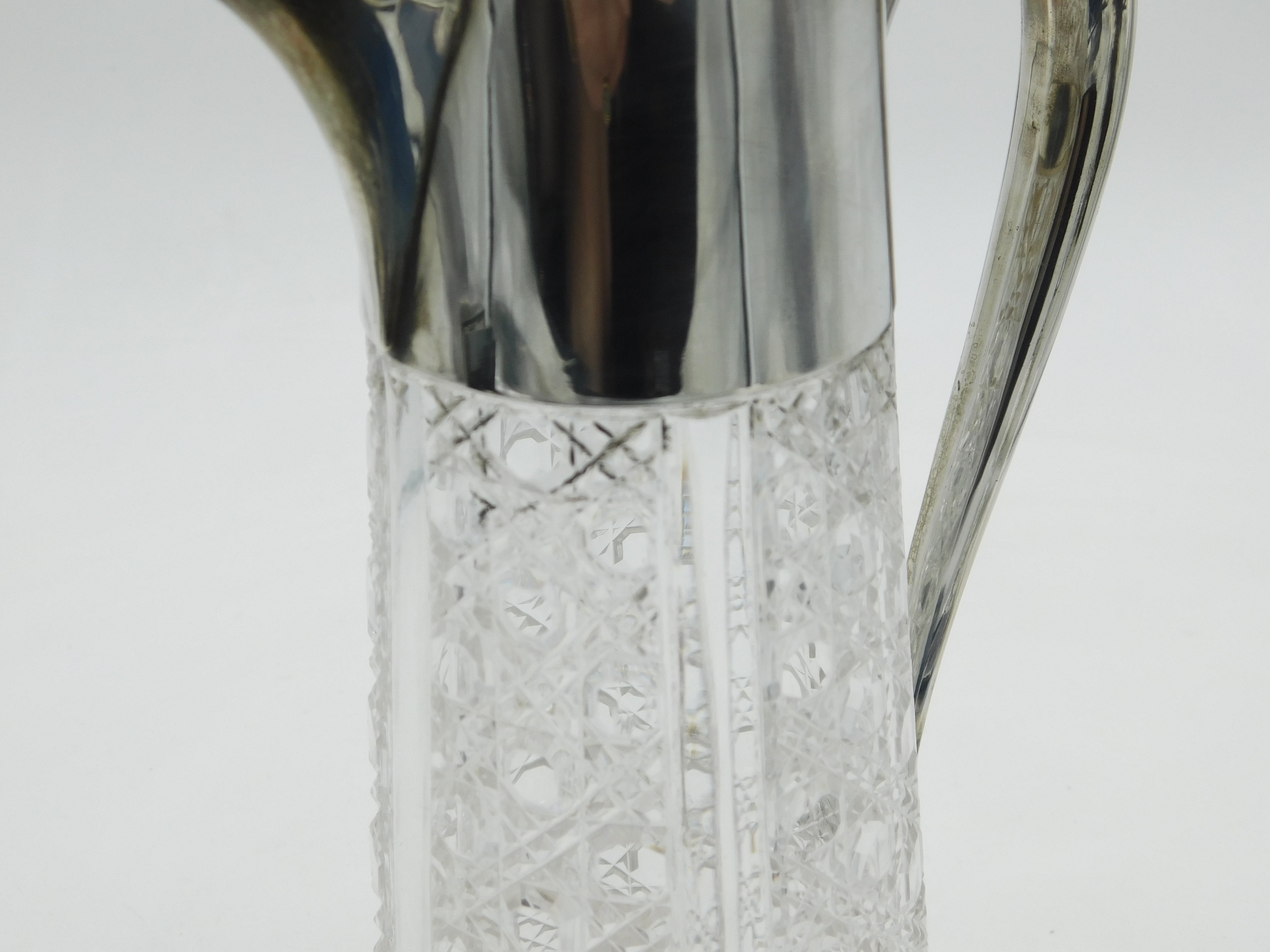 Victorian Large Sterling Silver Mounted Cut Glass Claret Jug 1897 Birmingham Antique