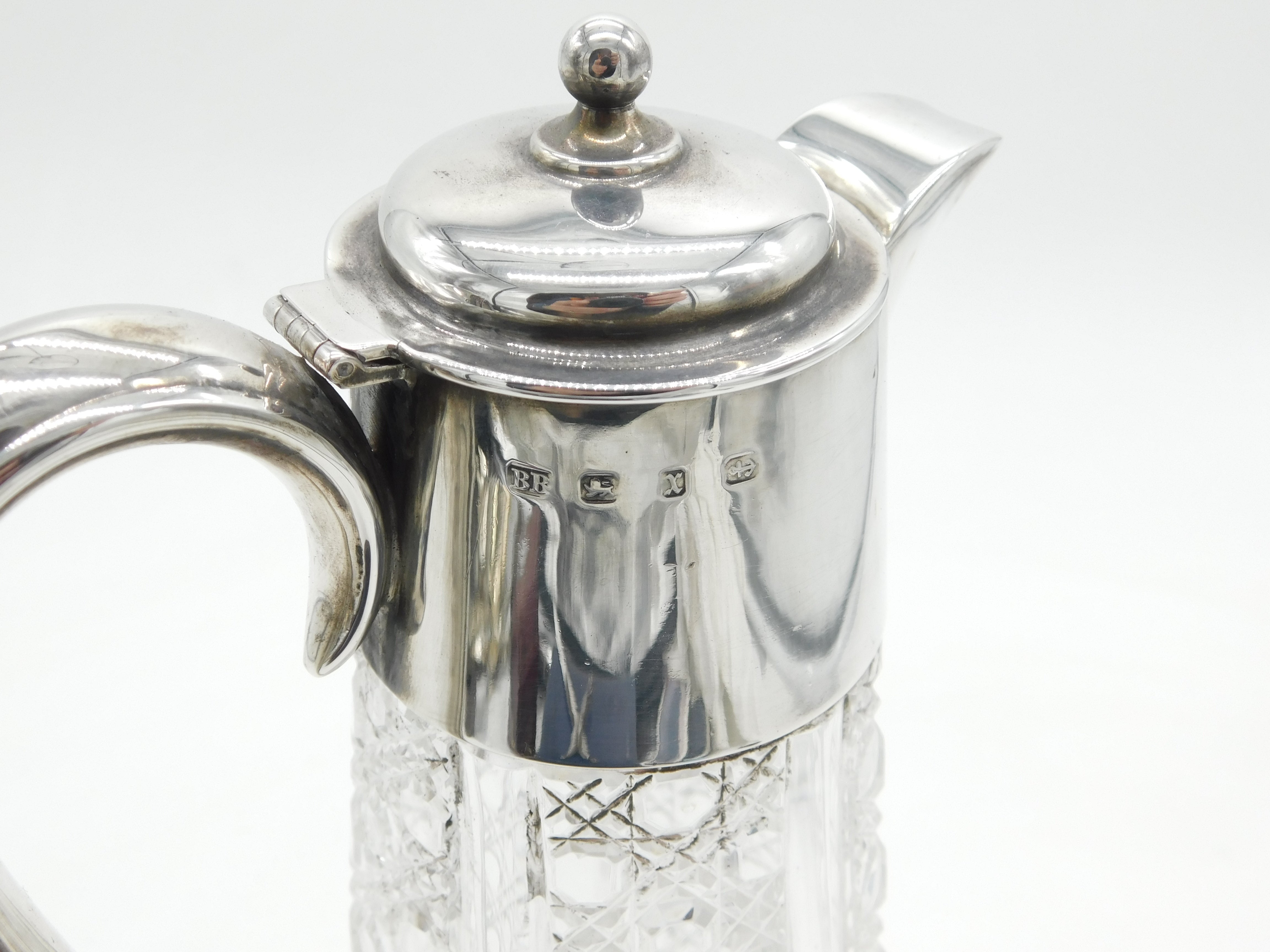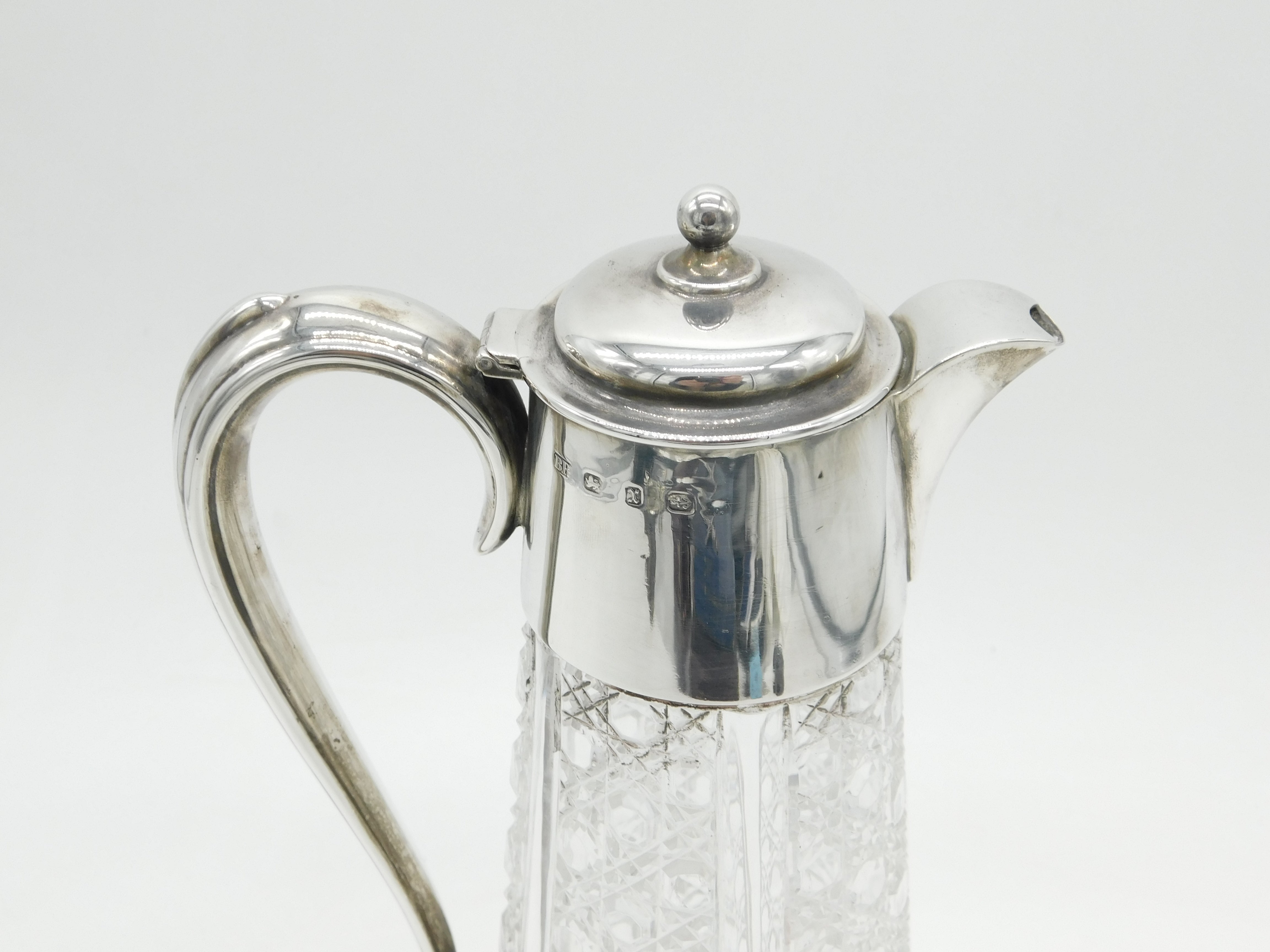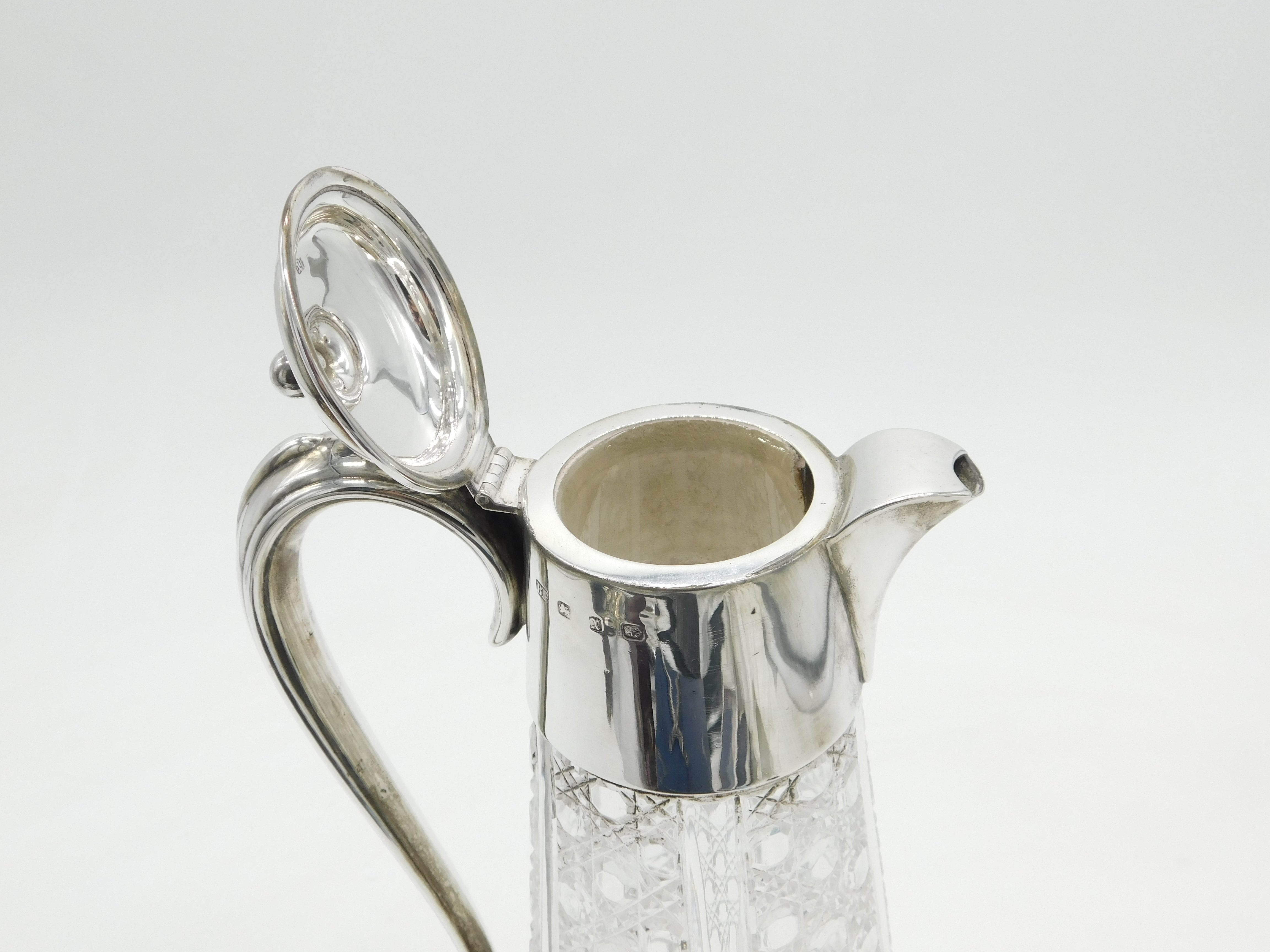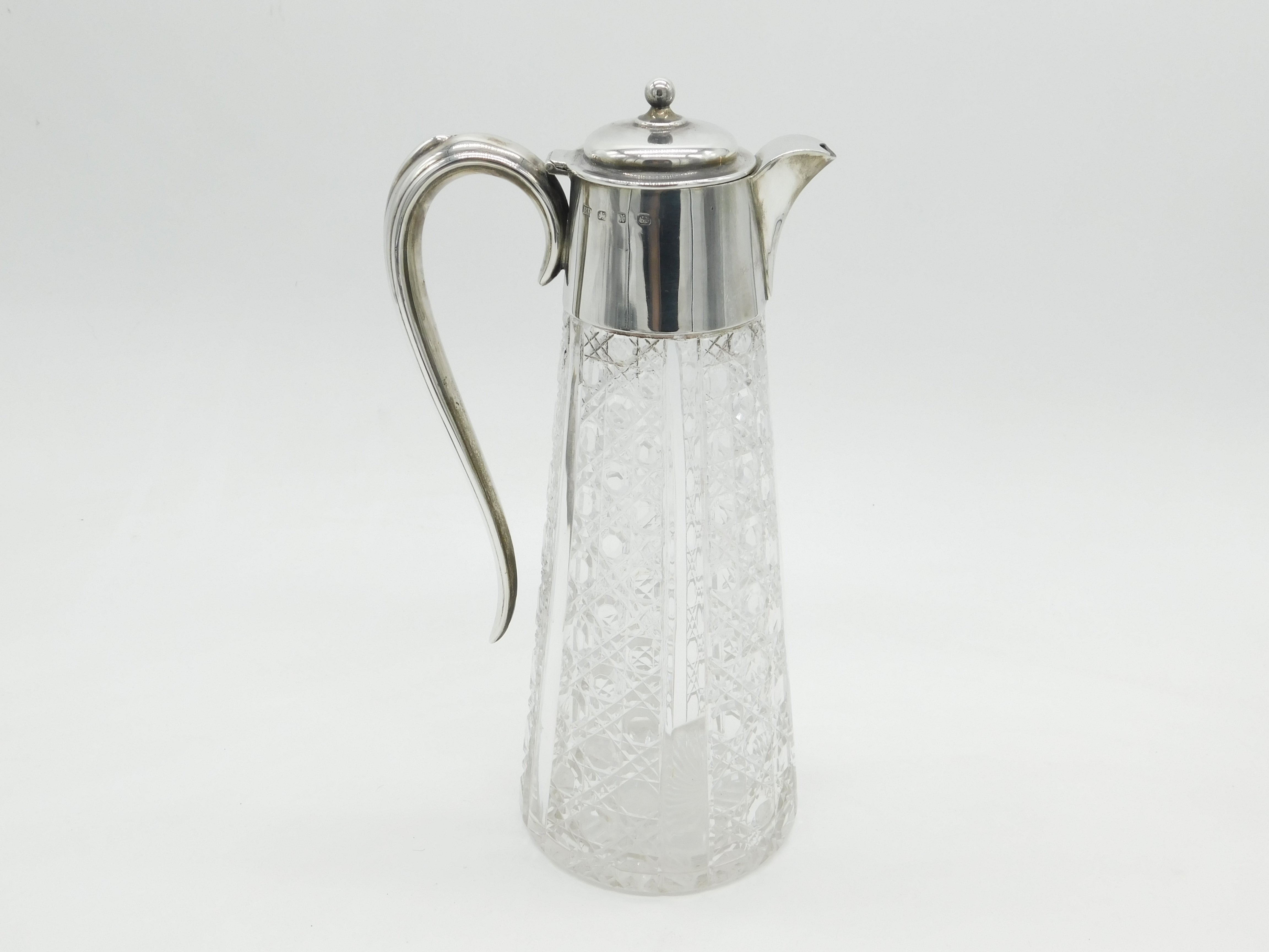 Victorian Large Sterling Silver Mounted Cut Glass Claret Jug 1897 Birmingham Antique