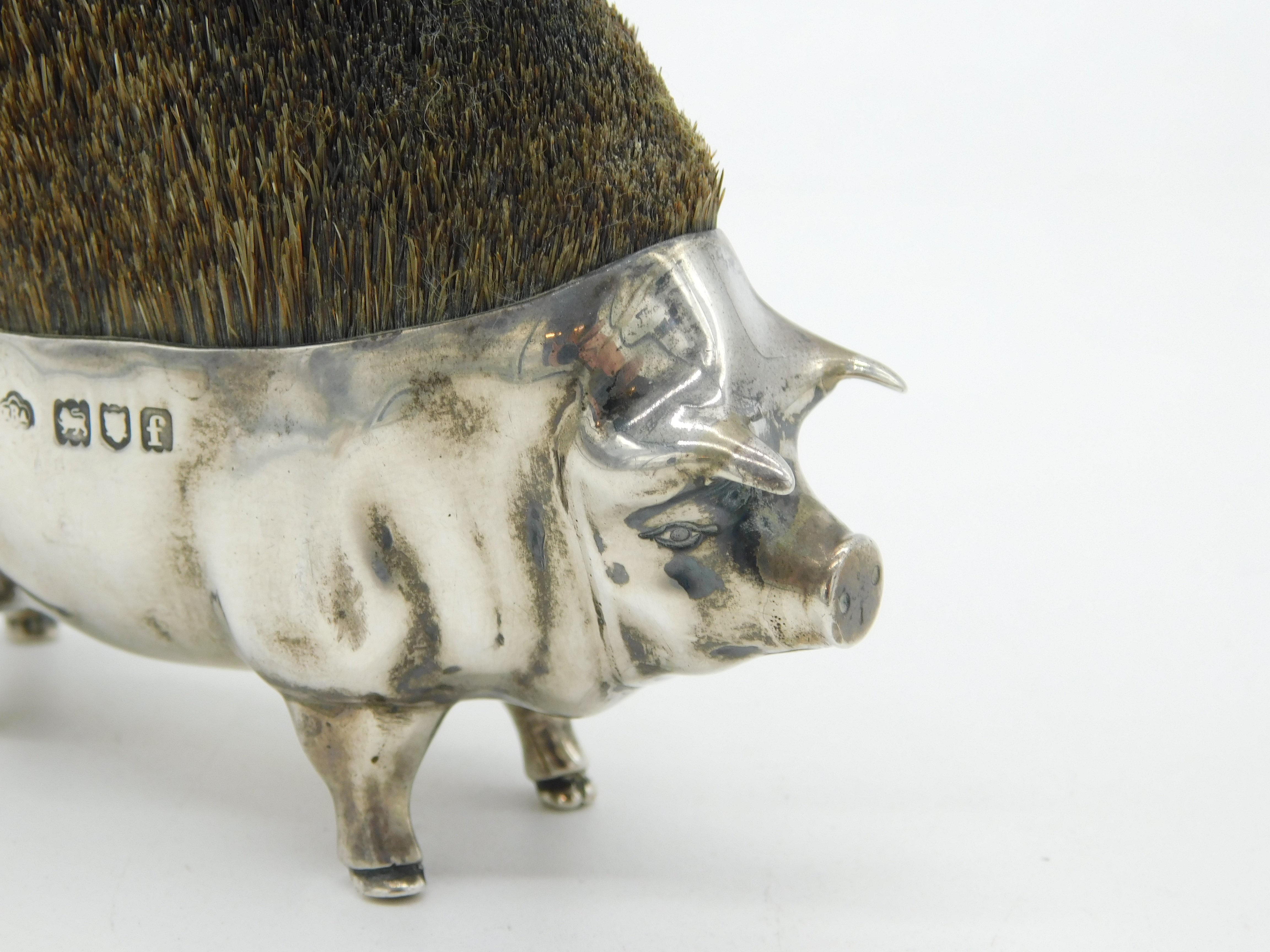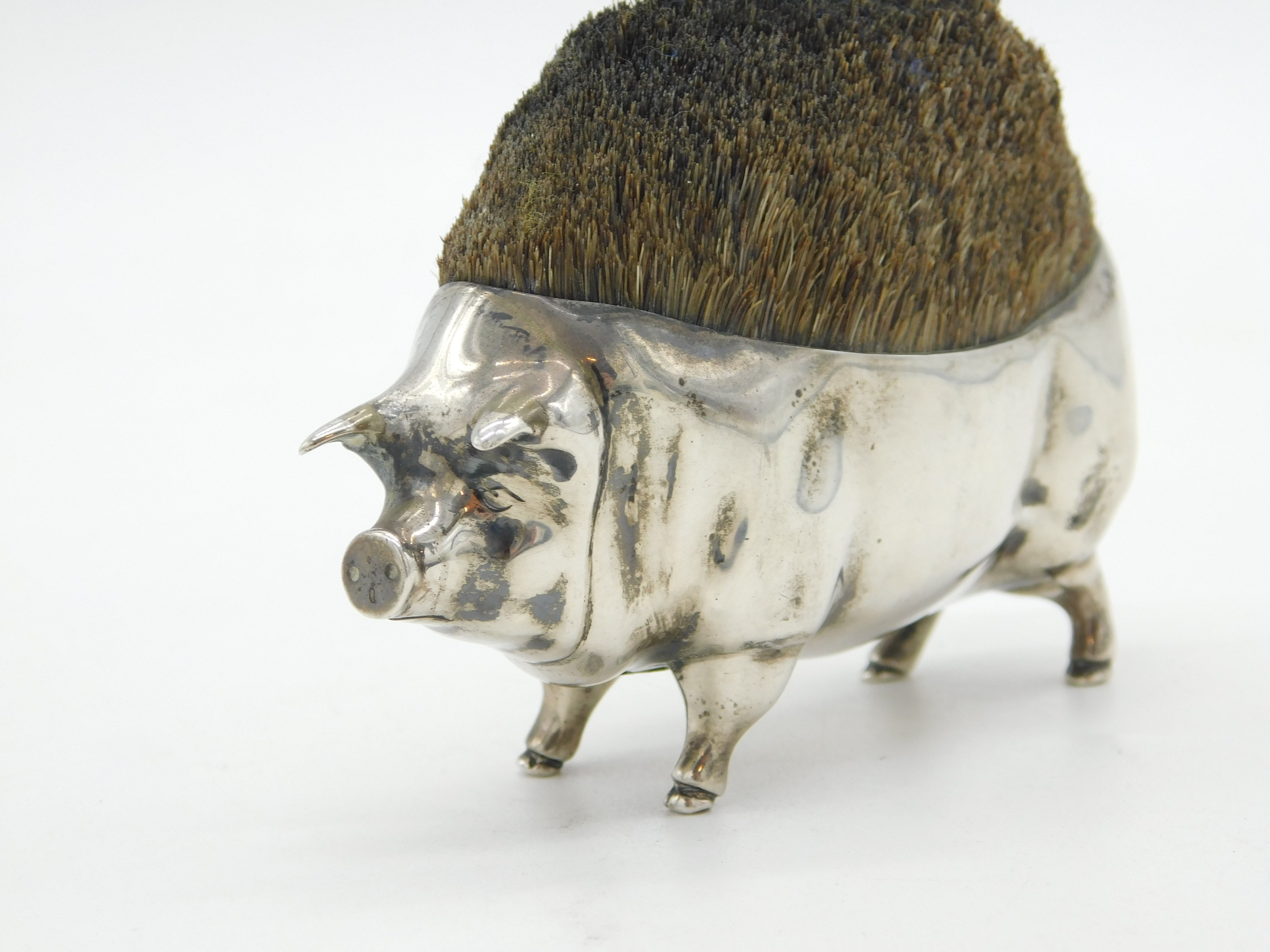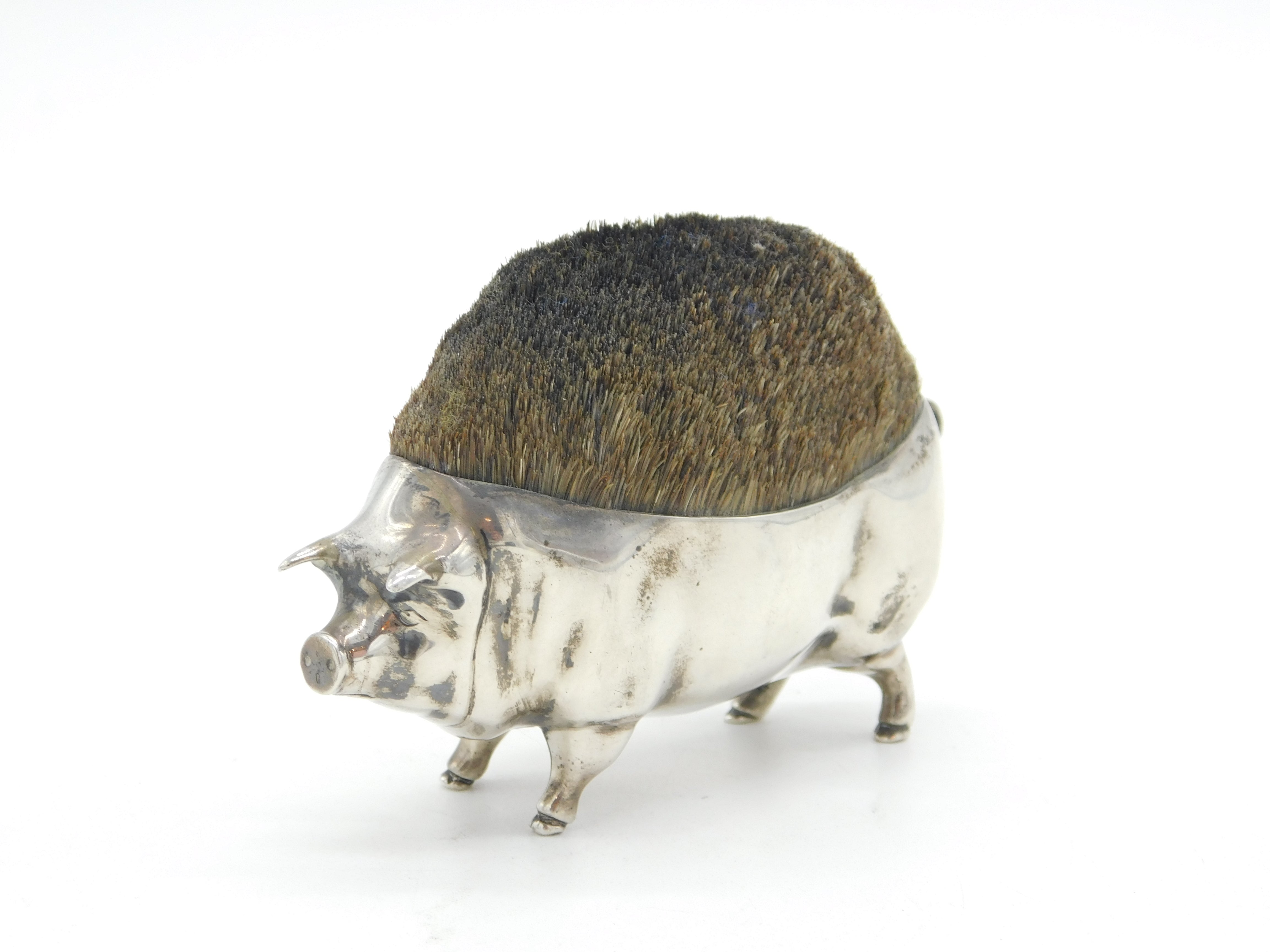 Victorian Large Sterling Silver Standing Pig Pen Wipe Antique 1901 London