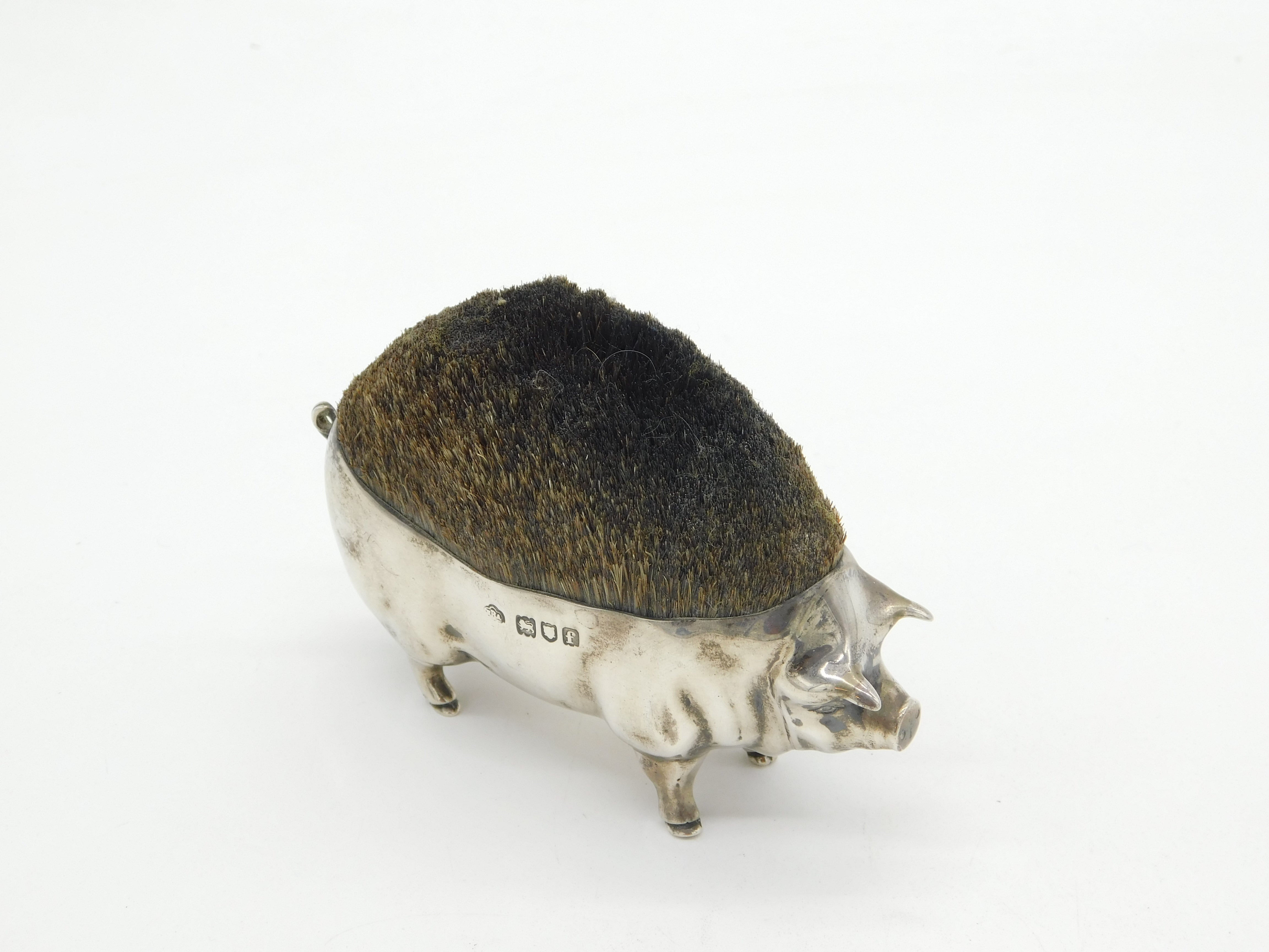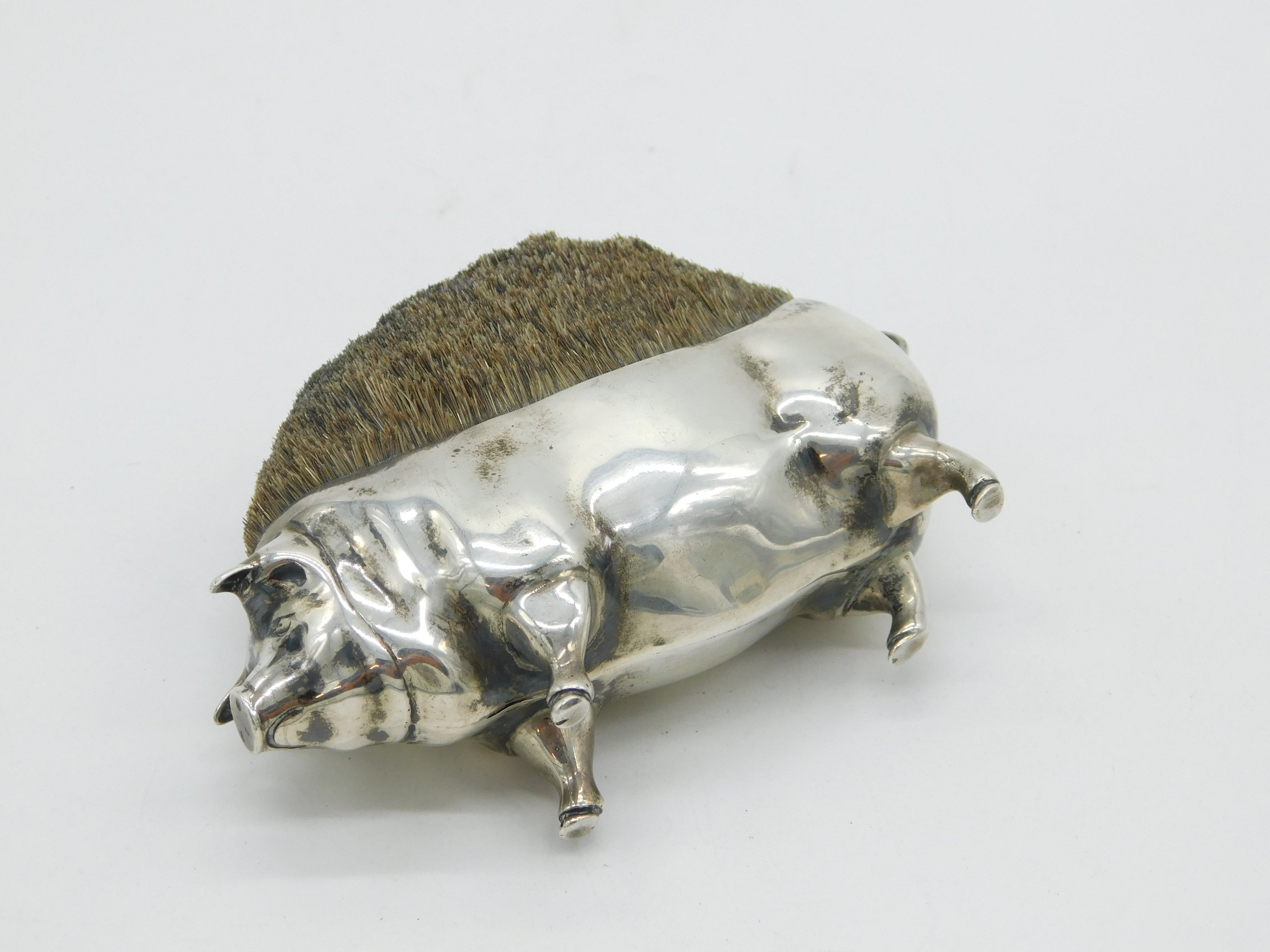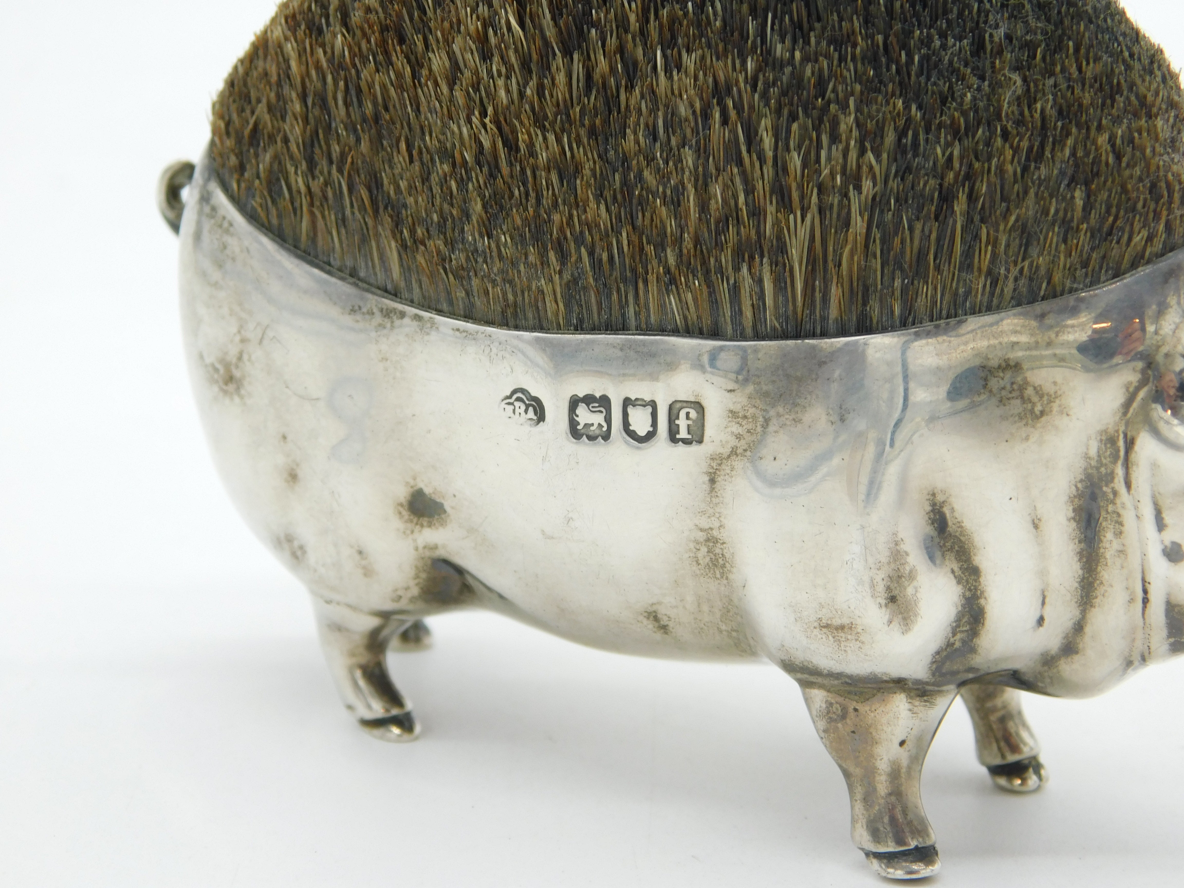 Victorian Large Sterling Silver Standing Pig Pen Wipe Antique 1901 London
