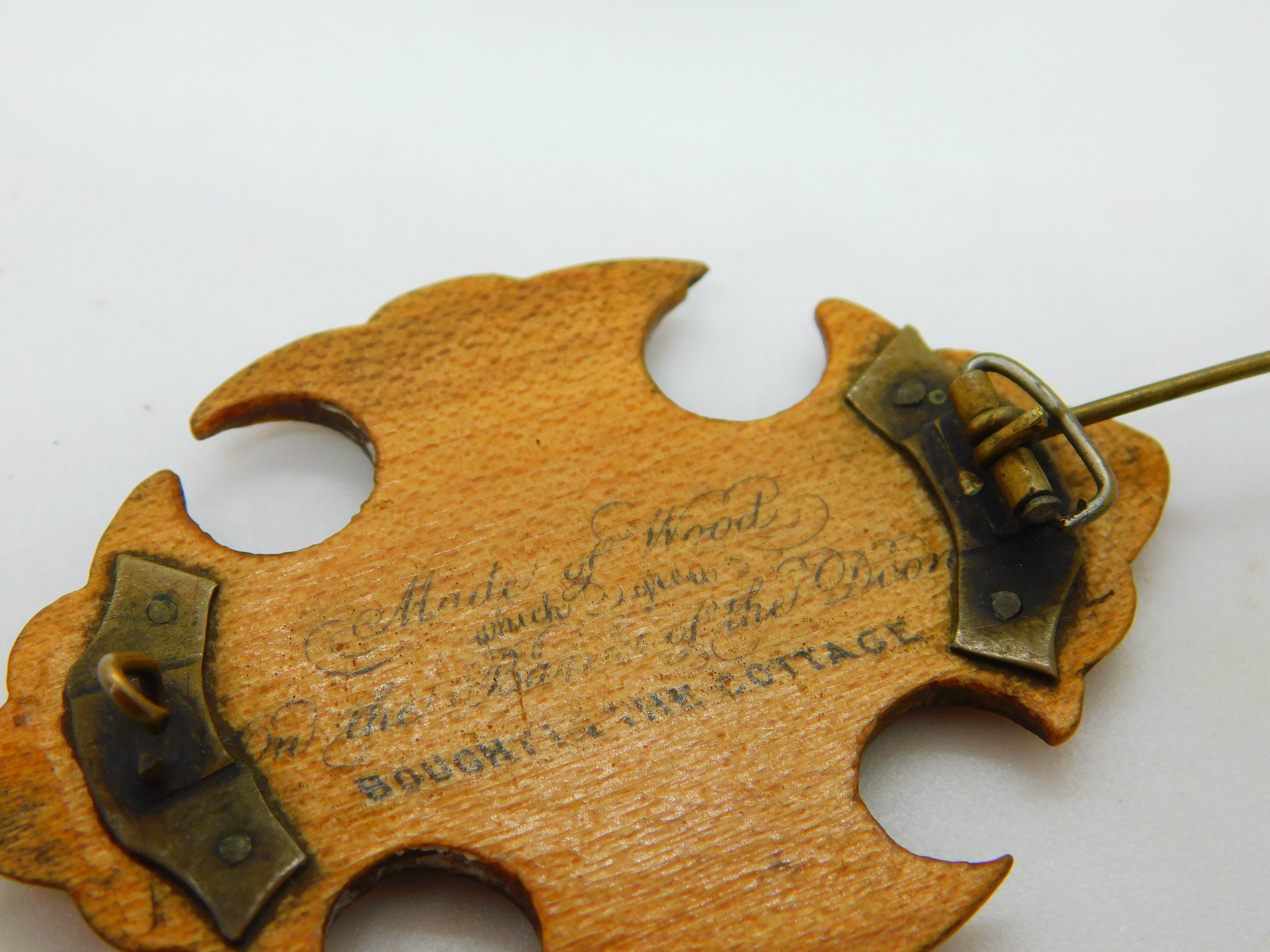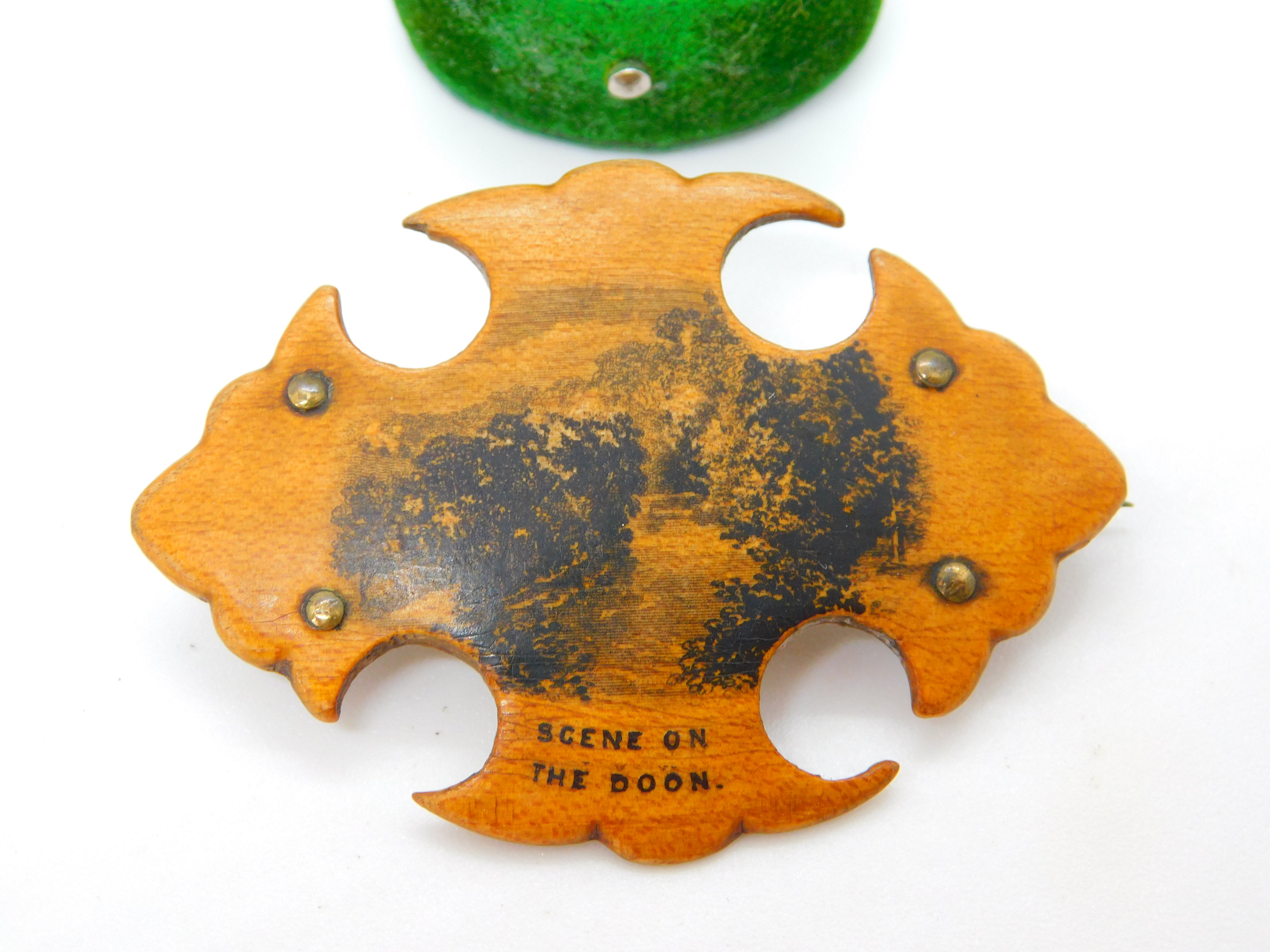 Victorian Mauchline Ware Brooch 'Scene on the Doon' Antique c1890 Scottish