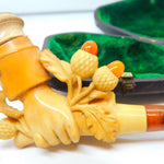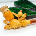 Victorian Meerschaum Block Amber Hand Holding Acorns Novelty Pipe Antique c1860