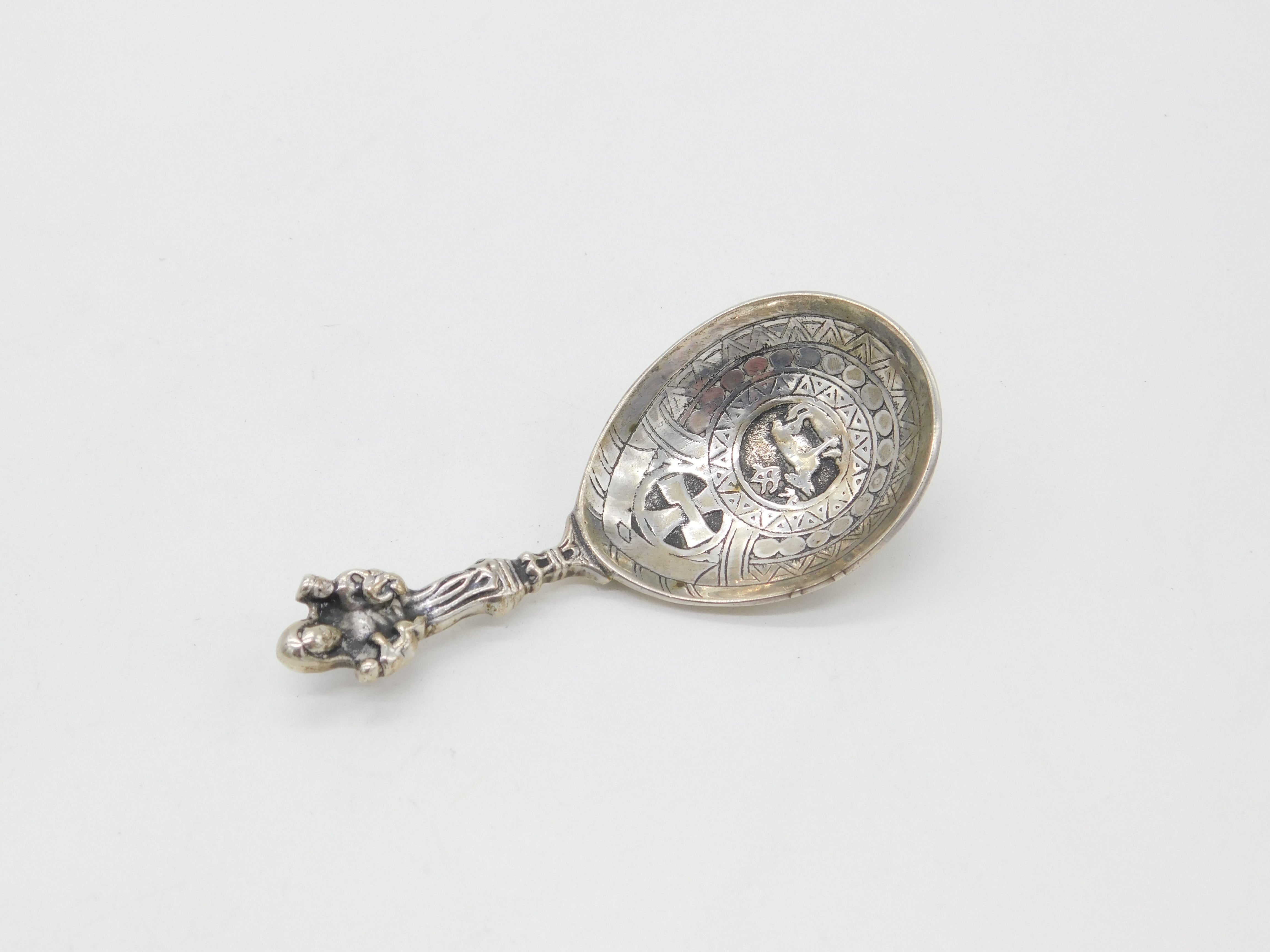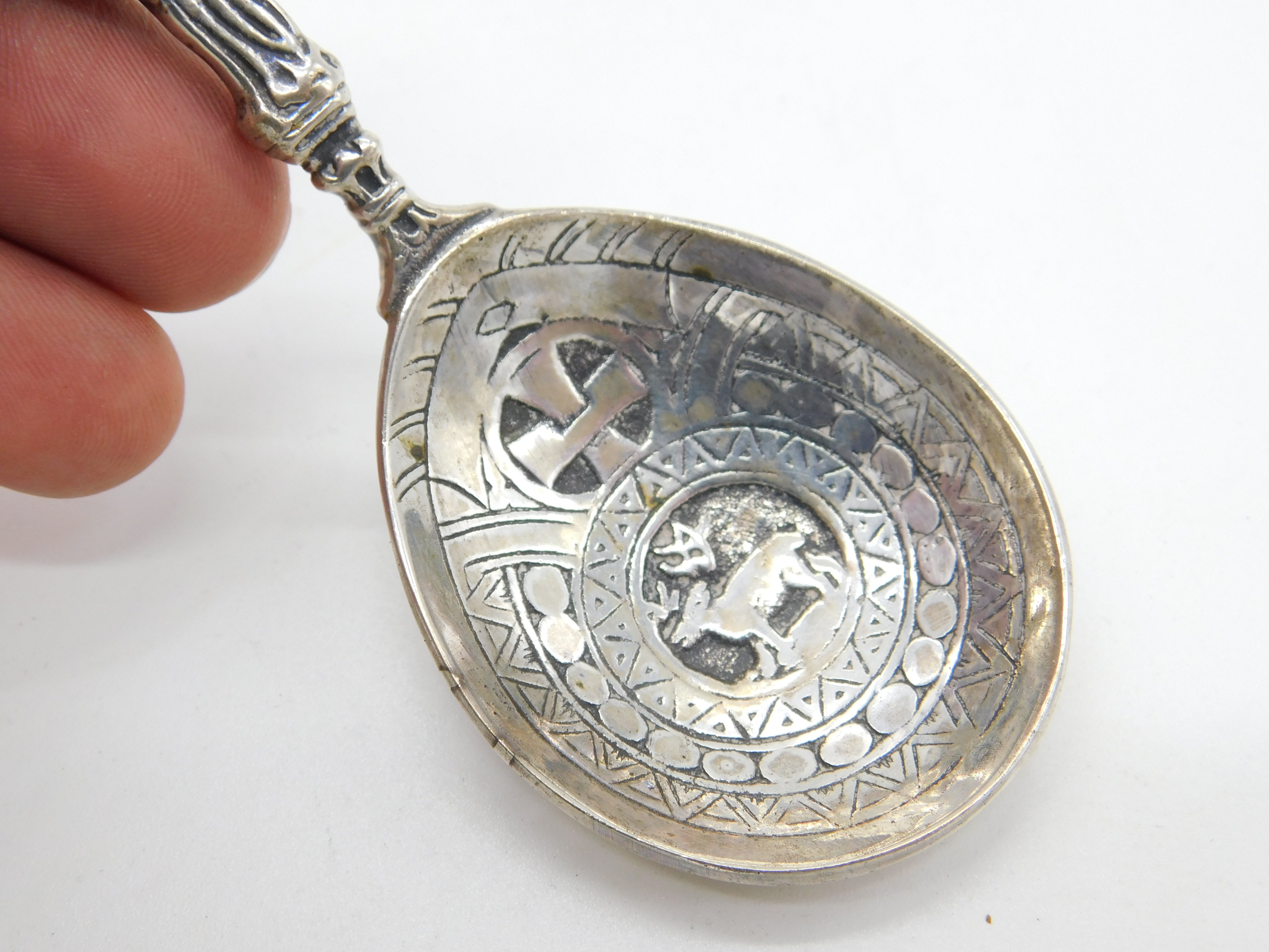 Victorian Norwegian .830 Silver Religious Anointing Spoon Antique c1890