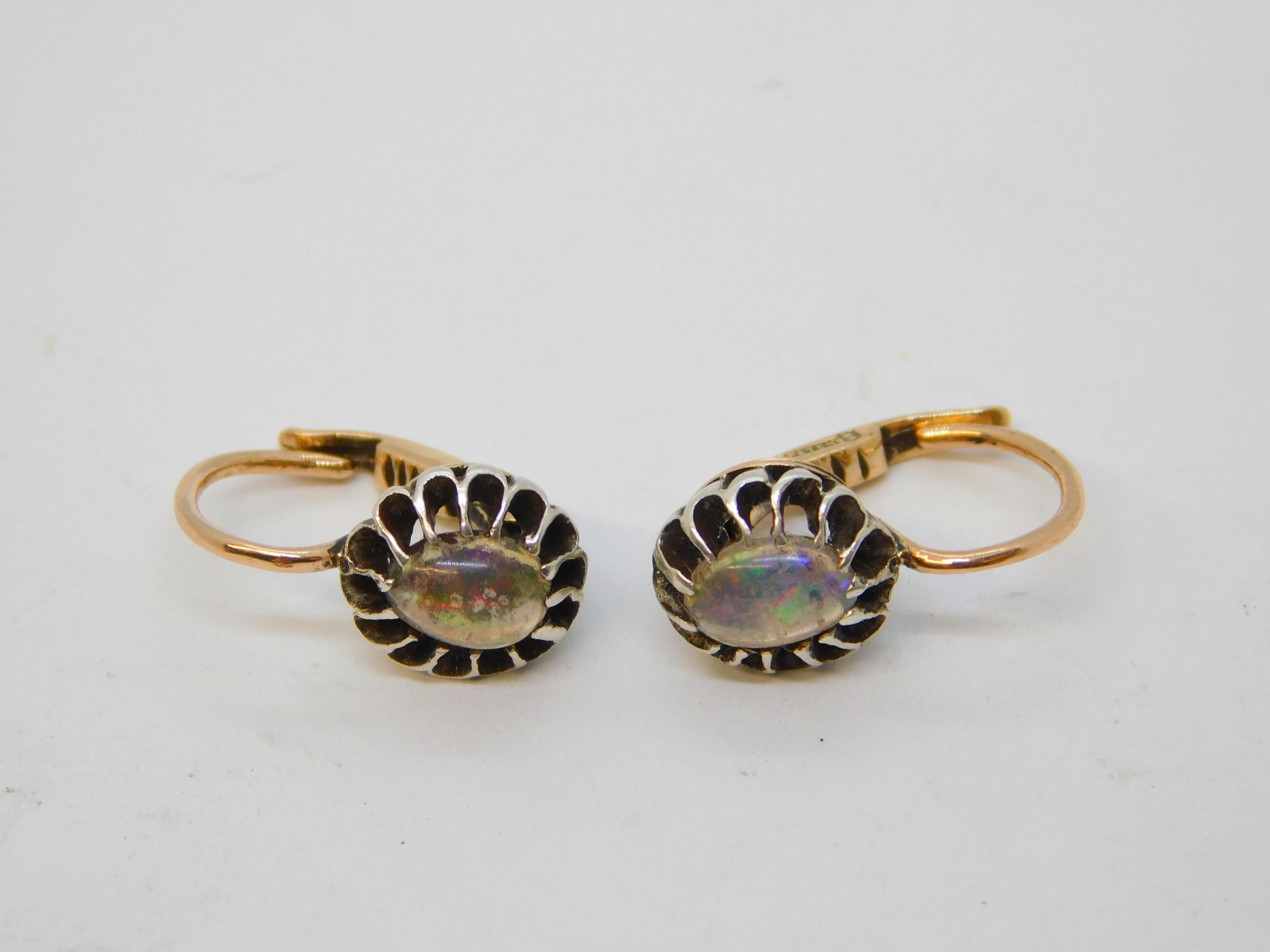 Victorian Pair of 9ct Rose Gold Cabochon Water Opal Hook Earrings Antique