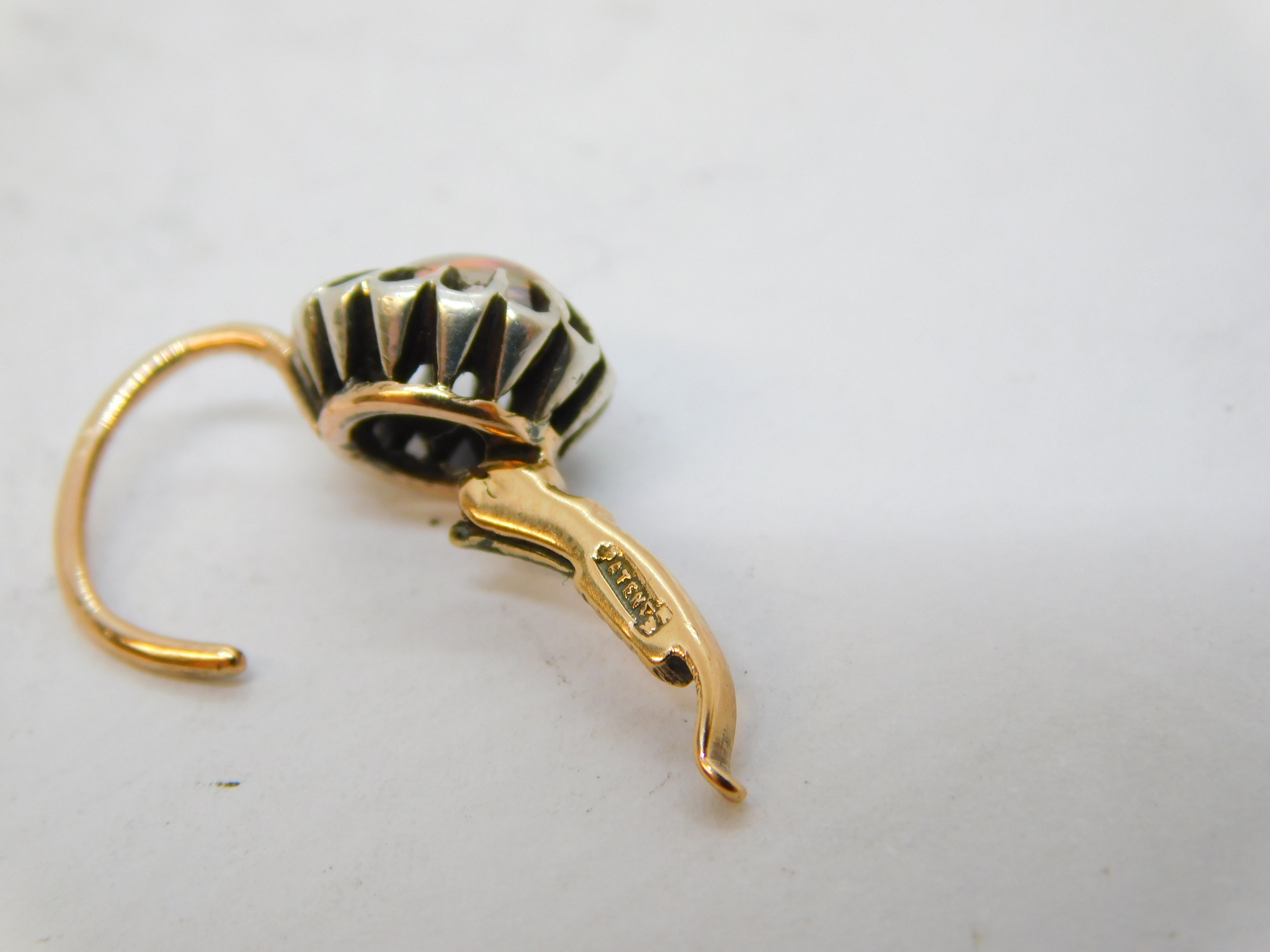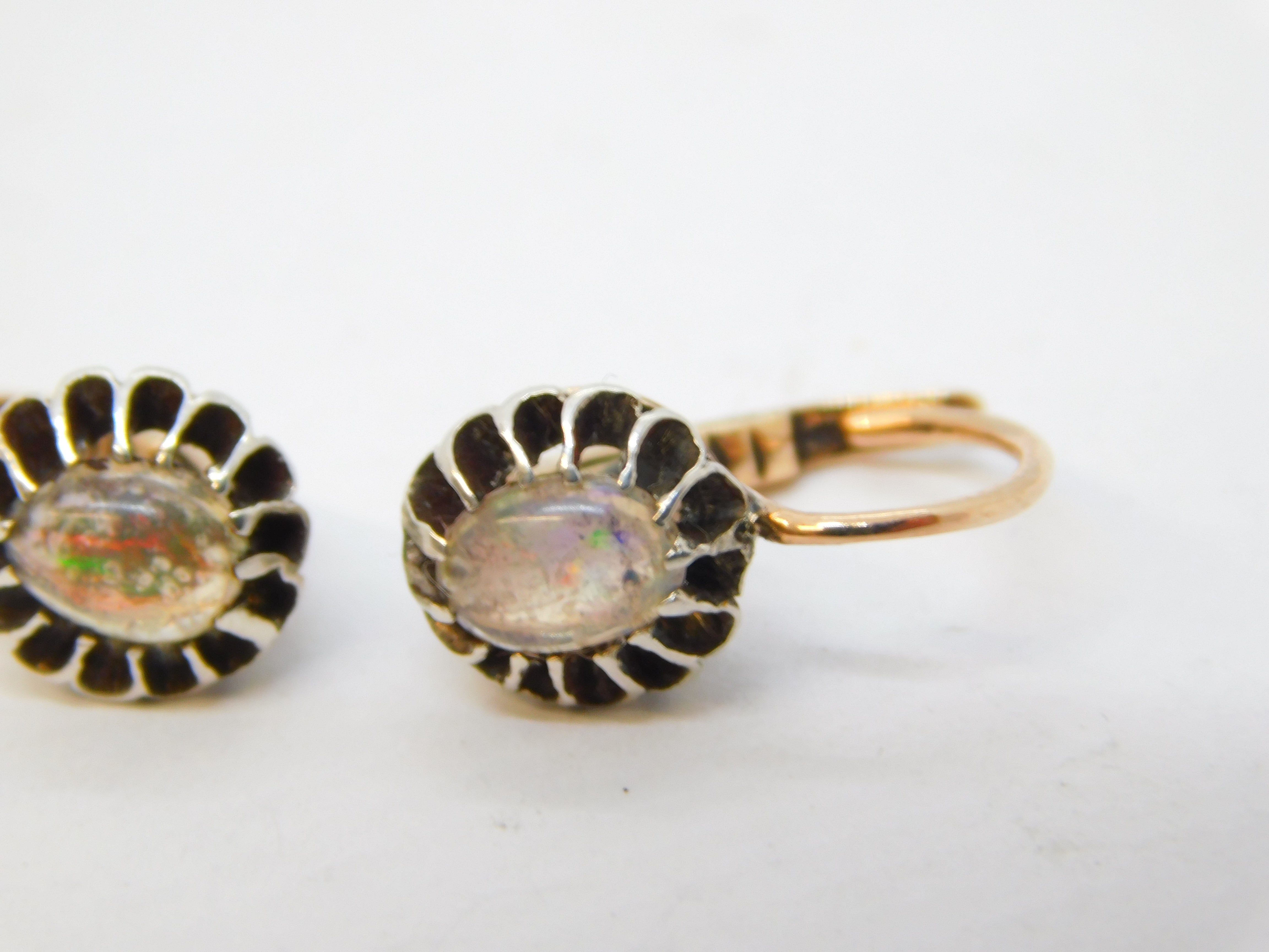 Details: A fantastic and wonderfully designed antique Victorian 9ct rose gold & silver set cabochon cut water opal hook earrings with patent mark to the hooks, the gold has been XRF tested. This is a wonderful item that would make a perfect gift or addition to any collection. We are more than happy to provide XRF reports for items upon request.
