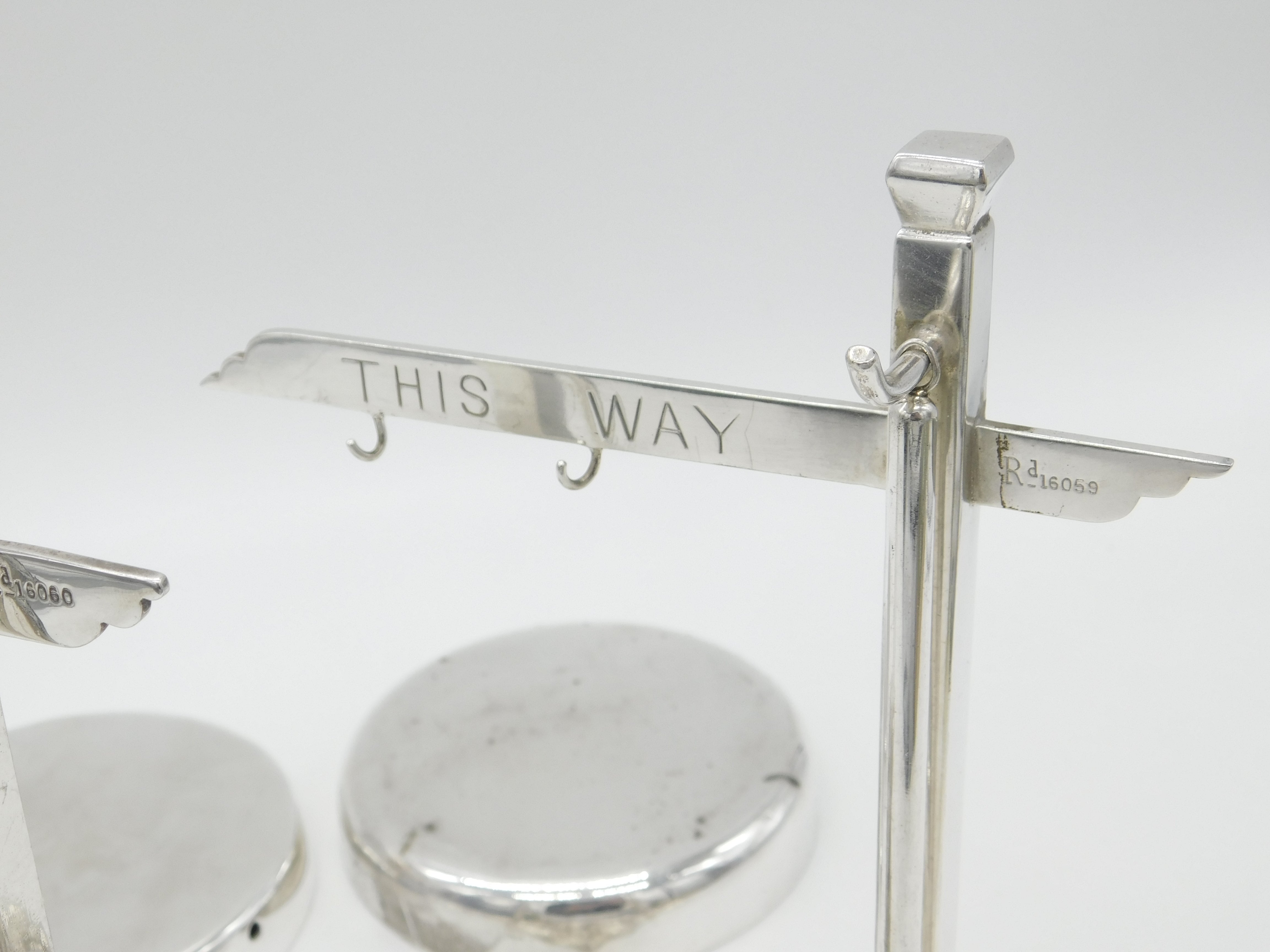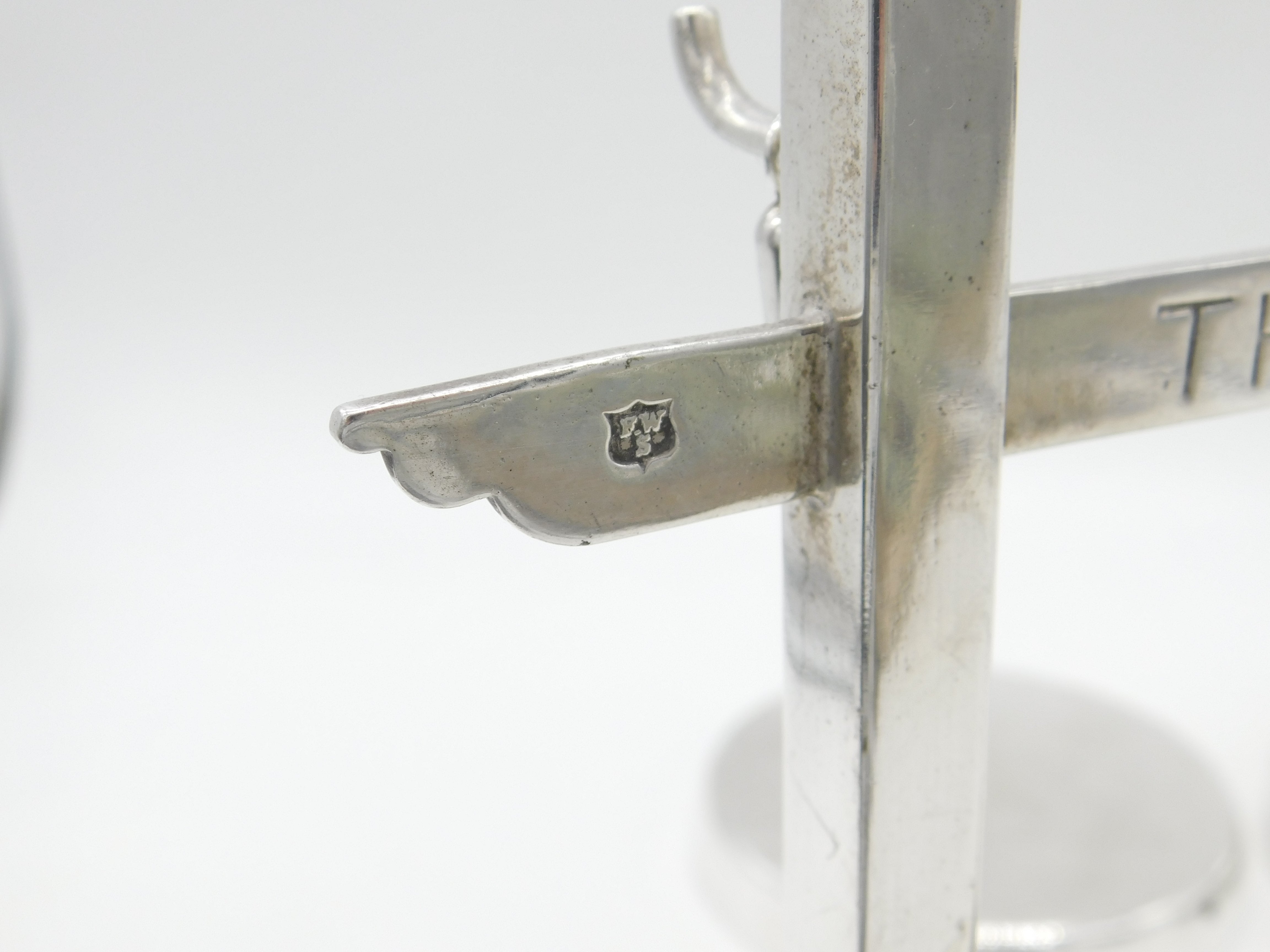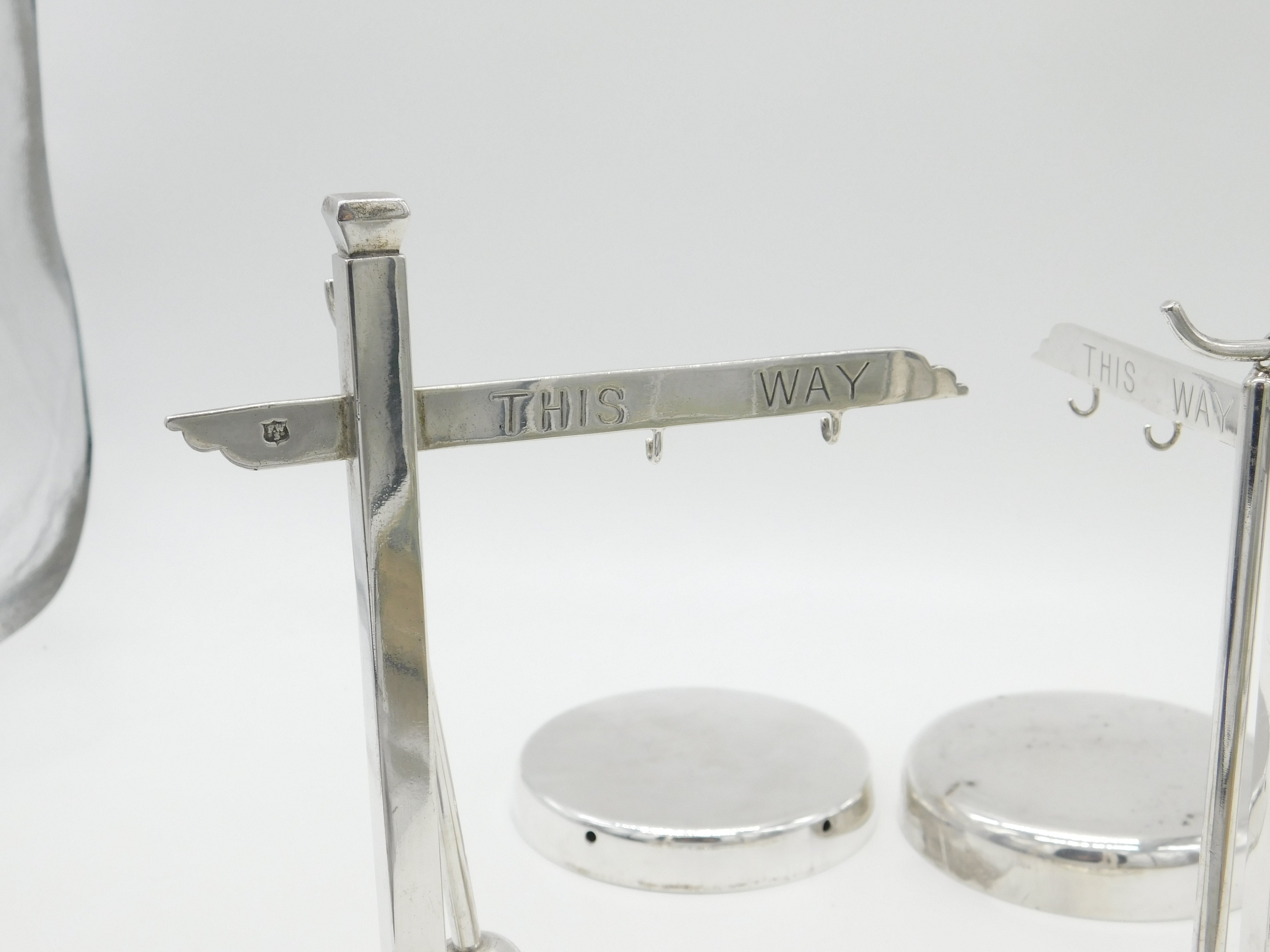Details: A fantastic and wonderfully designed pair of antique Victorian silver plated dinner gongs taking the form of the popular Victorian nursery rhyme about Little Bo-Peep both showing children sitting at the base of a 'This Way' signpost marked in multiple plated with patent mark in multiple places by Benetfink & Co. c1890. The gongs need a little work to be hung from the signpost as the holes are in the wrong place but generally such a unique example! This is a wonderful item that would make a perfect gift or addition to any collection. The BOX pictured is for PRESENTATION ONLY and is NOT included in the listings but used to frame the pictures unless specifically stated otherwise.