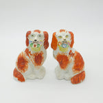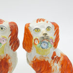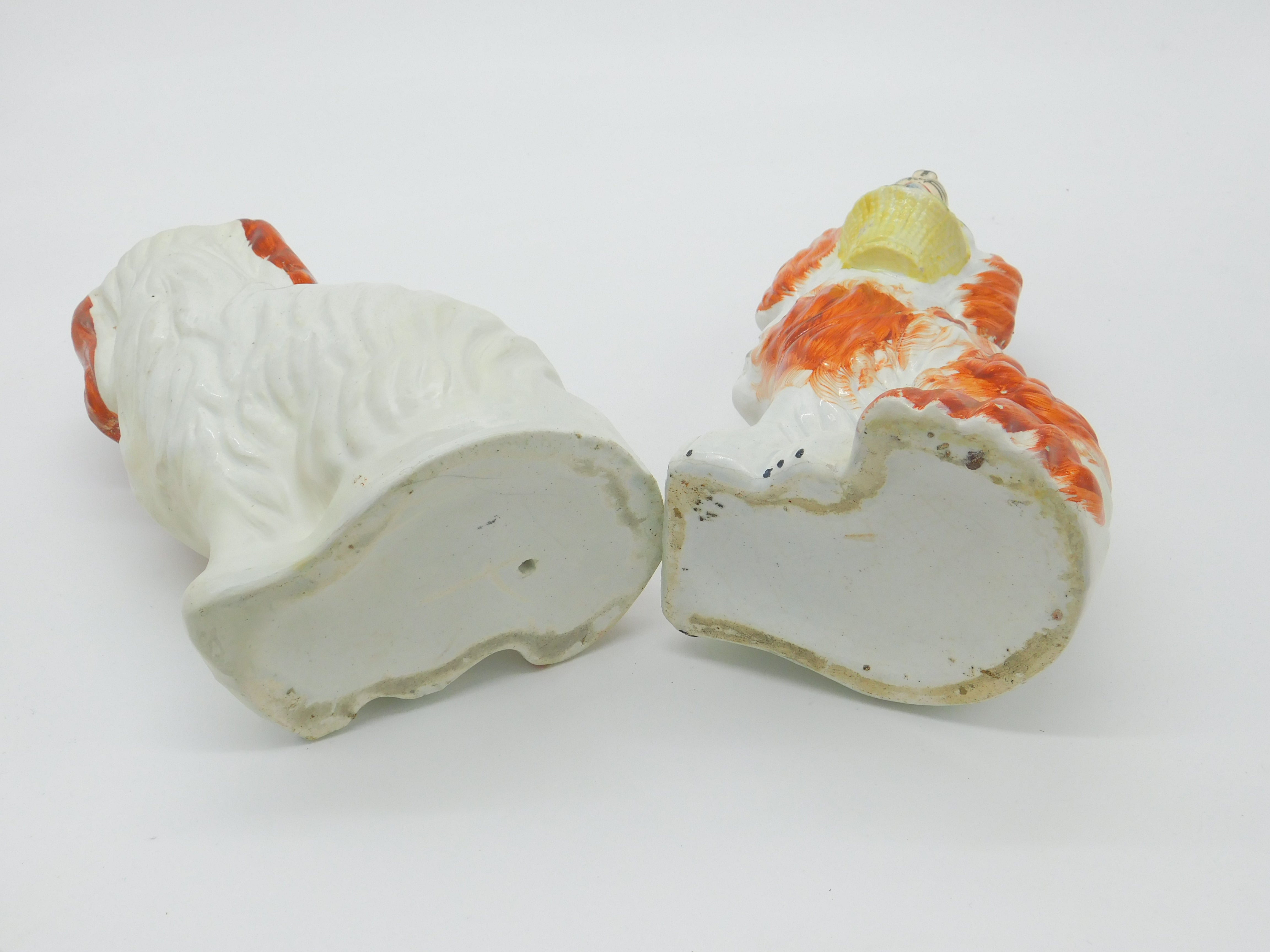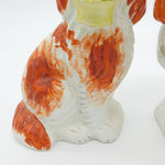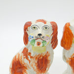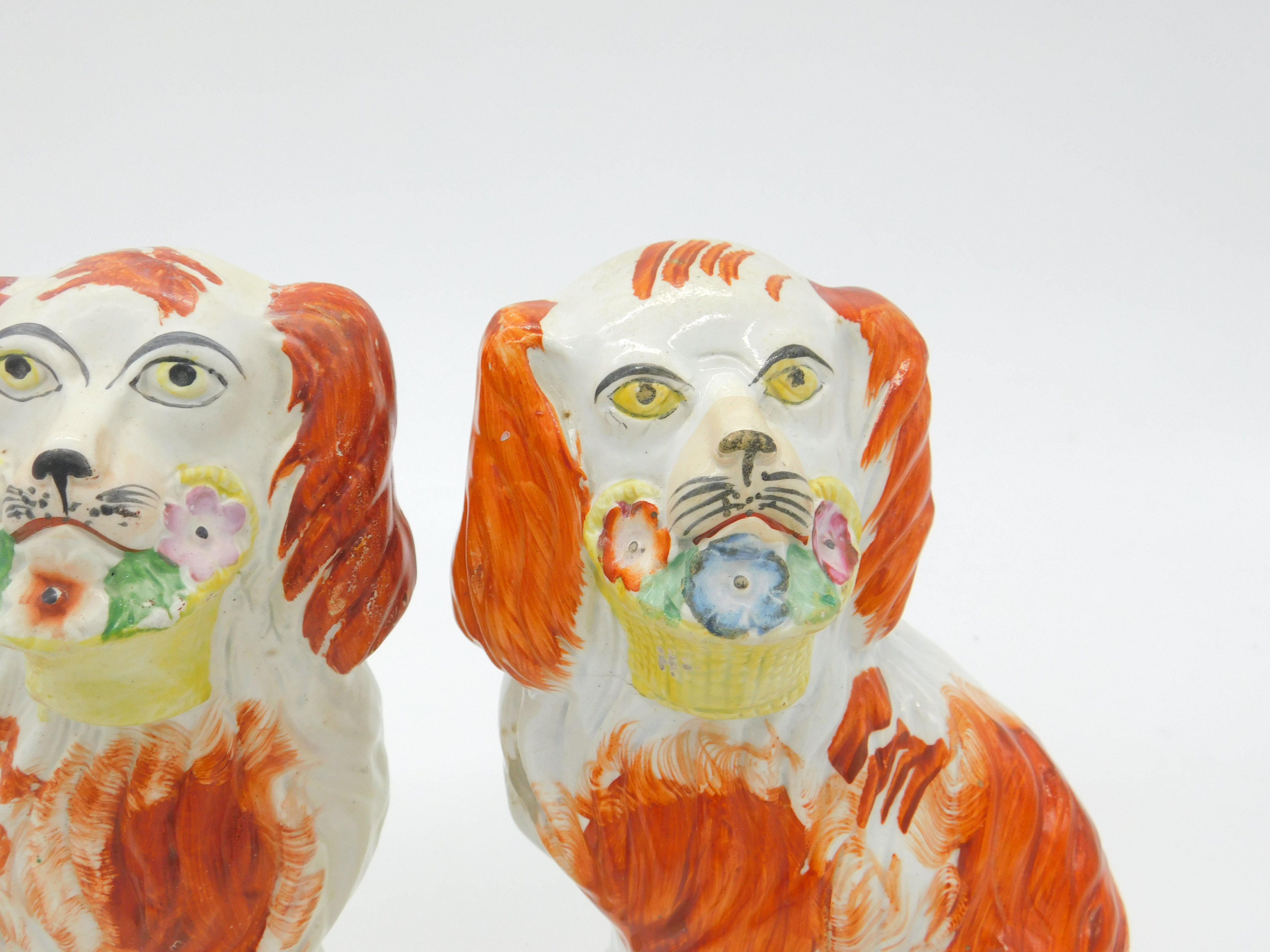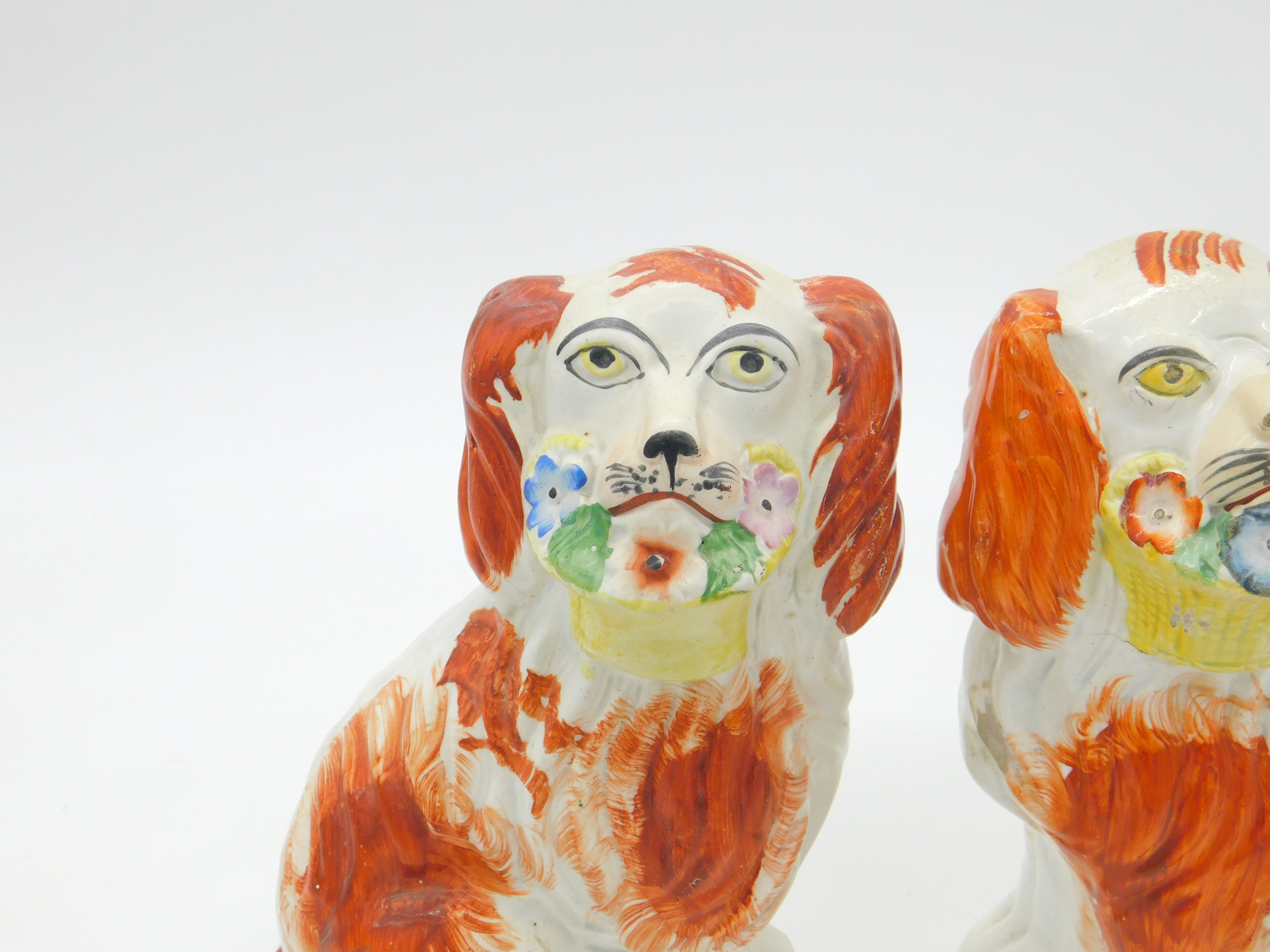 Victorian Pair of Staffordshire Pottery Spaniels Flower Baskets Antique c1860