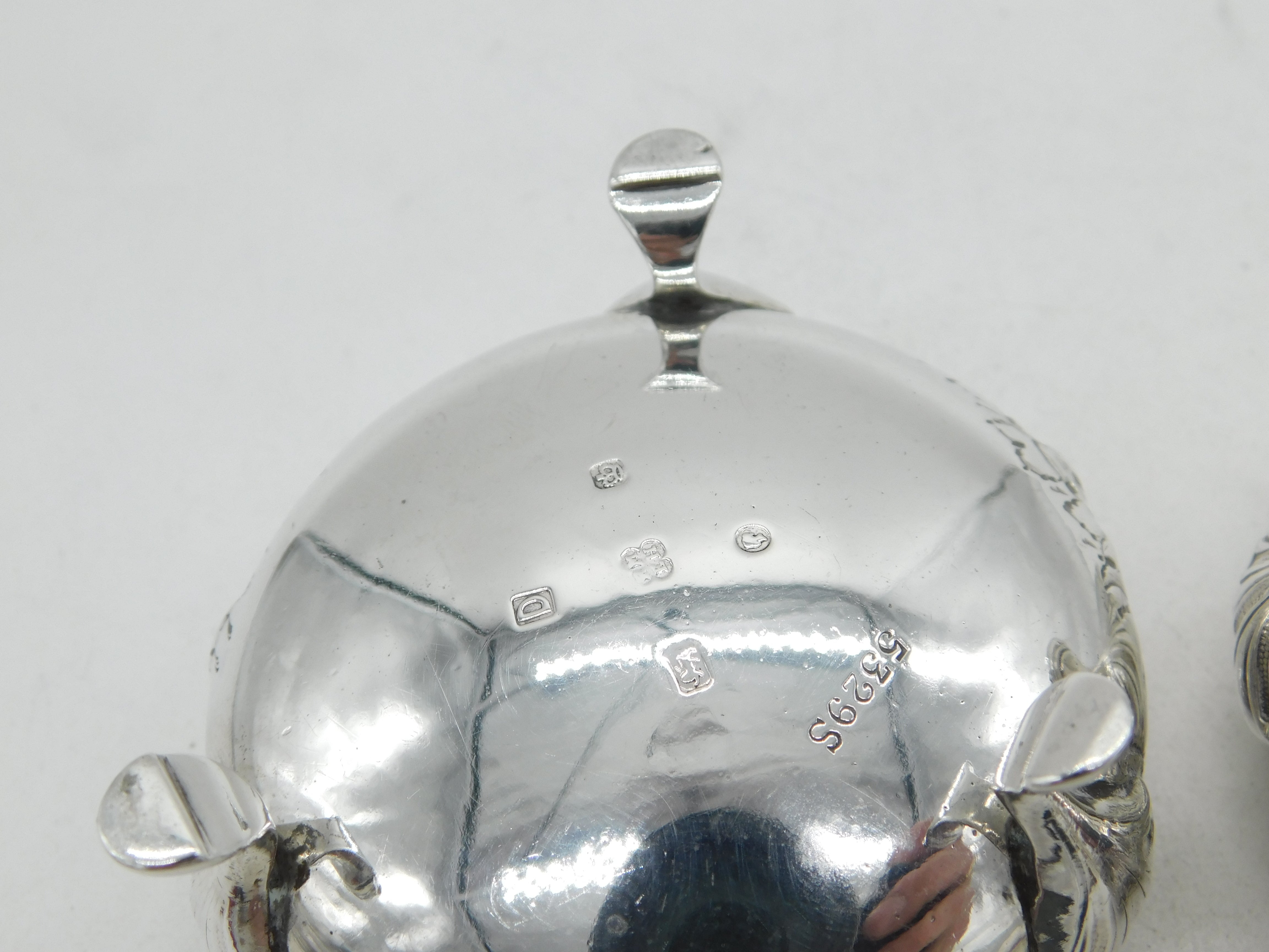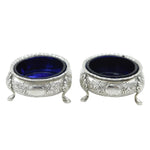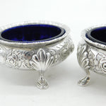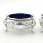 Victorian Pair of Sterling Silver Floral Salt Cellars Antique 1870 Sheffield